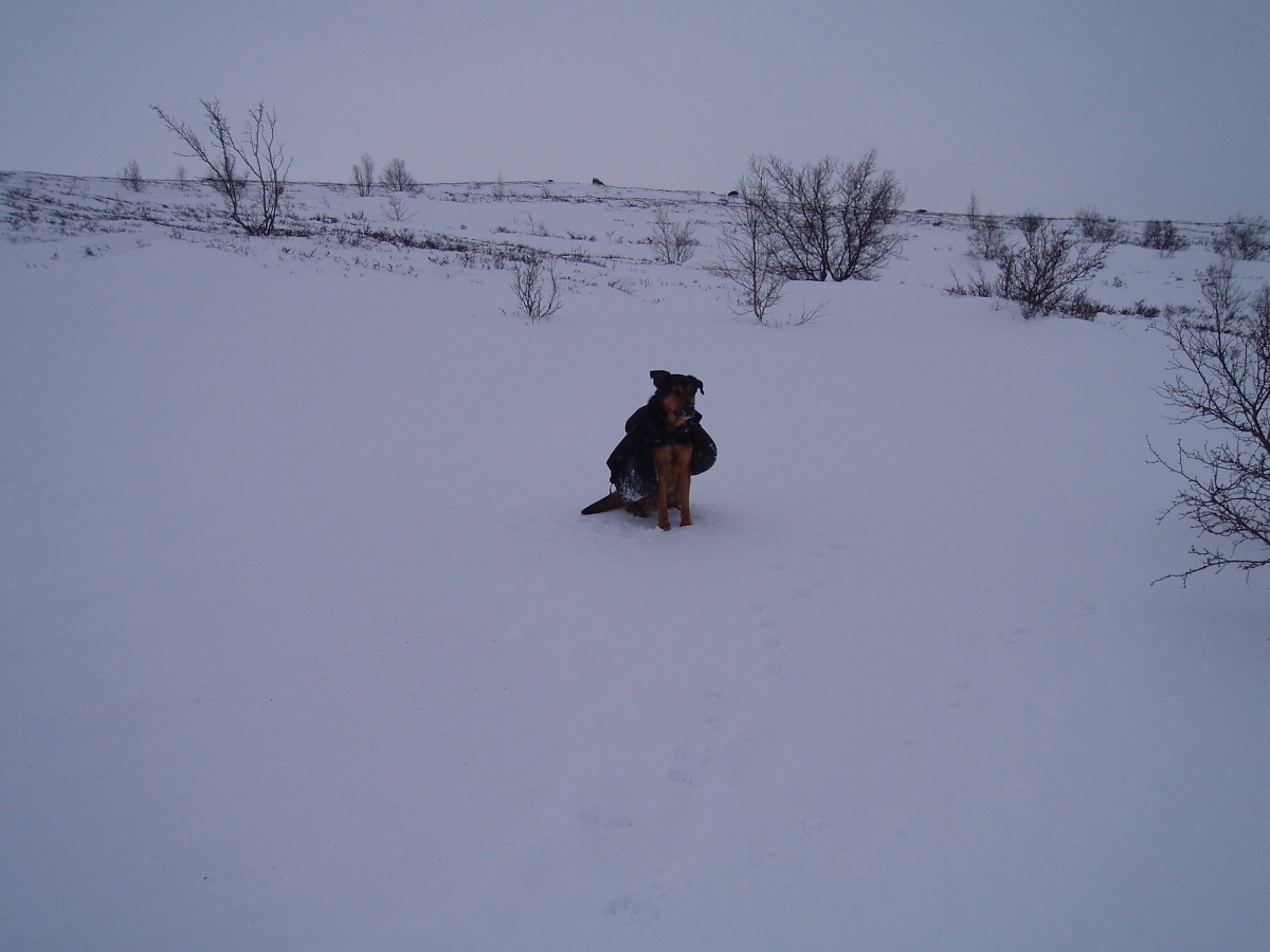 Værgudene var mot meg denne helga. to dager hadde E6 vært delvis stengt over Dovrefjell. Så "mørkt" ut for at det ble noe tur på meg, dama skulle komme til Trondheim med fly. Dessverre ble flyet kansellert. Måtte ta en "byovernatting" i Trondheim på Fredags kveld. På Lørdags formiddag, kjørte jeg alene opp på Dovrefjell. Selv om været ikke hadde vært det beste de siste dagene, var værgudene snille mot meg på Lørdag. Det var lavt skydekke, men god sikt og tilnærmet vindstille. Parkerte litt vest for Fokstugu, og gikk sørover mot Høgstgråhøin. Snøforholdene var varierende, i skoggrensa var snøen løs og over knehøyde. Da var det frem med trugene, etter at skoggrensa var passert var det lite snø. Tilnærmet bart, mye avblåst terreng. Enkelte parti med hardpakket snø, og isete. Brukte pulk og sekk på turen, pulken var med mest som "ballast". Glemte å ta med skistavene, oppdaget fort det i den første stigningen. Selv om bilen fortsatt var nær, lot jeg det være. Terrenget flatet fort ut innover mot Høgstgråhøin, da spilte ikke skistavene noen rolle. Jeg var litt sent ute på dagen, så gikk ikke så veldig langt før jeg slo leir. Teltplassen ble liggende midt mellom E6 og Høgstgråhøin. Selv jeg ikke kom så langt avsted, var jeg fornøyd over å ikke høre lyden av trafikken. Fant en fin bjørkeklynge, hvor jeg satte opp teltet. Vindstille og tynt skydekke på kvelden, skimtet så vidt stjernene. Temperaturen lå på ca -15. Sov mye bedre i soveposen enn jeg gjorde på hotellet natta før:-) Helga ble ikke akkurat som planlagt, men fikk likevel en fin liten tur. Vi gjør nytt forsøk senere en helg, når "Narve" har dratt sin vei.