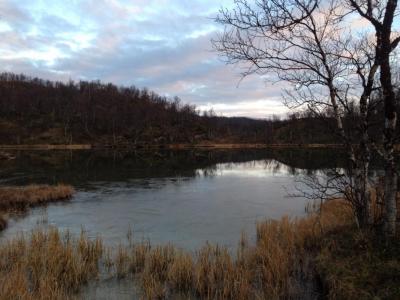 «Vi møtes ved Irggasjavri på tirsdag», var den ikke fullt så detaljerte avtalen Anders og jeg ble enige om på SMS. For å være sikker på at vi ikke rotet det til ble vi enige om at den som kom først fant en fin teltplass på vestsiden. Dermed så det ut til å bli et nytt turmøte med sunnmøringene Anders og Kathrine. Denne gangen i mitt eget nærområde: Øvre Dividal nasjonalpark. 1400 kilometer til turstart Vi hadde egentlig tenkt å få til et møte i Tromsfjellene tidligere på sommeren, men da det enda ikke var isfrie vann 1. juli ble det ikke noe av turen. Mens Anders og Kathrine fortsatte med sitt tureventyr på Nordkalotten tilbrakte jeg ferien på Nord-Vestlandet. Nå var det blitt fredag 1. august, og det var tid for å pakke sammen etter en lang og herlig tursommer i heimfjella. Etter å ha feiret bursdagen min på lørdag pakket jeg bilen på søndagen. Litt utpå dagen var jeg klar for å reise nordover og avslutte ferien med noen dager på fjellet. Kjøreturen nordover var så begivenhetsfattig som bare en kjøretur langs E6 kan være. Stopp for å fylle kaffe for hver Statoilstasjon, en matbit i Steinkjer, skogbrann ved Snåsa, 3 timer i baksetet på Saltfjellet, frokost i Fauske og 25 timer senere var jeg fremme i Bardufoss og kunne pakke ut. En liten time senere hadde jeg pakket ut av bilen, pakket om sekken, skiftet til turklær og var klar for tur. Før jeg gikk ut døra sjekket jeg værmeldingen. Det var varslet tordenbyger senere på ettermiddagen, og det samme gjaldt dagen etter. Lite lysten på å starte turen i øsende regnvær og våte klær bestemte jeg meg for å ta med et ekstra sett regnklær og tørt skift tilgjengelig i bilen, og stoppe ved Veslevatnet mens jeg ventet på at Tordenbygen skulle passere. Omtrent samtidig med at kilometertelleren på bilen passerte 1400 kilometer siden jeg startet dagen før traff de første regndråpene frontruten. Snart regnet det jevnt, og tordenskrall kunne høres i det fjerne. Det klarner opp ved Veslevatnet Fin plass med utedo Etter en halvtime ved Veslevatnet begynte det å klarne opp. Snart var himmelen igjen blå, så jeg gikk tilbake til bilen for å skifte til tørre klær før jeg kjørte inn til Frihetsli for å starte den egentlige turen. Det begynte å bli kveld da jeg kom frem til Frihetsli. Planen var derfor å starte med å gå inn til Ole Nergård bua for en god og lang nats søvn før jeg fortsatte innover dalen i retning Irggasjavri. Ole Nergård bua viste seg å være en trivelig liten koie nede ved elvekanten. 2 sengeplasser, et lite bord, en vedovn, vedstabel utenfor, utedo, og ikke så veldig mye mer. Jeg tente raskt opp på bålplassen utenfor og satte over middagen. Mens jeg ventet på at maten skulle bli ferdig pakket jeg ut liggeunderlaget og soveposen. Da viste det seg raskt at mitt trofaste Thermarest underlag hadde fått nok et hull. Jeg har sagt det før, og sier det gjerne igjen: Gå aldri ut døra uten duct tape. Noen biter med tape senere var underlaget tett som nytt, og etter en middagsbit sovnet jeg som en stein. Ole Nergård bua er en åpen Statskog koie Enkel og trivelig standard for en god nats søvn. Gå aldri ut døra uten duct tape Thunderbolts and lightning, very very frightening Neste morgen gikk jeg videre forbi Dividalshytta og Havgahytta for å komme frem til avtalt sted ved Irggasjavri. Terrenget var lettgått, og med unntak av et par små vad gikk det fort sørover. Etter hvert som jeg kom til myrene etter Havgahytta begynte det også å bli tett mellom multene. Mens jeg beitet meg over den ene flotte multemyra etter den andre begynte det å buldre i sør. Jeg kunne se veggen med tunge grå skyer komme mot meg, og satte opp farten. Det fristet lite å have midt i en heftig tordenbyge ute på myrene, så jeg småløp i retning Guomojavrrit mens jeg tenkte «telt, kaffe». Fremme ved det største av Guomojavrrit kjente jeg temperaturen synke og vinden komme. Uten et sekund å miste slengte jeg fra meg sekken og fant frem teltet. De første dråpene landet akkurat i det jeg satte ned de siste pluggene, og før jeg fikk fylt kjelen og krøpet i sikkerhet pøste det ned. Smådryppende fyrte jeg opp primusen og kokte kaffe mens en strofe fra Queen gikk på repeat i bakhodet: «Thunderbolts and lightning, very very frightening». Å sitte alene i et lite telt midt på fjellet mens det tordner og lyner utenfor er ikke en drømme situasjon for å si det slik. Med kaffekoppen som trøst krøp jeg sammen midt i teltet og håpet det snart var over. Dividalshytta Multefangst etter Havgahytta. Det tykner til i sør. Jeg rekker akkurat frem til Guomojavrrit før himmelen åpner seg. En blir liten i et telt midt i en tordenbyge. Jeg lar teltet tørke en halv time etter tordenbygen. Turmøte ved Irggasjavri Like plutselig som tordenbygen kom var den over. Lettet over å igjen se blå himmel lot jeg telt og utstyr tørke en halvtime før jeg pakket sammen og gikk videre. Ikke lenge etter passerte jeg Moarsejavri, og så vakringer etter grov fisk ute på vannet. «Her var det fint, flotte teltplasser, stor fisk, hit skal jeg tilbake», noterte jeg i bakhodet, og prøvde et par kast før jeg fortsatte. Fremme ved Irggasjavri gikk jeg langs vestsiden for å se om jeg så det røde teltet til Anders og Kathrine. På kartet la jeg merke til et område som viste åpent og tørt terreng, så jeg regnet med at de hadde funnet veien dit. Jeg ble likevel gående langs vannkanten, og prøvde noen resultatløse kast underveis. Rett etter dagens siste vad var jeg fremme ved området som på kartet så ut som et fint sted å sette opp teltet. Det viste seg at Anders og Kathrine hadde tenkt likt, og fra skogkanten så jeg et rødt Hilleberg Allak nede ved vannet. Ikke før hadde jeg fått øye på teltet, så dukket hodet til Anders ut lufteventilen. Det ble et hyggelig gjensyn med turfolket jeg hilste på i Femundsmarka i fjor. Anders og Kathrine kunne fortelle at de akkurat hadde kommet frem til 