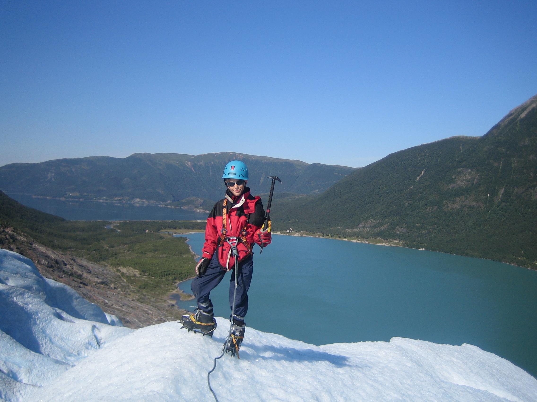 Den årlige uken ved Engabreen (Svartisen) er tilbakelagt i glitrende vær og med toppturer, kajakkturer og breturer. Vedlegger her noen bilder fra John Arvid (13) sin debut på bre. Kan man tenke seg en bedre introduskjon til blåisens gleder for en gutt?