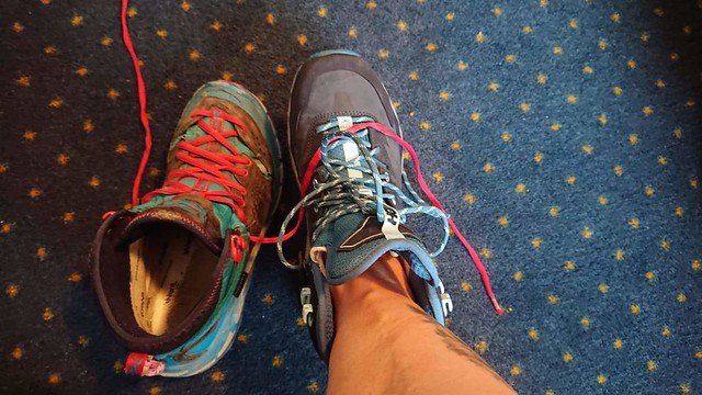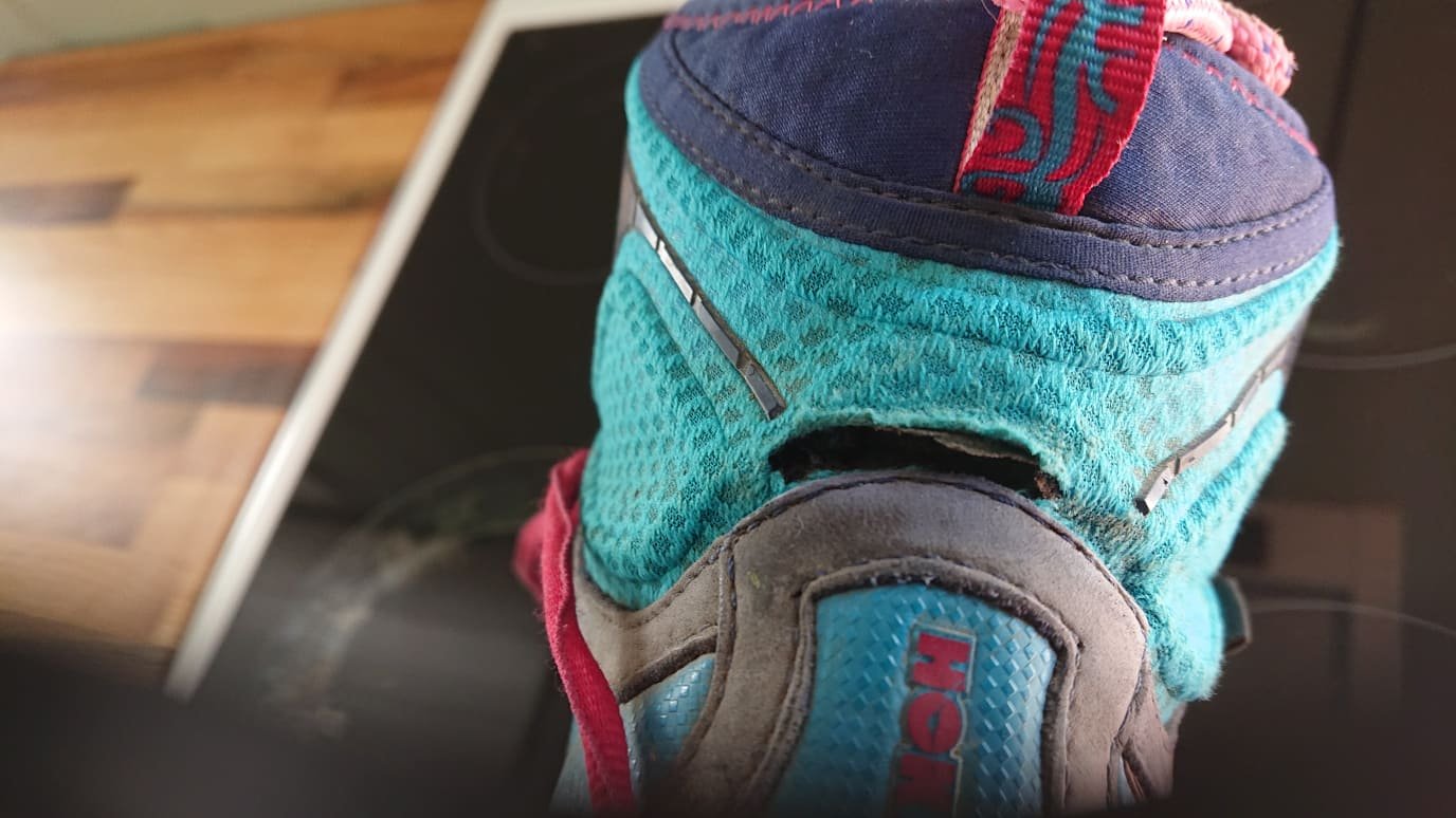 Min kone har et par Hoka One One Tor Ultra Hi WP som hun har gått ca 800km med. Hun er veldig fornøyd med de, men lurer på hvor lenge hun kan regne med de varer. Nå starter hun på langvandring fra Lillehammer til Roma (Se http://bettystjernen.no), og vi må planlegge sånn rent logistikkmessing når hun trenger et nytt par.