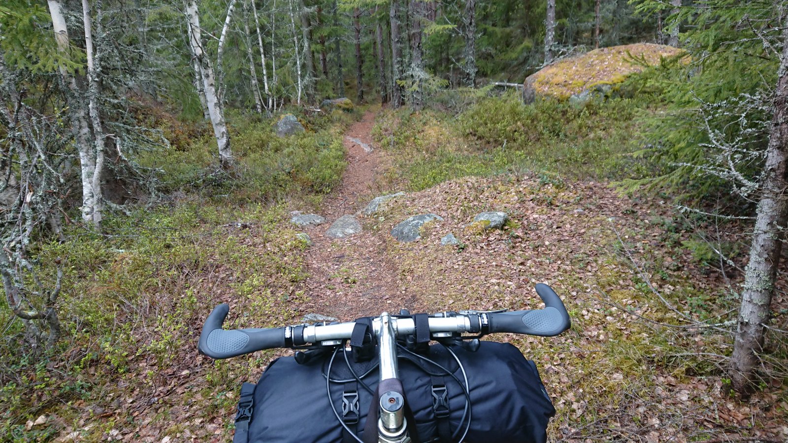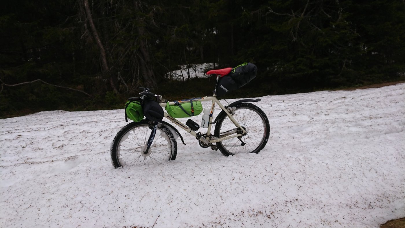 Du må ha styreveske i tillegg, da får man med seg det man trenger. Med et bikepacking oppsett blir det mye enklere å sykle på tur på stier, det er også mye enklere å trille sykkelen, dersom det er behov for det. Det er også mye mer behagelig å sykle med bikepacking oppsett. Men dersom man har sykkel med bagasjebrett, og hovedsakelig skal sykle på vei, er sidevesker helt klart mye enklere å ha med å gjøre. Ja takk, begge deler sier jeg, alt koker ned til hva mans skal gjøre og hva slags sykkel man har. Her noen bilder fra helgens tur, hvor jeg var glad jeg ikke hadde sidevesker. Jeg har også lagt med et bilde fra en sykkeltur i Nordmarka i fjor med sidevesker.