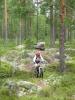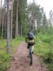 Namnå-Gråhesten-Sormsberget-Lindtjernet Med usikre værmeldinger dristet Rødtopp og jeg oss ut på stisykkeltur. Diverse truende haugskuer viste seg frem, men det gikk bra til å begynne med. Vi startet turen på Namnå og syklet opp forbi steinbruddet og inn på en fin bred barnålsti kalt «Spikern». Så ble det inn på grusvei en liten stund og følge merking mot Møllerudskoia. Etter denne var passert gikk det på fin sti i slak motbakke opp til Gråhesten. Det passet fint å sette seg ned på benken der for å skrive seg inn i gjesteboka og ta en matbit. Videre ble «Spikern» østover bare et utydelig far videre. Vi valgte derfor en tydligere sti sørover merket med blå prikker. Denne viste seg som en herlig singeltrack som snodde seg nedover mot Frysjøen. Det gikk kyr ute i skogen og hadde tråkket endel hull i stiene, men det var ikke så vanskelig å forsere. Det gikk over rabber, sva, røtter og myrhull. Ved Kallneskoia ble skyene for nærgående og slapp en skur over oss. Derfor satte vi oss i vedskjulet for å vente ut været. Etter skura hadde trukket unna seilte vi videre nedover, men nå var stein og røtter blit våte og glatte så det ble atskillig vanskeligere å holde seg på syklene. Før vi kom på riksveien kom vi inn på gamleveien mellom Kirkenær og Svullrya. En flott opptråkket sti gledet oss på tross av at vi ble innhentet av regnet igjen. Vi passerte Bekka og deretter ut på riksvegen ved Lintjernet. Så returnerte vi til Namnå via Bergesida. Namnå-Sormen-Bergersetra-Byersetra-Hokåsberget Værmeldingene var akkurat den samme og siden vi observerte at stiene ble dårligere jo lengre unna Kirkenær de var valgte vi en runde med mer grusveier. Startet fra Namnå og inn Monsrudveien forbi bommen og opp til Sormen. Vi traff en liten bøling kyr som glante dumt på oss syklister. Etter å ha passert Sormen prøvde vi å fortsette på «Spikern» over til Bergersetra. Stien var greit tråkket opp, men ikke enkel å sykle på. Det var vått og glatt, men vi så potensialet i stien hvis den ble litt mer brukt av andre enn klauføtter. Etterhvert begynte det å regne igjen. Under taksjegget på Bergersetra spiste vi lunsj og ventet på bedre vær. Videre valgte vi grusveiene til Blomberget. Her måtte vi krysse terrenget for å komme inn på veien ved Sesseltjenna. Det viste seg å gå et tråkk gjennom lyngen vi kunne følge. Dette var ok å sykle ned til myrkanten. En liten sky hadde sneket seg innpå oss og gikk til bakholdsangrep. Kaldt pissregn gjorde at vi søkte ly under en gran mens det værste passerte. Så surklet vi videre over myra og opp på grusveien. Solen ville også være med å lage vær. Den varmet godt i ryggen mens vi syklet opp til Bristol, hvor den merkede stien over Hokåsberget begynner. Selv om stien ikke var veldig mye brukt var den lett å følge og god å sykle på. En fin flytsti til vi kom opp på utsikten på toppen. Videre nedover hadde skogen overtatt endel av stien, så vi måtte ta omveier for å komme ned gjennom tett ungskog. Vel nede ved Nordgrensetra var det bare å tråkke til på grusveien tilbake til Monsrud og videre til Namnå. -