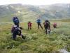 Turtagrø Trass i usikre værmeldinger tok Fjellsportgruppa i Storebrand sjansen på at turværet ble greit. De fleste tok fri på fredag og reiste opp torsdag ettermiddag / kveld. Da vi kom til Turtagø var det varmt, men vindfullt. Vi ble 9 stykker, fra 31 til 69 år. Utpå kvelden tok det til å regne kraftig. Hvordan skulle dette gå? Ganske bra, faktisk. Dyrehaugsryggen Fredags morgen kom med sol og skyer som skrenset de høyeste toppene. Glade fordelte vi oss i to biler og kjørte opp anleggsveien nederst i Ringsdalen. Nattens voldsomme regn hadde fått Ringselvi til å svulme så mye at kraftverkets slukt ikke klarte å ta den unna. Dermed måtte vi kjøre ned til bilbrua og starte 60 høydemeter lavere. Så var det å traske i vei opp forbi Nedre og Øvre Dyrehaug. Noen små regnbyger kom truende nær, men ellers ble ikke turen spenndene før vi kom opp på Nordre Dyrehaugstind. Eggen var passe smal og luftig slik at alle kom mer eller mindre greit til Store Dyrehaugstind. Etter en fotosessjon, mens skyene prøvde å kjøle ned øra, tok vi til å lirke oss videre mot Søre Dyrehaugstind. Ingen ville være dårligere enn noen annen, så alle gikk videre på sitt vis, noen litt nede i siden der det gikk og andre danset på eggen. Sjokoladen smakte godt på den fine flata på Søre Dyrehaugstind. Returen gikk på omtrent samme vis, men i motsatt rekkefølge. Eggen tok 5 timer tur retur. Deretter var det å trave ned for å rekke øl og middag. Det lå faktisk ganske mye snøfonner nedover, noe som var morro og sparte endel knær. Det begynte å regne igjen og holdt på nesten hele natta. Vi rakk middagen med hårfin margin og gruppen ble enda en person til. Store Soleibotntind På morgenen gjemte fortsatt toppene seg i tåkeslør, men vi fikk noen kjappe glimt og så at det var kommet snø over ca 1850 moh. Dermed måtte vi finne på noe enkelt. Løsningen ble en hviledag på Store Soleibotntind. Det ble 7 med på denne turen og vi parkerte ved Tverrelvi som renner ut fra Soleibotn. Grusryggen oppover var lettgått og udramatisk, men da vi kom opp på snøen ble det veldig glatt. På ca 1900 moh fikk vi også besøk av skyene. De kom og gikk slik at vi måtte passe på for å få tatt bilder av de flotte nabotoppene. Lunsjen på toppen smakte uansett godt. Nedover igjen gikk det smått til å begynne med siden det var så glatt. Etter snøen var passert gikk det lettere. Noen fine snørenner ble også utsatt for helkjøring. Nesten nede ved bilene var det noen tuer med mode blåbær som ble fortært. Lovskar Det hadde regnet og kommet nysnø på toppene også denne natten. Fire av oss tenkte det måtte gå greit opp på Midtmaradalstindane via Lovskar. Vi kom avgårde relativt tidlig og raste opp mot hytta på Bandet. Det tok i underkant av 2 ½ t. Vi traff noen som hadde prøvd på Storen og gitt opp. Det gikk enkelt over Midtmaradalsbreen, men opp snørenna til Lovskar ble det vanskelig. Snøen lå bare halvveis opp. Der hvor snøen manglet var det vått og mye ekle løse steiner. Etter litt forsiktighet kom vi opp på Midtmaradalsryggen og spiste lunsj. Vi fikk besøk av to drevne tinderanglere som kom fra Turtagrø og skulle videre ned til Utladalen. Planen vår var å prøve Nordre Midtmaradalstind. Vi gikk nordover på ryggen og fikk utsikt til pinaklene. Ettersom vi kom høyere ble det våtere og glattere. Det fornuftige valget var å snu, dermed fikk tindene stå for seg selv idag, mens vi returnerte tilbake til sivilisasjonen.