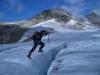 Bregjengen fortsatte til Uranosbreen etter å ha skilt lag med de som ønsket en luftig tur i tåka. Det var blitt enda mer blåis siden jeg var der for tre uker siden. Vi satte på stegjern og labbet oppover breen. Uten tau var det lett å utforske bresprekker og teste stegjernene. Vel oppe på Uranostind gikk vi bort for å kikke på ruta som Egg-gjengen hadde kommet opp. Eggen var utrolig fasinerende og skarp. Enda en fin tur jeg gleder meg til å gå i den norske fjellheimen. Deilig å ha noe å se frem til. Jeg legger ved flere bilder av sprekingene i Storebrand! Det er alltid gøy å være med Fjellsportgruppa på tur! I helgen gjorde jeg mitt andre topp-støt på Slettmarkpiggen. Nå som sist ble det bråstopp akkurat på samme hylle. Bamse Brakar og Langbein Rise er ett par hakk tøffere enn meg og la ut tau som sikring og fortsatte ned svaet. Må bare innrømme at det ble noe kaldt å vente på dem. Det er første gangen jeg gjennomfører en time med aerobic-øvelser i 2000 meters høyde. Rødtopp