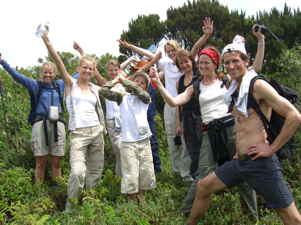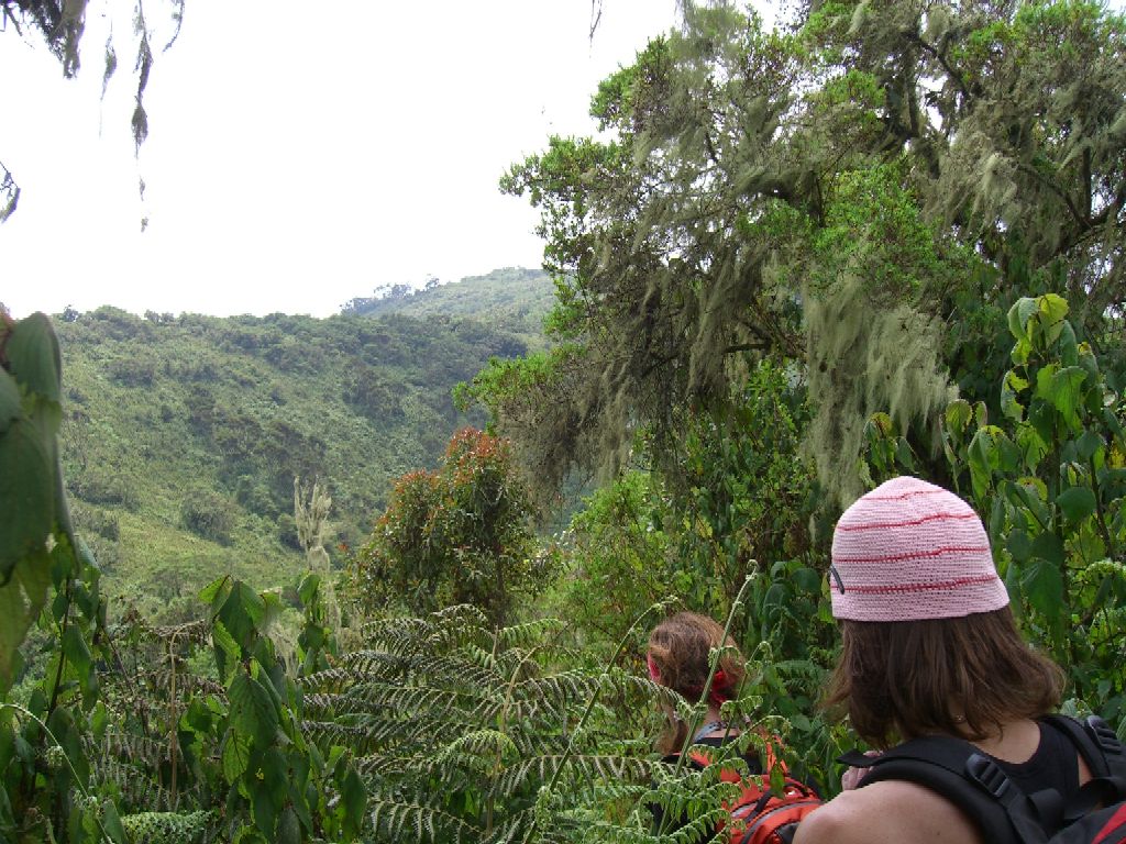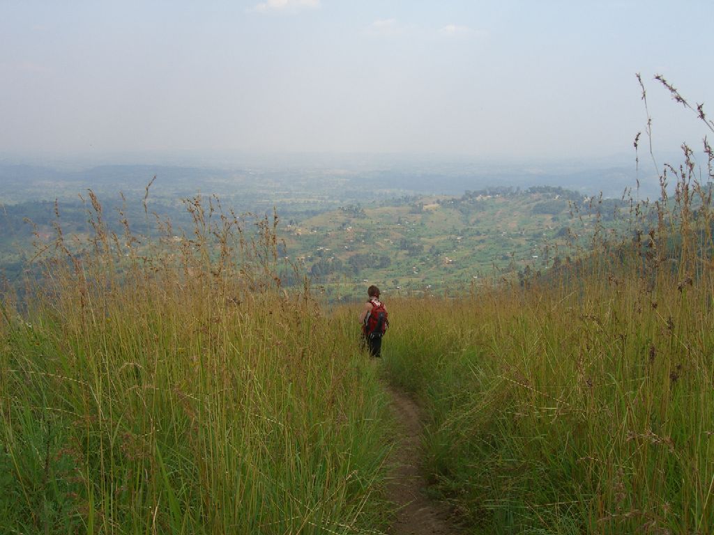 Etter en god frokost hos Tore og Vigdis på Mitandi pakket vi sekkene fulle av vann og begynte turen opp til Karangora. Havregrøt er ikke frokosten jeg forventer å få servert i en bitte liten landsby i Uganda, men det er frokost for en dag i fjellet. For de som har lyst til å oppleve en idyllisk, stille og rolig fjellandsby anbefaler jeg Mitandi på det varmeste. I fjor ladet vi opp i Mitandi før vi gikk i Rwenzori (høydepunktet var toppdagen med bestigning av Mt. Margerita på 5.109 moh). I år var vi syv voksne og syv barn fra Norge som var på besøk på Mitandi. Den ene dagen leide vi to guider som skulle vise oss stien til Karangora. I begynnelsen gikk vi mellom de små gårdene. Guidene fortalte om livet i Mitandi og de ulike plantene og vekstene. Her dyrkes det blant annet bananer, kaffebønner, sukkererter, pasjonsfrukt, avokado, poteter. Hele veien ble vi møtt av smilende barn og voksne. Etter hvert som vi tok høydemetere ble jordene færre og vi kom inn i jungelen. Her vokste bambus og bregner tett i tett med ulike store trær. Lyden av menneskene på jordene ble erstattet med lyden fra tusen-talls insekter. Etter hvert kom vi over den tette jungelen og opp blant lyngen. Lyngen her er flere meter høy! I løpet av dagen tøyde vi alle grenser. Fire av oss ble ikke med på toppen, men de var alle høyere oppe enn de hadde vært tidligere. Det er kjempe bra! På toppen hadde vi fin utsikt langs Rwenzori fjellene. Det ble en velfortjent pause på toppen. Mens vi spiste kjeks og inspiserte alle de rare insektene i lyngen hørte vi plutselig noen som snakket på den andre siden av toppen. Etter en liten stund kom fire ugandere på rekke og rad langs stien. De hadde machetene høyt hevet. Det var veldig skremmende, men når det første sjokket hadde lagt seg så vi at de bare brukte machetene til å rydde stien. De rastet like ved oss og vi delte kjeks med dem. Synd at ingen kunne engelsk. Det hadde vært spennende å høre hvor de kom fra og hvor de skulle gå videre. Returen tok hardt på knærne, men med den fabelaktige vegetasjonen, utsikten og turkameratene blir vonde ben mindre vonde. Tusen takk for turen! Nysgjerrig på Mitandi? Se mitandi.com Rødtopp