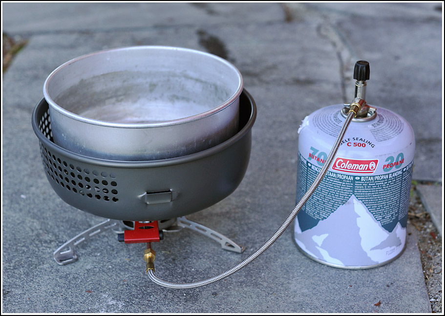 Jeg bruker en Primus EasyFuel II gassbrenner, den kan brukes med gassboksen opp-ned for bedre funksjon i kaldt vær. Det er en slangebrenner, du slipper altså balanseproblemet som en toppmontert brenner kan gi. For effektiv vindbeskyttelse har jeg tilpasset vindskjermen til et Trangia-sett slik at jeg setter det over selve brennerhodet. Brenneren får da nok luft fra bunnen, men er likevel svært godt beskyttet mot vind. EasyFuel-brenneren er mye bedre enn Trangia sin egen gassbrenner, og en fordel er at du kan bruke EasyFuel uten vindskjermen på stille dager. Problemet med fastbrenning løser du med å bruke Trangia sine kasseroller/stekepanner med non-stick belegg. Bare pass på å ikke bruke metallredskaper i dem. Trangia Tundra 3 er et slikt sett med 2 kasseroller og en stekepanne.- 93 svar