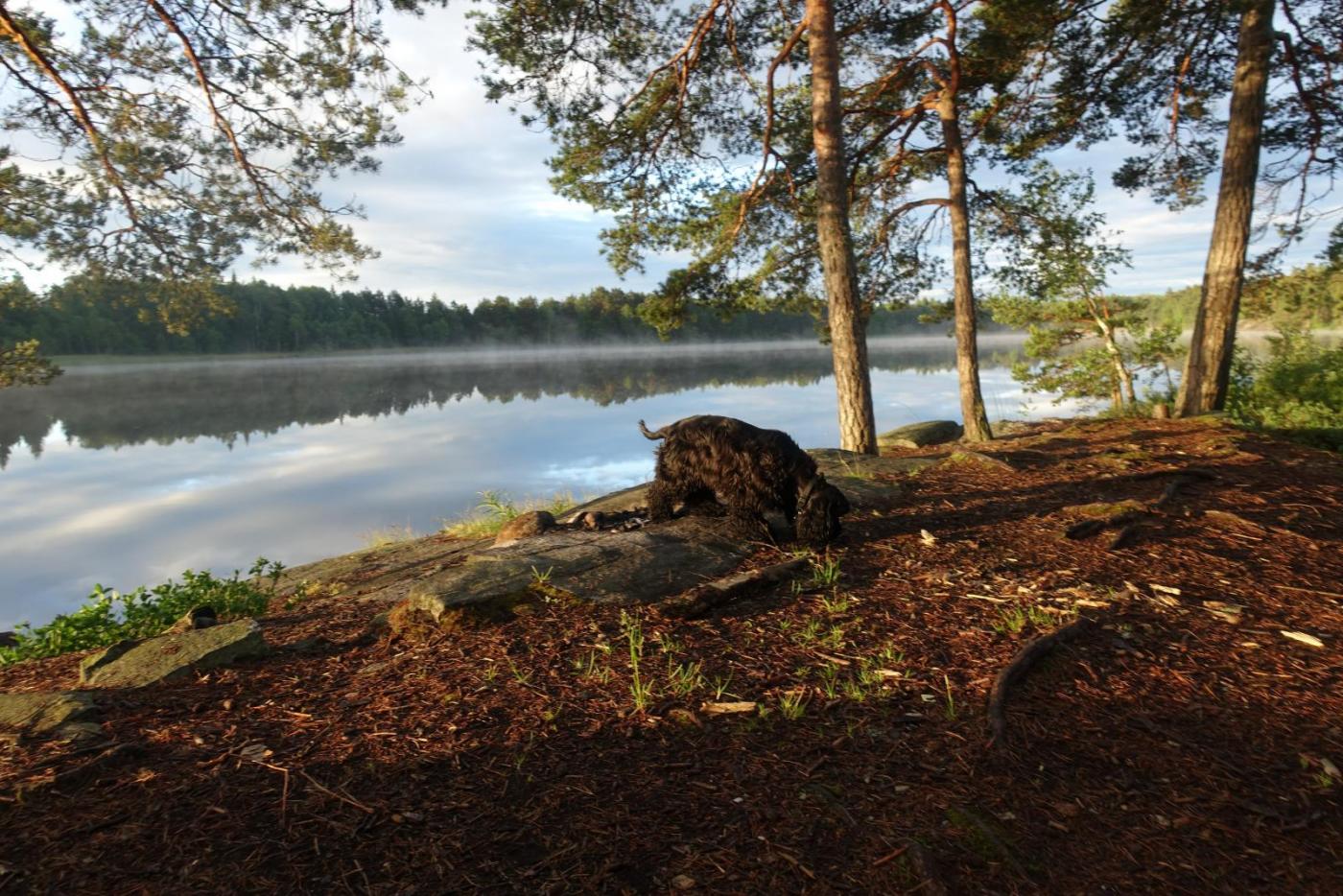 Gabby og jeg kikket på hverandre fredag kveld: Vi drar! Tursekken ligger alltid ferdigpakket i bilen så vi kan dra på spontanturer. Vi dro til Brønnerødtjern og gamblet på at odden var ledig. Det var meldt regn på kveld/natt, så det var den. Det regnet noe på natta men lørdag morgen var nydelig! Solen skinte også søndag morgen men det blåste adskillig mere så jeg droppet å fyre morgenbålet.