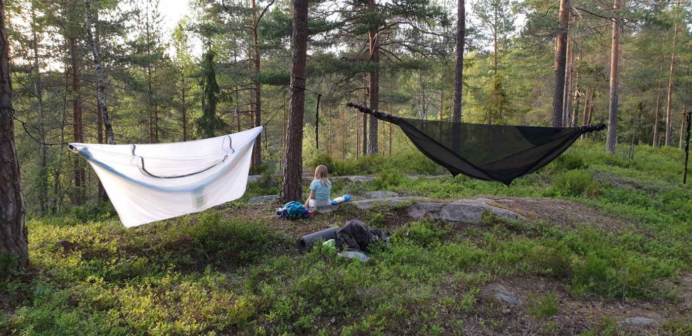 Mikroekspedisjon 2019 nr 2 gjennomført. Har to døtre og to hengekøyer. Når begge vil på hengekøyetur må det bli en ekspedisjon på hver. Størstejenta (10) var ute i mai, nå var det minstejenta (8) sin tur. En mikroekspedisjon må jo ha snev av ekspedisjon i seg. Derfor valgte jeg ut et område/skogholt jeg aldri hadde vært i før. Lille Gryta i Lillomarka var målet. (Jeg har vært i Lillomarka før, men aldri ved Lille Gryta.) For å leve opp til mikrobegrepet ble avreise satt til lørdag etter middag. Halv åtte satt vi i bilen. En stor time etterpå fant vi en flott plass litt bortenfor vannet. Noen hadde nok vært der før, det var hengt opp en huske i ett tre. Rett i koppen nudler til kveldsmat, samt litt lørdagsgodt, husking og litt ooodagelsestur i nærområde, og så natta. Nydelig vær, ikke behov for tarp. Enda godt vi hadde med myggnett. Myggen hadde fest. Havregrøt til frokost, rolig morgen, popkornrester til gåmat, hjemme før lunsj. Vel gjennomført mikroekspedisjon. Ca 1,5 km labbing, nytt område og (For jenta) ny sovemetode.