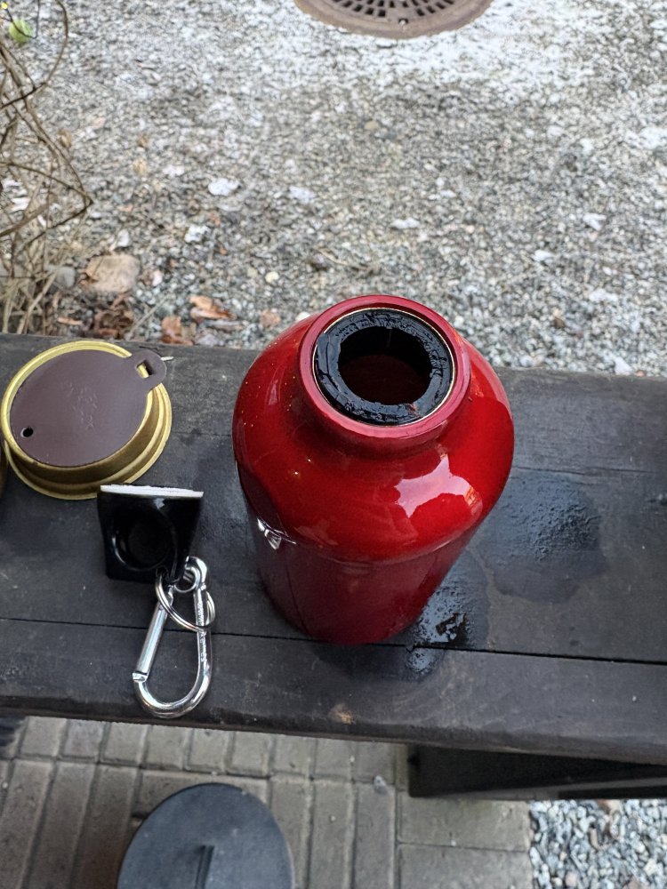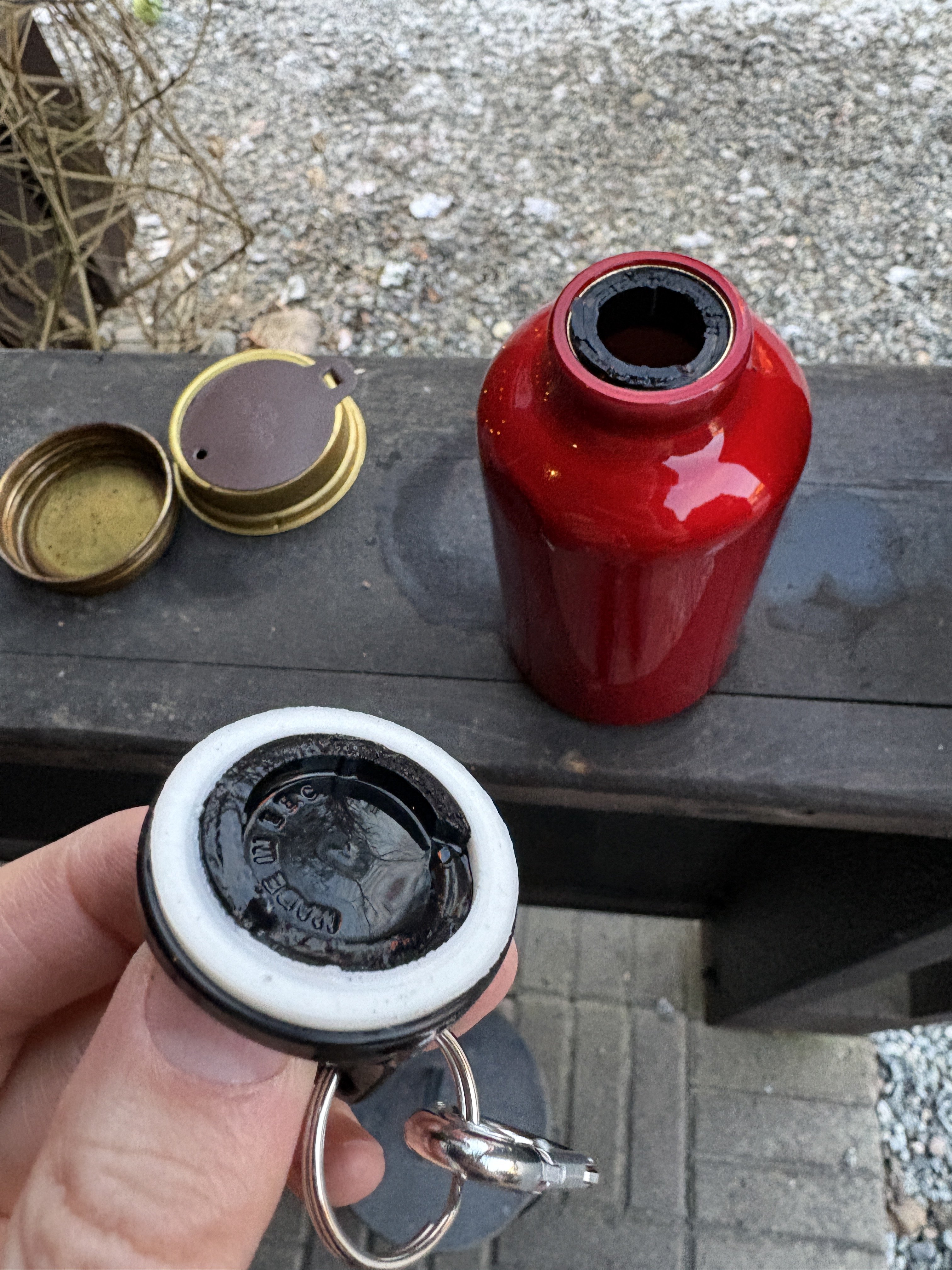 Var på en liten kosetur med en av tenåringene i huset. Ut i Lillomarka med ostesmørbrød og te på planen. Var tom for gass, så jeg fant en gammel beholder med litt rødsprit, stormkjøkkenet fra Trangia med dertil like gammel brenner. Alt fungerte helt topp og alt var bra helt til jeg skulle rydde etter turen. Flasken med rødsprit hadde knekt i korken og sekkene bunn var gjennombløt av spriten. Noen som har vært borti noe tilsvarende? Jeg antar at det er en dårlig ide å oppbevare rødsprit på slike flasker, jeg kommer ikke til å gjøre det igjen over lengre tid.