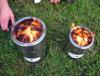 Her har jeg samlet endel info om disse ovnene Woodgas Camp Stove LE (light edition) -Heat Output - high power: 10,000 BTU/hour (3 KW) -Heat Output - low power: 5,000 BTU/hour (1.5 KW) -Burn Time: 10-12 Minutes for single charge of twigs -Burn Time: 40-50 minutes for single charge of sawdust pellets (Anm: 16kg koster kr 50 på Felleskjøpet) (burn times vary greatly depending on fuel used but stove can operate continuously by carefully adding fuel every couple minutes) -Fuel Consumption - high power (dry): 1.7 lbs/hour (0.8 Kg/hour) -Fuel Consumption - low power (dry): 0.9 lbs/hour (0.4 Kg/hour) -Total Height: 6.5" (16.5 cm) -Total Diameter: 5" (12.7 cm) -Fire Pot Height: 4" (10.1cm) -Fire Pot Diameter: 4" (10.1cm) -Total Weight: 1 lb 10 oz (740g) -Power Usage: ~150mA at 3V (high power) -Power Usage: ~140mA at 3V (low power) -Batteries (not included): 2-AA Battery Life (Alkaline): 10-11 hours Woodgas Camp Stove XL (extra large) -Heat Output - high power: 12,000 BTU/hour (3.6 KW) -Heat Output - low power: 9,000 BTU/hour (2.7 KW) -Burn Time: 20-24 Minutes for single charge of twigs -Burn Time: 1Hr 10Min - 1Hr 24Min for single charge of sawdust pellets (burn times vary greatly depending on fuel used but stove can operate continuously by carefully adding fuel every couple minutes) -Fuel Consumption - high power (dry): 2.2 lbs/hour (1 Kg/hour) -Fuel Consumption - low power (dry): 1.6 lbs/hour (0.7 Kg/hour) -Total Height: 9" (22.9 cm) Total Diameter: 6" (15.25cm) -Fire Pot Height: 6.4" (16.3cm) -Fire Pot Diameter: 4.6" (11.7cm) -Total Weight: 2 lb 3 oz (970g) -Batteries (not included): 2-AA Battery Life: (Alkaline): 8 hrs Fra www.woodgas-stove.com: The camping stove works exactly as they say it does Filed under: Uncategorized — admin @ 12:35 am “I recently received a WoodGas Camping Stove from iENERGY, and since my son is a Boy Scout who frequently goes on camping trips, I thought we’d try the stove out. iENERGY claims that the stove “burns almost any fuel nature provides-including twigs, pine cones or any plant-based fuel-and provides the cleanest heat in even the remotest area.” We discovered that the stove works exactly as they say it does-you get as much heat or more than from the traditional propane camping stoves, and it runs on anything you happen to find in the forest. We fried a bunch of bacon and eggs using only dried weeds, leaves and sticks.” Glenn Sacks, Newspaper Columnist & Radio Show Host www.glennsacks.com October 3, 2006 I took my WoodGas camping stove to my daughter’s soccer game Filed under: Uncategorized — admin @ 12:40 am I recently took my WoodGas camp stove to a soccer game with my daughter. I loaded it with fuel pellets and let it burn on a camera tripod. The weather was cold, rainy and windy. Soon, most of the parents were gathered around warming their hands at my portable warming station. I was the most popular parent in the place!On the low setting, the pellets burned a nice flame for one hour. I then kept it burning with a few pellets every 5 minutes or so. Don’t go to a cold soccer game without one. Jim, Bonney Lake WA Feb 15, 2007 -
