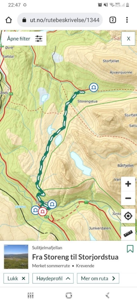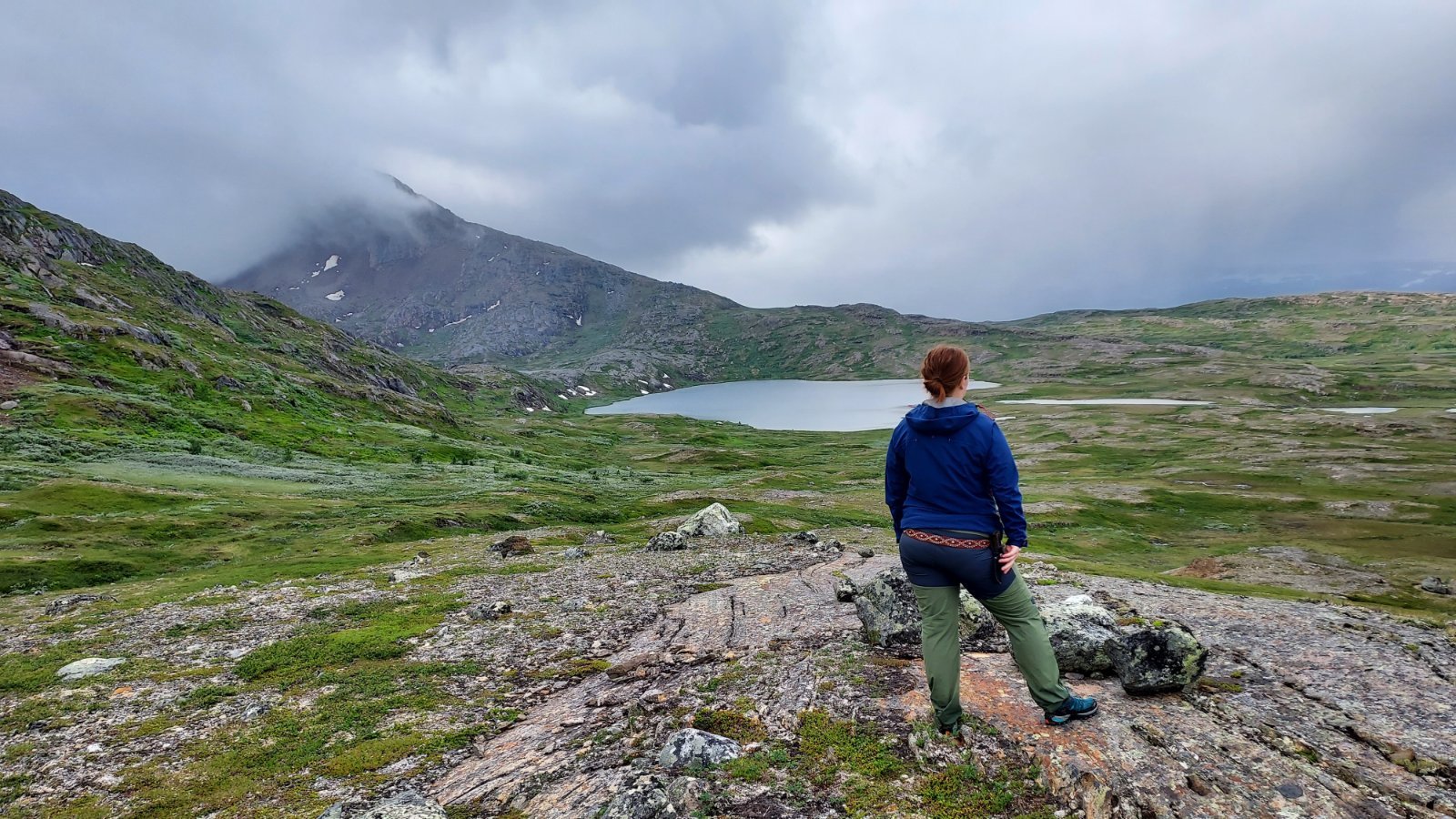 Gjennom 2022 har jeg som mål at jeg skal gå til/fra jobb minst én gang i måneden. Turbeskrivelse fra Ut.no Dette er klassifisert som en krevende tur på 17,3 km. Det er en fin dagstur, men av praktiske årsaker kommer jeg til å legge inn ei overnatting (kontortid fra 09:00). Jeg ser for meg at januar kan bli en seig tur, med lite dagslys og litt dødt i fjellet. Februar-mai kombineres turen med rypejakt og isfiske. Juni kan bli krevende, en måned med svært varierende snøforhold. I juli og august blir det utekukkende fisking (her må det også klaffe litt mtp ferie, mulig jeg må ta det som en ferietur), og september - desember småviltjakt. Fin røye og ørret i flere av vannene i området. Her speider madammen ut over terrenget jeg skal vandre gjennom minimum 12 ganger i 2022.