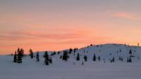 Mye overtidsjobbing og lokkende sol ute gjorde at trengen til å komme ut på ski ble plagsomt stor på tirsdag. Hadde en flott skitur lørdag, men det var jo lenge siden... Stakk av fra jobb halv tre og klarte å være i løypa på fjellet før sola gikk ned. Valgte løypa i stedet for å gå utenom da jeg regna med å være ute så lenge at det ble mørkt. Vinden var såpass sterk og det er mange steder som det er likt. Det er fort å bli kringsnudd i mørket. La i vei i isete løyper. De var nok ikke kjørt siden helga. Valgte de smørefrie siden temp var rundt 0 (klistervegring). Flott med sol når man ikke har fått vært ute i sola på en og en halv uke. Innover mot natten ble det mer og mer føyksnø i løypa. Overgangen fra isete løype til tørr kald føyksnø gir morsomme gliutfordringer. Lurte litt på hvordan det er med smøreski? Skulle tatt bilde av løypa på brua over Storåne. Skøytefeltet i midten og et skispor på hver side som begge blir borte utenfor brua... Passerte under rantan når sole gikk ned. Der var det noen jenter som hadde lagd seg en akebakke. De kosa seg stort. Under leinun tok vinden seg opp. Fenan vart større og større. Kulekjøring i nedoverbakkene. Kunne gitt opp og tatt en snavei tilbake, men regna med at det blåste mindre lengre opp. Kvervilvinda piska opp snøen i ring. Flott å se. Godt mye snø var blåst sammen fra før så det ikke ble dårlig sikt. Træla faktisk med å stå på beina i de verste kasta. Godt jeg liker litt vind... Himmelen tok til å bli rosa og lilla og jo lenger opp jeg kom dess mindre vind. Bekken og tjernet viste tegn på at det kan bli vår i år også. Det var begynt å bli litt overvann. Harespor er det flere steder. Reven har også luska rundtom. Nesten rart det er igjen hare... Med mindre motvind og mindre fenner gikk det fint å komme på toppen av løypa. Flott utsikt over fjella både mot øst og vest. Det var blitt så mørkt at de skyggebildene er sensurert. Nå gjennsto 5 km med utfor og noe flatt. Utfor er kanskje en overdrivelse, men i skumringen ser noen nedoverbakker nesten ut som skumle utforløyper med ukjent ende. Hadde hodelykt, men var lyst nok til at jeg kom til bilen uten å tenne lykta. Følte meg fram i sporet de siste metrene...