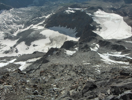 Dette er vel den øverste delen av Maudit, men her skal det jo være faste tau (som man ser i det nederste bildet i linken din Chuck Teller)? Ellers må jeg bare, på subjektivt grunnlag naturligvis, hevde at dette er den flotteste og "artigste" ruten, selv om trafikken og faren for "kork" kan være overhengde også her.