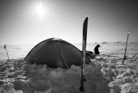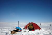 Takk for hyggelige kommentarer. Fjolstilfjells: Ja, det er et Unna-telt. Hunden liker seg best inne når det blir kaldt (og foretrekker sjeldent snø...), så om vinteren ligger han alltid inne i teltet. Men ikke om dagen hvis vi blir liggende. Da vil han være ute. En av nettene lå jeg 12 timer og sov. Det gjorde bikkja òg... Hehe...