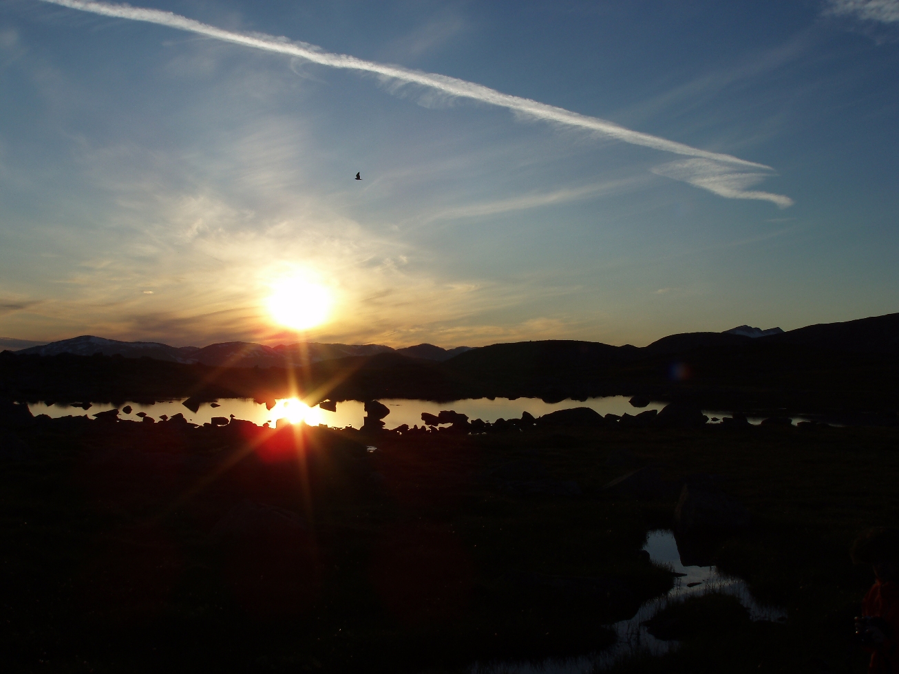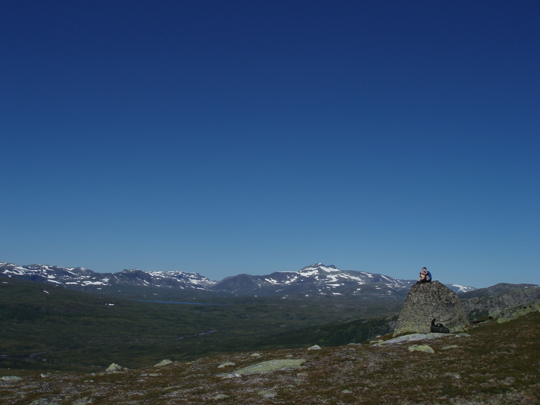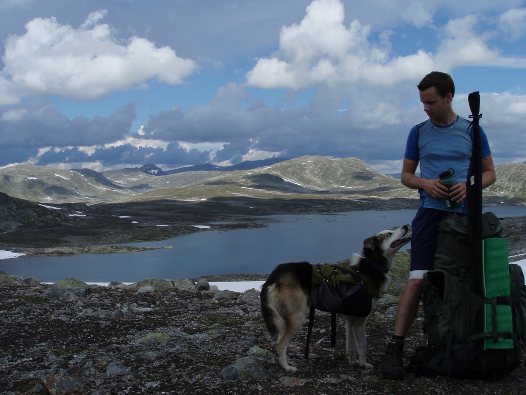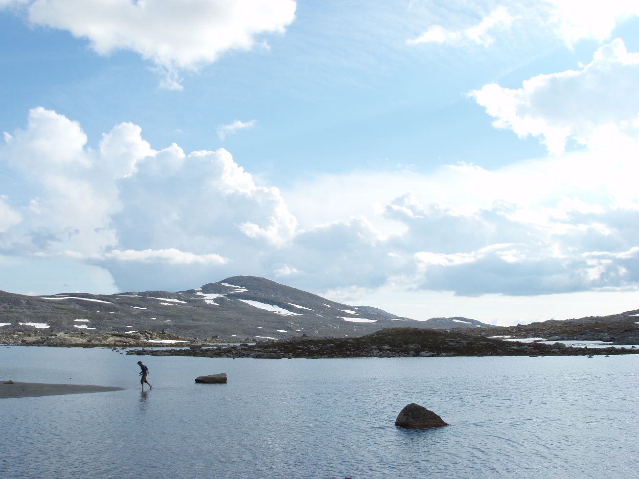 En kamerat og jeg, dvs. Fjellforums Etsvends og Terje WJ, var blitt nysgjerrige på Børgefjell etter en masse hype. Med oss hadde vi Orvis, den nye hunden min, en Alaska Huskey som åpenbart liker å kløve. Vi hadde også fiskestenger med, klare for kilosfisk. Hvordan var så Børgefjell denne første gangen? Hver dag var det mellom 25 og 30 varmegrader. Hver dag var det blå himmel. Hver bidige dag var uten den riktige fjellfølelsen, det var mer som en rar ferie, en surrealistisk versjon av Benidorm. Et avbrudd må nevnes, i form av én time eller to med regn, torden og lyn. Været gikk visst lei av seg selv og utløst spenningen effektivt. Slik jeg ser det, var det det flotteste øyeblikket i nasjonalparken, som både ligger i Nordland og Nord-Trøndelag. Vi hadde bestemt oss for å legge opp til en rundtur sør i Børgefjell. Vi startet med å ta båt over Namsvatnet (200 spenn per pers) og endte opp ved samme vann åtte dager senere. Først dro vi opp et stykke i den bjørkekledte Viermadalen, deretter mot øst og over Lotterfjellet, Nobrinfjellet og så nordover inn i Store Børgefjellet, ved vannene nord for Saapmanjaevrie. Disse områdene er stedvis steinørken (geologisk betraktet) og tilsynelatende tomme for fisk. Det var ihvertfall vår overbevisning inntil vi hørte diverse historier ved reisens slutt. Fisk er det visst overalt, men ikke alle steder biter den på hvert kast, for å si det sånn. Altså i motsetning til hvordan turen vår begynte: Den første skikkelige fiskedagen var en sinnsyk introduksjon til ørretbetthimmelen. På det første kastet dro jeg opp fisk, så det andre, også det tredje, bare napp på fjerde, så fisk på femte, sjette, syvende, åttende, ikke niende, bare napp, så tiende, ellevte, og så videre. Jeg dro opp en ørret hvert sjette minutt i to timer. – Etsvends fisket dessverre et annet sted og jeg hadde rett og slett ikke hjerte til å løpe fra all fisken og finne ham... Det verste var at vi gikk forbi denne utrolige fiskeplassen dagen etter, også da bet det på hvert kast, og det selv om det var et helt annet tidspunkt på dagen. Etsvends kan bekrefte. Resultatet bestod av nesten kun steikefin steikeørret på 300-400 gram. Altså ingen store, men hvem har behov for det på et slikt sted? Deretter ble fisket mer på det jevne, dvs. kjedelig, og vi mistet gradvis lysten (eller hva, Eirik?). De menneskene vi traff fortalte oss at nattestid var tiden å fiske på (selvsagt). Men det blir for ekstremt, vi to kan fint sova bort sumarnatta, ho er ikkje for ljos til det. Forresten var Børgefjell oppsiktsvekkende tomt, det første mennesket vi så, traff vi først etter seks dager. Dett er sikkert en anelse forskjellig fra Jotunheimen denne siste uken av fellesferien. Etter vår leir ovenfor Saapmanjaevrie gikk vi over Viermafjellet i nord – og dermed over fylkesgrensen til Nordland – til en sekkedal ved navn Viermejælla, hvis grunne elv vokser seg mer fyldig mot sørvest og fyller opp Viermavatnet. I den elven er det noen gode kulper med fint fiske. Etter frokosten morgenen etter – som gjerne trakk ut pga min langsomme stil – begav vi oss videre nordover til elven sør for Store Kjukkelvatnet, et vassdrag vi neste dag igjen fulgte helt ned til innoset til Jengelvatnet og videre til sørenden av Blyvatnet. Og det var på denne strekningen vi begynte å se folk. Her trekker nemlig både gubber og kjerringer oppover etter at de er blitt satt i land på østenden av Namsvatnet, like ved munningen av Storelva. Det er ikke mer enn en dagstur på sti og så er du ved noen flotte stryk, fosser og vann, sågar med godt fiske, og ikke minst fine sandstrender om man går på vestsiden. Vi gikk nedover på østsiden, men badet likevel. Godt å få av den seige hinnen av solkrem, svette og stank. Vi gikk en 7 - 12 km hver dag, 7 leirplasser på 6 fine steder. Det første stedet lå i en liten lomme i kratthelvetet i Viermadalen. Her anbefales det å trekke ned mot elva eller opp over fjellgrensen (nok av bekker). Etsvends legger forhåpentligvis til flere bilder og et kart(?).