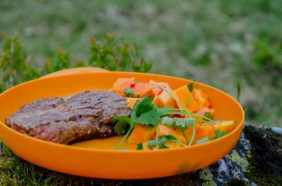 Takk for tilbakemeldingene! Tilbehøret vi hadde denne gangen var papayasalat. Det var veldig godt, men hadde nok ikke holdt på langtur... Vi lagde det tidligere på dagen og tok det med oss i en boks. Ingredienser: 2 Papaya saften av 1/2 Lime 1 finhakket chili Litt koriander