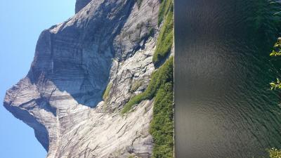 Fint fjell, fint å fiske i stefjorden også. Mild og snefattig vinter gjør nok snesmelting ganske problemfritt. Ruten opp ligger også for det meste på solsiden. Tok dette bildet i sommer mens jeg fisket. Ruten opp er altså på baksiden.