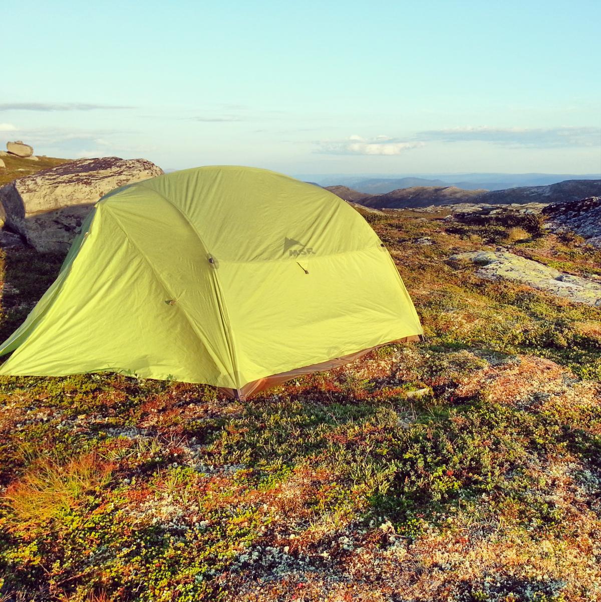 Har et MSR Carbon Reflex 3. Veier 2,1kg, lett å slå opp og meget vindstabilt. Åpning i begge ender så det blir nok oksygen. Brukes mest i høyfjellet da man kun trenger en pressening og litt tau i skauen.