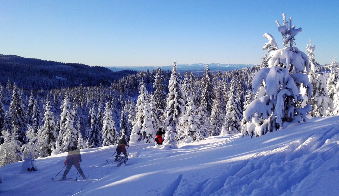Hvis du skal starte fra Grua så er det nesten kriminelt å ikke ta turen oppom Bislingen og Blslingflaka. Du går da i myrer som ligger nesten oppe på 700 m.o.h. Jeg fikk ihvertfall skikkelig fjellfølelse når jeg var der på ski sist vinter i det solen var i ferd med å gå ned. Gikk da opp fra Mylla, til Ålsjøsætra, Venehaugaene, Bislingflaka og ned veien fra Bislingen tilbake til parkeringsplassen. På den turen møtte jeg en kar en vanlig mandag. Det er ganske magisk hvor alene det går an å føle seg bare noen kilometer hjemmefra. På kartet nedenfor har jeg markert (i blått) enkleste måte å komme seg fra Grua stasjon til Bislingflaka. Det er rimelig tjukk granskau her, og rimelig bratt og kronglete til tider, så jeg hadde brukt løypene, ihvertfall til du er i nærheten av Bislingflaka. Der oppe så er det mer åpent over myrene. Det er forresten bra skiforhold nå. Hvis dere kjenner til uttrykket "I svarteste granskaugen", så stemmer det veldig bra for mye av terrenget her oppe. Løypene som går i terrenget og blir kjørt opp med snøscooter er ofte mer enn ville nok. For tiden er det anbefalt å ta av seg skiene i de verste utforkjøringene i den løypa jeg har markert opp til Grønntjernet. Ref: https://www.skiforeningen.no/utimarka/foremelding/nordmarka-nord/ Noen bilder fra Formoløypa, som er den løypa jeg gikk opp illustrerer poenget mitt med tjukk granskaug før du kommer opp på myrene: http://www.xn--mylla-lypeforening-m4b.no/galleriet/formoløypa-2008#top og hvorfor scootersporene kan være grei utfordring. Bildet nedenfor viser hvor flott det kan være oppe på Bislingflaka