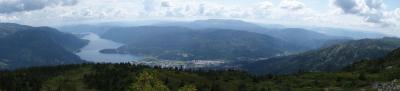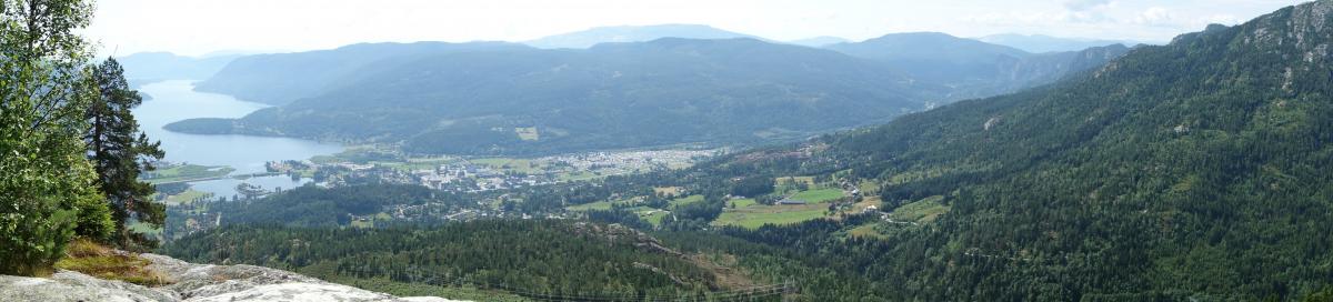 Kom meg en tur opp på Himingen (ikke langt fra Notodden) på lørdag, flott utsikt og veldig passe som første "fjelltur" i år. Tok 1,5 timer opp - og det samme ned igjen. En veldig morsom tur hvor du først går i litt myrlendt terreng, før du går bratt oppover i skogsterreng før det flater litt ut mens stien følger bunnen av fjellveggen til den runder opp på fjellplatået og du kommer ut av skogen til veldig god utsikt til alle kanter. Variert terreng og selv om det ser litt skummelt ut fra parkeringen for oss med høydeskrekk (hvordan kommer man seg opp der tenkte jeg), så er det ingen luftige partier. Der det er bratt er det også skog. Vil helt klart anbefale turen og tipper den egner seg bra for ganske små unger også, ettersom den er ganske kort og veldig variert. http://ut.no/tur/himingen