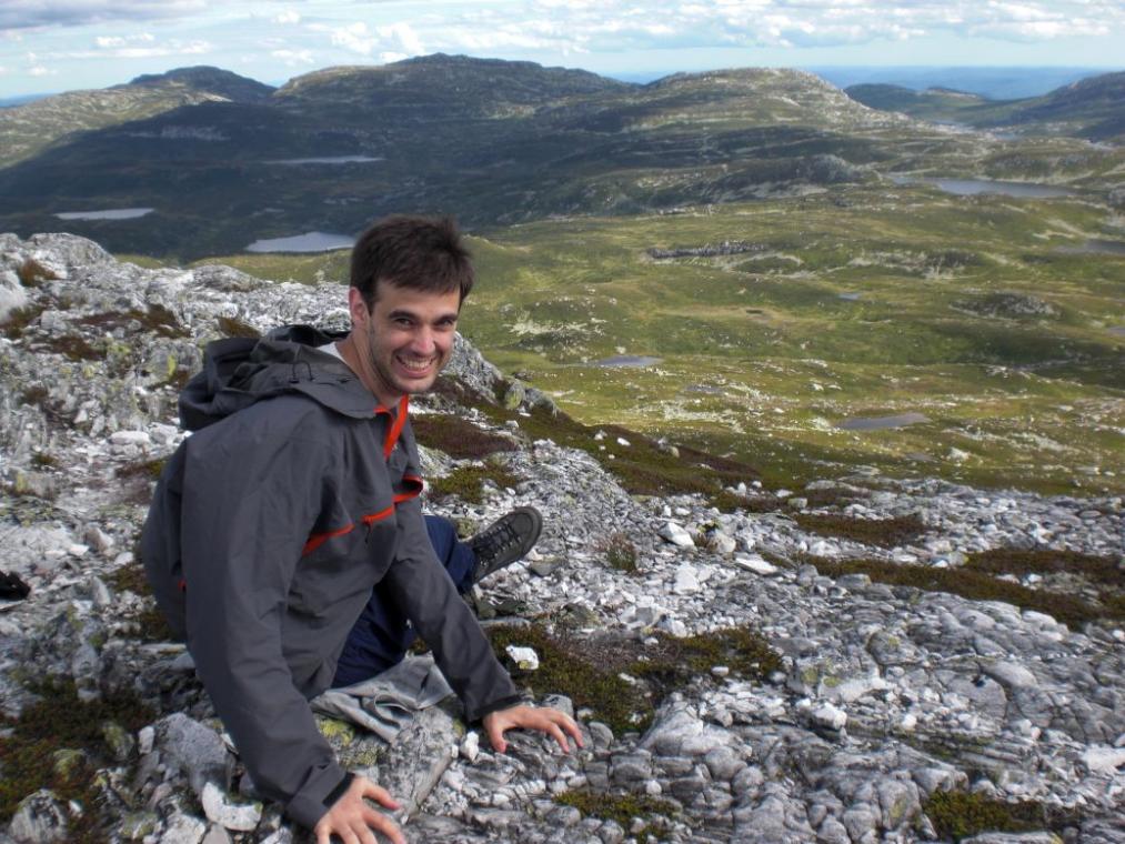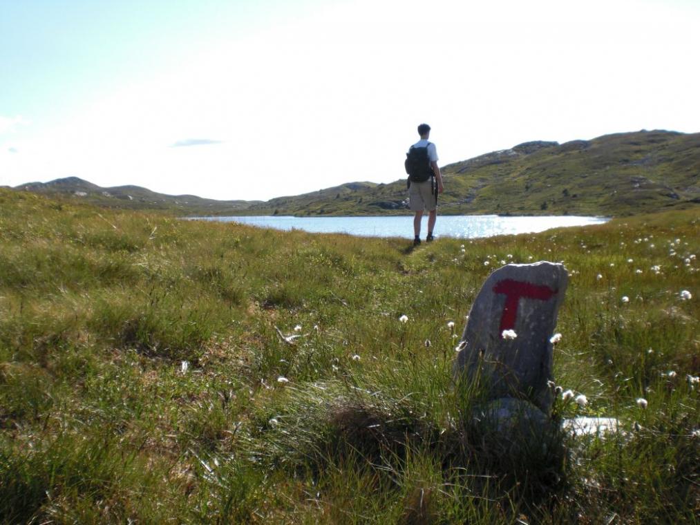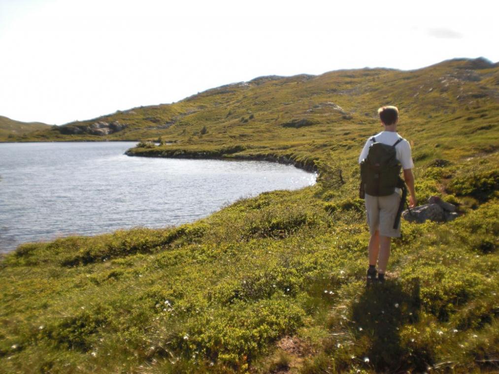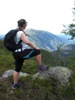 9. Onsdag 25. juli var det endelig meldt bra vær en hel dag og ikke noe "0-5mm" nedbør som det har vært resten av sommeren. Har heldigvis en veldig fleksibel jobb, så fikk tatt meg fri for å dra på tur med kjæresten. Jeg holder til i Kongsberg og har vært på Skrimfjella (Styggemann), Blefjell (Bletoppen) og på Gaustadtoppen, alle topper som kan nås hvis man har bil og gidder å kjøre en time eller to. Dvs, dama kjører, mens jeg sover - spesielt på veien tilbake etter tur. Veldig praktisk. Turen gikk fram Grimåsen til Røysdalsnuten, beskrevet her Turen startet i lettskyet vær og bar oppover en skogkledd skråning på veldig bra sti. Kom etterhver til en stiskille som begge hadde skilt til Tjorbu, men det ene over Bekkestaul og det andre via Tvitjønnan. Valgte stien via Tvitjønnan ettersom det så ut til å innebære litt mindre stigning, men angret egentlig litt, fordi stien var ikke veldig bra gjennom skauen og er mindre brukt enn den andre. Det er diverse stier når det flater ut og endte opp med å ta en sti som tok oss over på Bekkestaul-stien. Sånn går det når man bruker kart fra kart.finn.no. Etter å ha kommet over tregrensen var det fint å gå langs vannene, men jeg begynte å bli litt beskymret for hvor lang tid det kom til å ta, vi startet litt før kl 12 og det gikk ikke veeeeldig fort innover. Vi tok etterhvert av fra stien mot nord-nord-øst enden av Tjorbuvatn og skremte opp en 5-6 ryper(?) på veien oppover. Det er ganske tungt å gå til tider fordi underlaget er så mykt. Det var litt småutfordrende å finne riktig vei opp mot ryggen og vi har begge høydeskrekk (jeg mest). Det var bare ett sted som så fristende ut å gå opp, opp en bratt bakke som alternerte mellom gress og ur. Det gikk forsåvidt greit og høydeskrekken tok aldri helt overhånden. Følte meg rimelig tøff der jeg stod på ryggen helt til jeg la merke til sauen med lam. Jepp, det er ikke spes bratt opp fra den andre siden. Utsikten fra toppen var utrolig bra og med kjempeutsikt til alle kanter. Kunne se snøkledde fjell nord for og vest for Gaustadtoppen og mange av de andre toppene på Lifjell. Fant en toppturbok i en postkasse der, men siden mai, så hadde det bare vært tre følger der før oss. Overraskende få med tanke på hvor fin toppen er. Vi hadde brukt nesten fem timer på turen opp, så vi fikk satt opp tempoet litt og brukte 4 timer ned, så litt lengre enn de 8 timene jeg hadde beregnet totalt, men så gikk vi ikke akkurat veldig fort heller. Tror ikke vi møtte en eneste annen turgåer, men en haug med folk som skulle fiske og hadde med telt. Foto: Anne Martine E. Grymyr