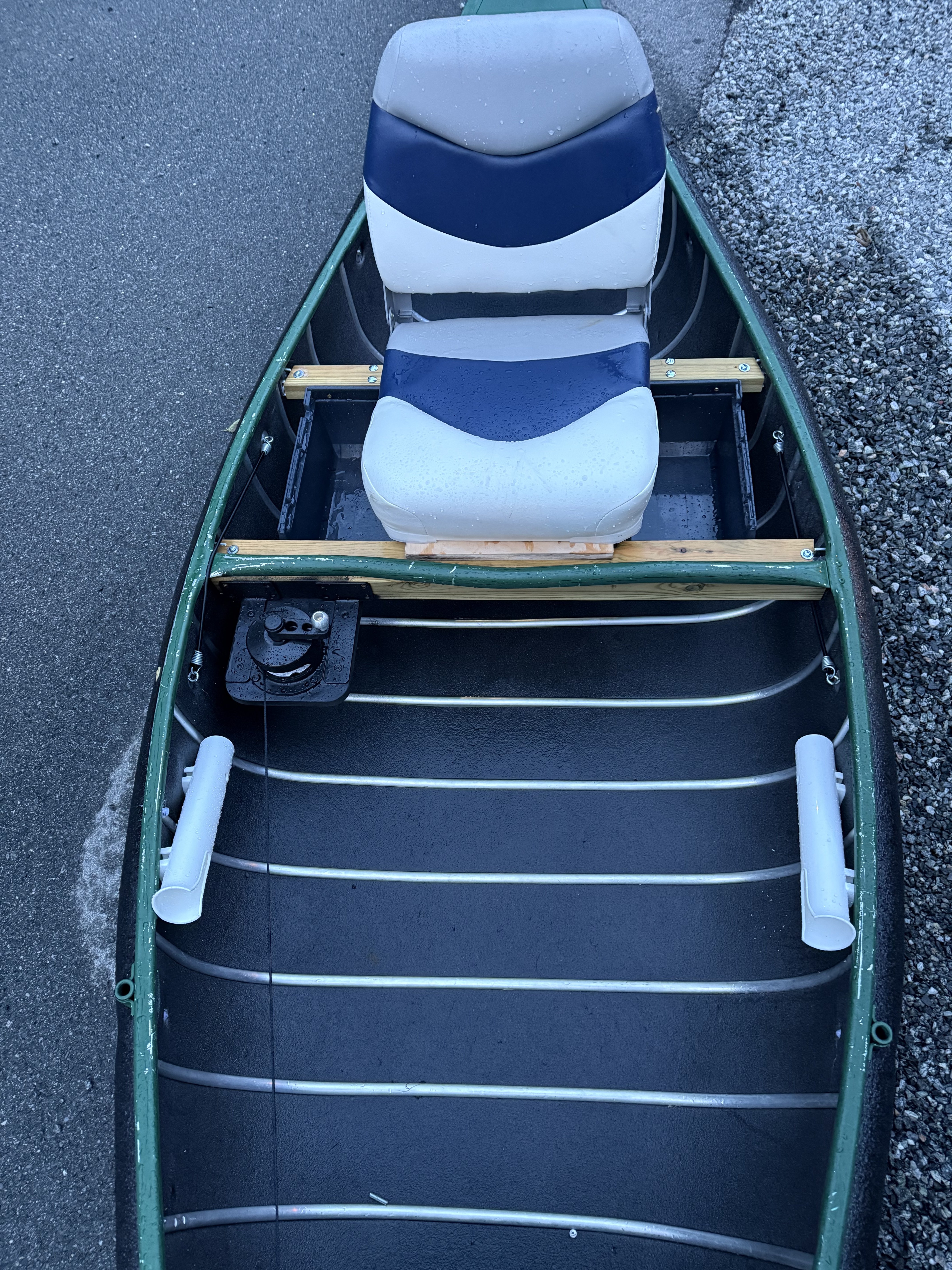Lite hobby prosjekt jeg har holdt på med de siste dagene. Det vil bli gjort litt til og jeg vurderer å bestille planker av ask for å gjøre hele prosjektet på nytt igjen med bedre materialer, men det får bli til neste år. Målet har vert å installere et reversibelt sete slik at jeg kan snu det hvis jeg har med andre samt å øke komforten når jeg er ute å fisker. Det blir noen få ekstra modifikasjoner fremover men jeg har ikke helt funnet ut hvordan de skal gjennomføres enda.