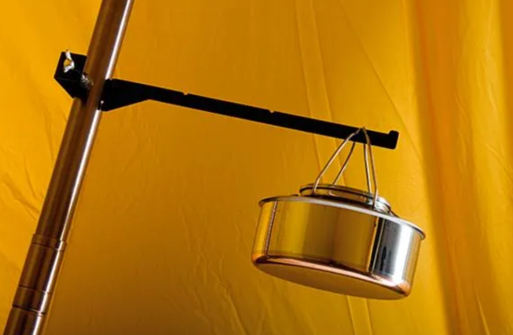 Helsport har egen drying rack, men prisen er stiv for en kleshenger, 1200 kroner. Men biltema har feks de her: https://www.biltema.no/fritid/hage/gjerde/netting/klemme-for-spennstang-34-mm-2000054691 https://www.biltema.no/fritid/hage/gjerde/netting/klemme-for-spennstang-60-mm-2000054692 Skulle ikke være noe hokus-pokus å bruke en slik klemme sammen med feks et par hylleknekter: https://www.biltema.no/bygg/oppbevaringshyller/konsoller/hylleknekt-2000043285?gStoreCode=273&gQT=1 Du kan for eksempel kombinere 2 stangklemmer med et par slike hylleknekter som dette: Heng hylleknektene opp ned og så fester du til et slikt firkantrør som dette: https://www.biltema.no/bygg/byggbeslag/Aluminiumsror/firkantror-aluminium-20-x-20-x-2000-mm-2000058991 Da kan du jo lett få nesten en meter kleshenger i begge retninger?
