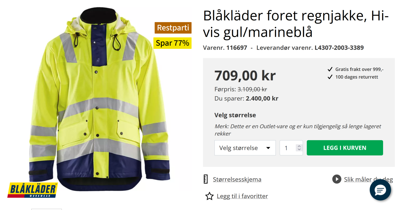 https://billige-arbeidsklaer.no/ Ikke for å anbefale den spesifikke jakken men du finner veldig mange sykt gode tilbud på denne nettsiden. Dette er typisk partier som ligger klare til kunder i industrien og så forandrer de design eller liknende. Dette er jo da gjerne klær som er laget for at folk skal kunne stå ute i storm og fremdeles være komfortable og kunne fortsette arbeidet sitt, så da er det gjerne dyrt og god kvalitet i utgangspunktet. Alle klærne har også sertifiseringer, som feks dokumenterer at de er gode nok til å brukes i minusgrader eller regn. Og gjerne også testresultater som feks viser at de er komfortable i -18c 8 timer i strekk, altså en hel arbeidsdag.