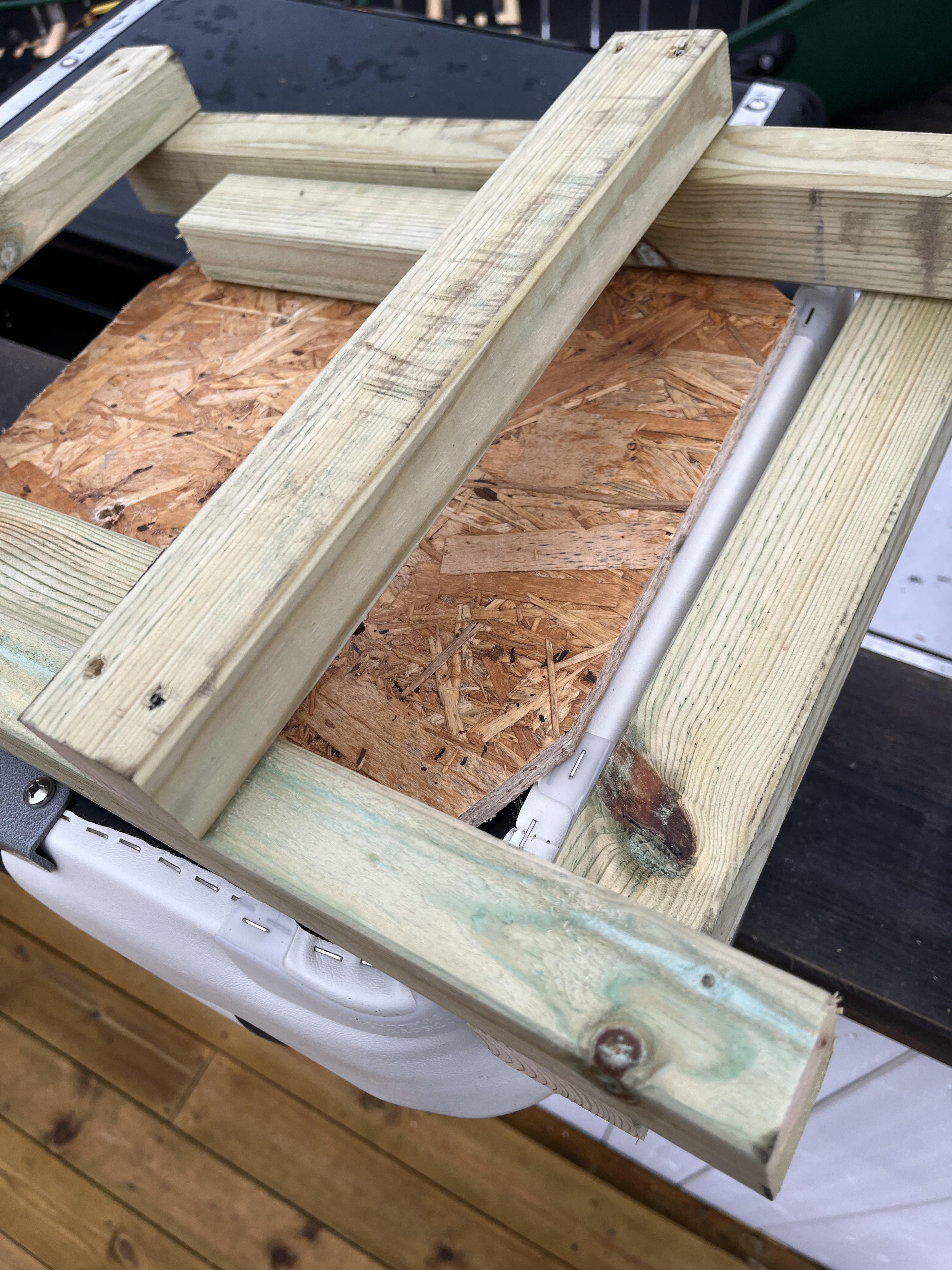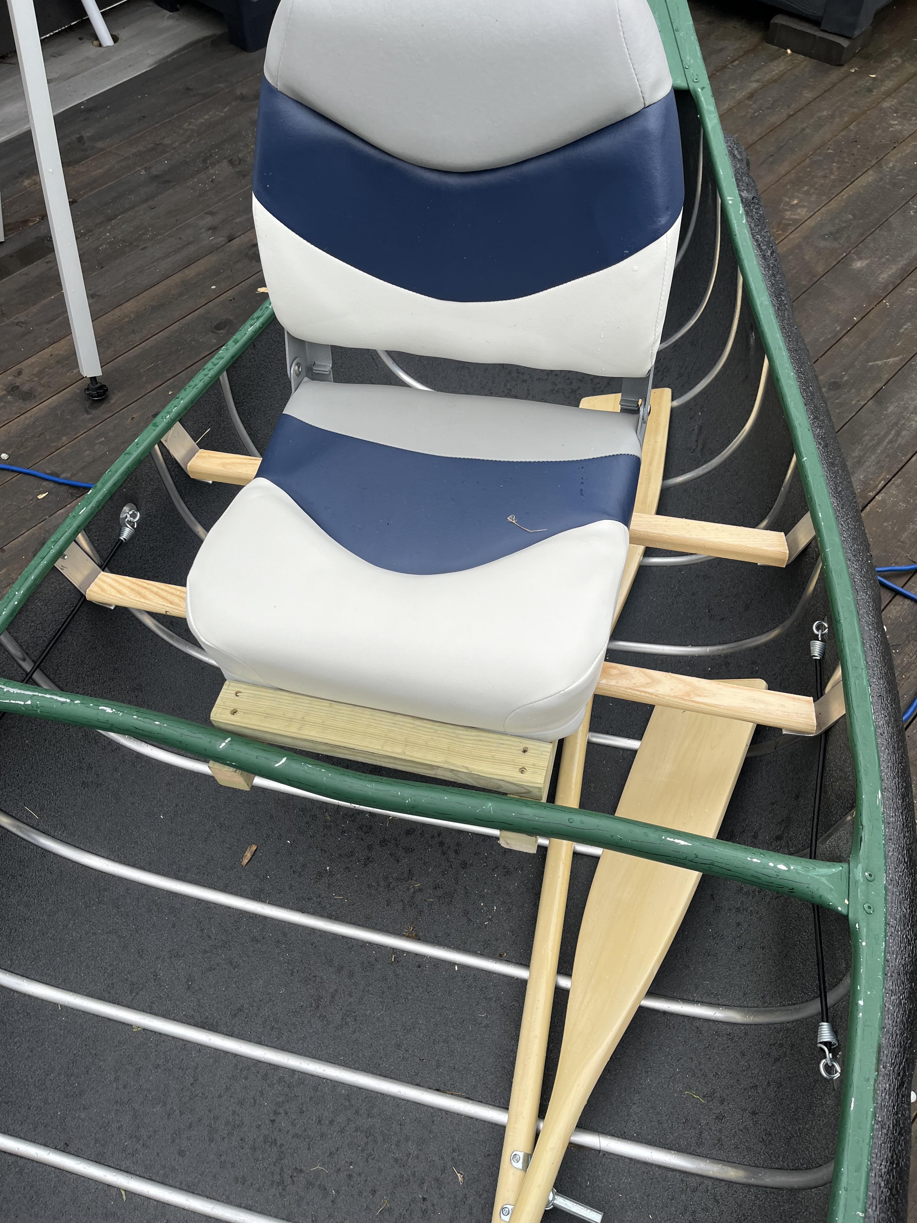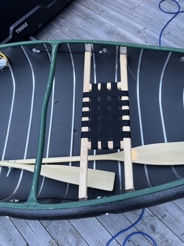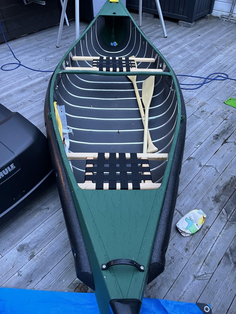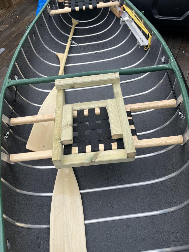 Litt DIY av et halvferdig prosjekt, jeg ønsker å gjøre litt mer for å få til noe oppbevaring på siden av stolen. Samt få på plass en stangholder og en løsning for oppbevaring av fisk. Dette er kanoen det gjelder, en Sportspal 12. Ville montere sete her. Så nære midtstolpen som mulig. Da sitter jeg bak frem i kanoen men sitter også rett bak for senter av den som gir veldig god padleposisjon solo. Bygde denne rammen. Den låser seg bak og fremme på kanosetet samt under midtstolpen. Skrudde fast en kryssfinerplate for montering av stolen Ferdig montert, tar kun et sekund å sette den på plass. Så festes den helt enkelt med en stropp fremme i midtstangen. Legg merke til at den også går litt under midtstangen for at den skal feste seg bedre. Men den sitter i grunn så godt at den kan brukes uten stopper og fremdeles ikke vil falle ut. Raskt og enkelt prosjekt men svært godt fornøyd. Stolen i seg selv er kjøpt hos biltema. Har vert ute og testet stolen for noen dager siden, før jeg hadde montert den skikkelig og den var svært komfortabel. Satt i kanoen i 10-12 timer i strekk uten at det ble vondt eller at jeg ble sliten av det. https://www.biltema.no/batutstyr/batkomfort/batstoler/sammenleggbar-batstol-hvitbla-2000042763?gad_source=1 Stolen er montert ekstra høyt med vilje, ønsker å bygge den opp litt slik at jeg satt høyere. Totalpris på prosjektet ca 700 kr.