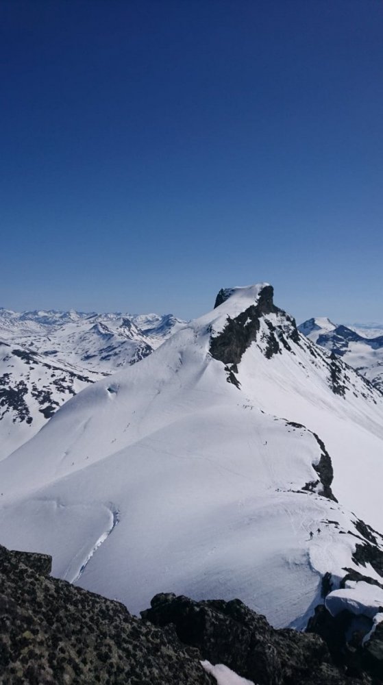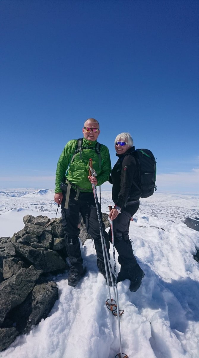 2. Jeg har startet sjarmøretappen på opp24, og benyttet en fantastisk dag i påska skjærtorsdag til en tur til Storviglen. En drøm av en dag! Husket solkrem i fjeset, men glemte ører og armer. Så har nå et veldig snedig markert "oppbrettsskille " på ermene, og det stikker to røde ører ut fra det grå håret. Jaja, det var verdt det, så til de grader Når man står opp om morran rekker man mye: start Trondheim 0600. Var på Storviglen 1257. Nede etter totalt 6 timer. Kjørte deretter til Funesdalen, rakk systembolaget med glans. Deretter fra Funesdalen til Selbu via Stugudal. Kveldskaffe kl 2000 i Selbu, plukket opp datter og hjemme i Trondheim kl 2217. Det ble ostesmørbrød til middag kl 23