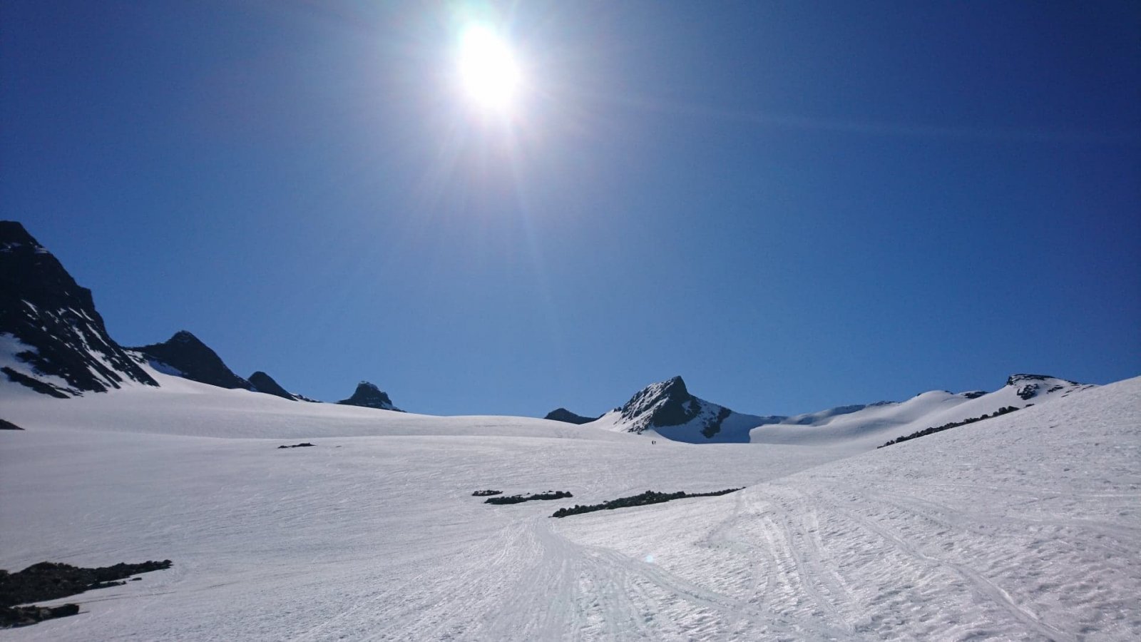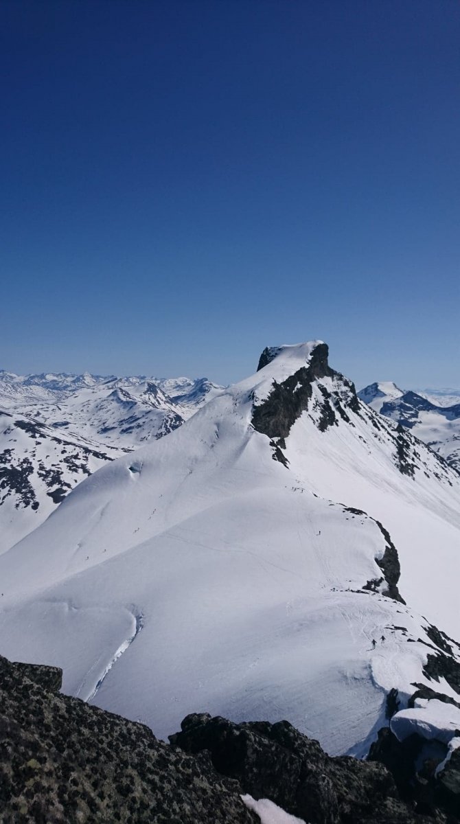 17. Jeg har vært mye på tur siden ifjor, men er skikkelig dårlig på turrapporter. Men turen jeg hadde nå i helga fortjener en rapport, for makan til tur blir det sikkert lenge til! Startet fra Trondheim fredag ettermiddag. Målet var Jotunheimen og Store Smørstabbstind, en topp jeg har sikla på lenge. Overnatta på Galdesand og starta tidlig lørdag morgen, vi ønsket å være ute i rett tid før snøen ble for mye bløt og slush. Altså, greit at det var pinse og mye folk, men så mye folk rundt Krossbu har jeg aldri sett! Det var biler og telt omtrent overalt. Vel, fant en parkering i veikanten, sekken på ryggen og skiene på! Måtte av med de et par ganger, det synger nok på siste verset nå med skiføre der oppe. Underveis møtte vi masse folk, og turfølget slo av en prat med de fleste Jeg var ikke i toppform, forkjøla og slappis i kroppen- men pinsa hadde jeg ikke tenkt å gi bort til sykdom! Siden jeg jobber i helsekost, tror jeg at jeg inntok det meste av det som kan inntas for forkjølelse- og en trippel dose mct olje i kaffen i bilen ble drukket Men altså, turfølget snakket med flere, og da vi kom opp mot der man tar av mot Storebjørn, kom forslaget; kanskje vi heller skulle prøve oss på den, virket som det var mere snø den veien også. Jeg var som sagt litt matt, så alle forslag var ok forslag, så vi tråkka opp mot breen. Mct oljen og alle andre urter begynte å gjøre sin virkning- fjellufta var nok også godt for kroppen, og det var nok sola også. Så formen ble bedre og bedre, og så lettgått som det var over bre på ski så gikk jo dette som en lek! Oppe på breen kom jeg i snakk med et følge, som kunne fortelle meg at han hadde gått på fjellski i alle år, men altså- randonee, det var pensjonistski! Ikke at han var pensjonist, men han hadde enda ikke falt på randoneeskiene, så de føltes mye tryggere. Skjønte han godt, jeg er livredd for å falle- neste vinter blir det enten leid ski eller kjøpt brukt om sjangsen byr seg. Tok en pause i Bjørnskaret, og før det hadde vi sett de som var på vei opp Sokse, så gøy men heftig ut Lang og fantastisk historie kort: fantastiske forhold opp til Storebjørn. Og så mye folk! Måtte ha vært flere hundre på toppen denne dagen. Satte fra oss skiene midt oppe ca, og gikk til fots resten. Var hardt, så hadde sikkert vært greit med stegjern, men var tråkket så gode trinn at jeg aldri følte meg redd for å skli. Og den følelsen å stå der oppe i et FANTASTISK vær- det var rett og slett magisk! Enormt mye folk, alle blide som ei sol! Tråkka forsiktig ned, og stakk oppom Bjørnlabben. Der tror jeg ikke det er lenge til før den sprekken gjør det vanskelig. Tråkka gjennom, snøen var helt lyseblå, og jeg ble et lite sekund litt redd før jeg hoppa over. På vei tilbake måtte vi oppom Veslebjørn sørøst og Veslebjørn. Av med skiene og til fots opp, gikk som en lek i det flotte været! Tilbake mot skaret, tok vi lange strekk og svinger, går ikke så fort med fjellski sånn sett, men heller trygt nede enn å brekke noe. Tok en pause igjen i skaret før vi tusla opp på Bjørnungen. Turen ned til Krossbu igjen var helt fantastisk. Det hadde rukket å blitt litt slush så det var mulig å ploge innimellom med skiene, så vi slapp å kjøre så mye på kryss og tvers. Må innrømme at det så herlig ut å ha randoneeski her, var jo rene alpinbakken ned. Vi hadde egentlig tenkt å bli en dag til, men var meldt endel vind til søndag, og vi ble enige om at dagen hadde vært så fin at det ikke gjorde noe om vi dro hjem. Engangsgrillen og hamburgerne i bilen som var tiltenkt middag ved teltet- ja det ble fortært på en rasteplass etter Lom isteden Tusen takk Jotunheimen som innfridde nok igjen. Tusen takk kropp, for at du spiller på lag på slike dager. Tusen takk alle hyggelige mennesker i fjellet, og tusen takk moder jord for sol og finvær For en fantastisk pinse
