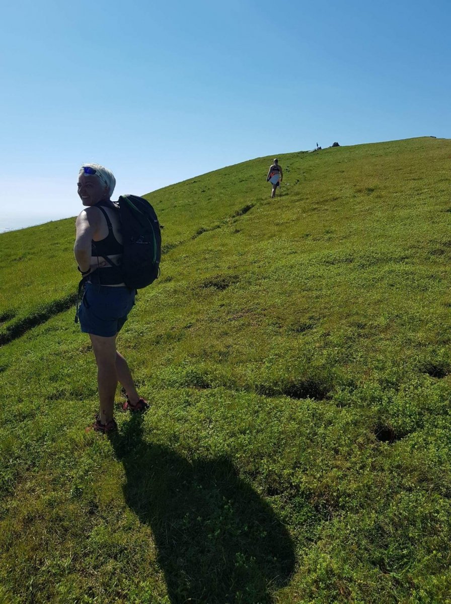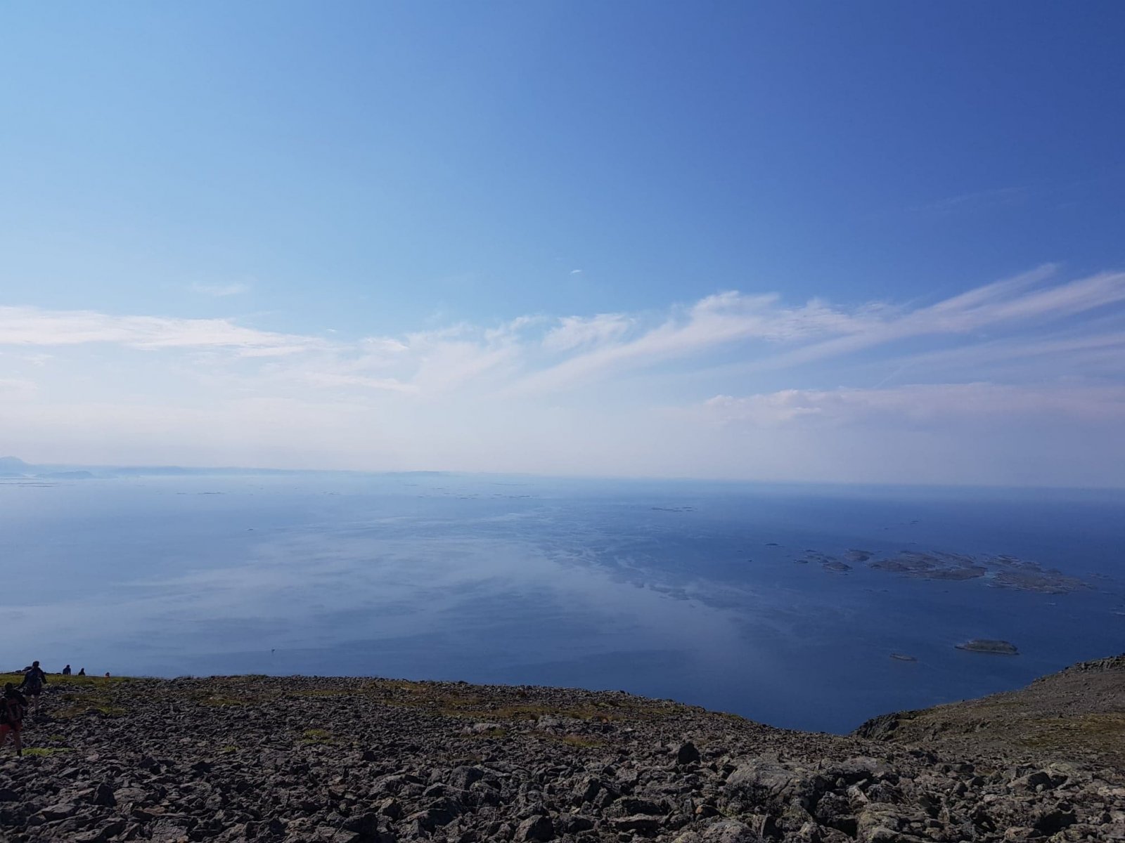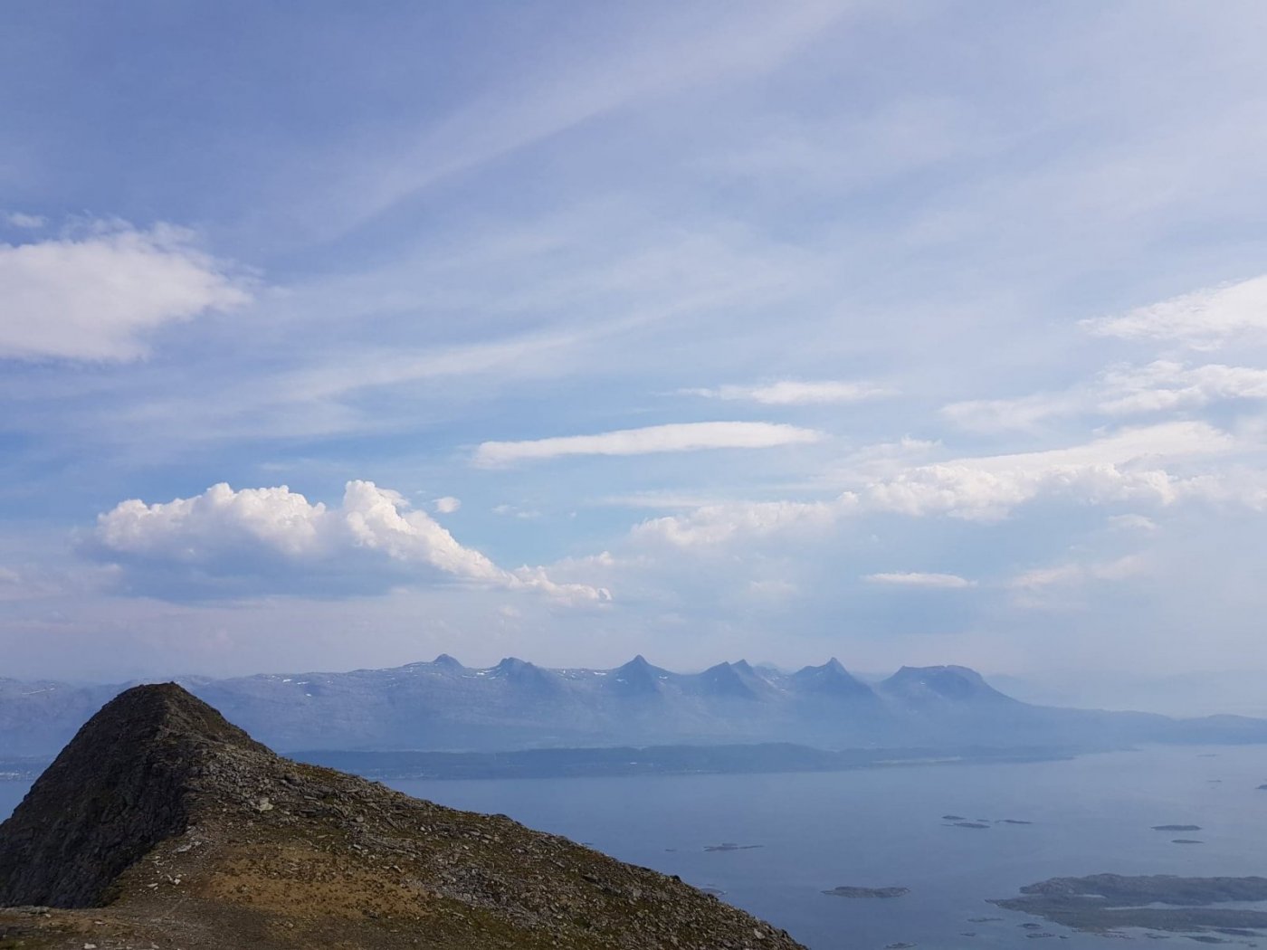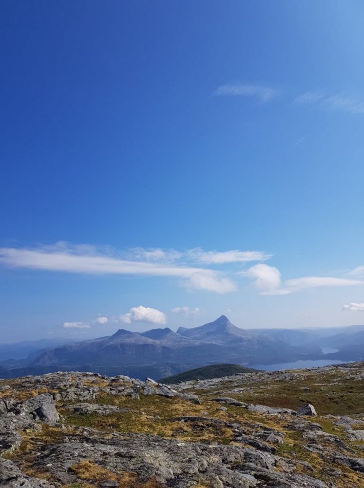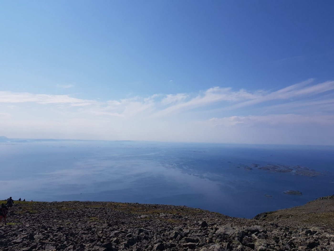 16. Sommerferie! Første del ble tilbragt i Jotunheimen. Litjtuppa hadde ønsket seg Glittertind. Den fikk vi 8 juli, og i samme turen rasket jeg med meg Glittertindsokslene, da jeg ikke hadde de fra sist tur der oppe. Dag to med datter, hennes kjæreste, min nevø og JohnTiger ble på Kyrkja. John endte opp med å være turguide ikke bare for oss, men for endel andre også Sist jeg var på Kyrkja sto jeg litt og vred på det på klyvepartiet, det skjønte jeg ikke hvorfor nå, er jo så gode tak både for hender og føtter der! Så sendte vi barna hjem, og dagen etter stod Loftet for tur, og for en herlig dag! Bare finvær, og lettgått på snø leeeeeenge Kjørte deretter til Beitostølen, da vi skulle møte Harald der dagen etter. John hadde fohåndsgått turen uka før, for ifjor snudde vi før Leirungskalven, men nå var planen å gå opp fra Torfinnsbu, altså motsatt vei. Med to sterke mannfolk kom jeg meg helt over denne gangen, passe forskrekka da jeg plutselig sto oppi " hullet" jeg snudde ved sist gang. Jeg får mere og mere høydeskrekk med årene, og det irriterer meg! Planen var å overraske en venninne på Knutshø dagen etter, men vi fant ut at det var best å høre på kropp ( og ikke minst knær ), så vi satte nesa mot bartebyen for å ta noen dager hjemme. Nå er vi dag laga sånn at vi kjeder oss litt med for mye ro, så søndag dro vi til Ruten, en topp vi har vært på før, men før opp24 kom igang, så vi måtte få logget den. Tåke og dårlig utsikt, men venninna mi som ble med og vi hadde en super tur allikevel Mandag ettermiddag kjørte vi til Mo i Rana, lå i telt på en campinglass den natta. Tirsdag kom vi oss endelig ut til Lovund! Satte fra oss bagasje ( hadde bare med oss en liten sekk ut dit, bilen fikk stå igjen på andre siden ), stakk innom Joker for drikke og satte snuten mot Lovundfjellet. Og i himmelens navn hvor bratt og varmt det var opp dit! Fantastisk gresslette på toppen, fantastisk irriterende drone som surret rundt, og fantastisk utsikt! Træna lå der ute og ropte på oss, men det får bli en annen gang, med fører. Knær sa fra på vei ned, og da var kjettingen gull. Ikke bare føltes det tryggere, men det var mye bedre for bena og gå baklengst ned der man kunne. Vel nede kunne vi badet på den fine stranda på vei " hjem " men vi ( eller ihvertfall jeg ) var veldig opptatt av å rekke å kjøpe et par kalde pils på Joker før den stengte Svette og fornøyde satt vi med en pils på Emaus pub og var enige om at det hadde vært en fin dag. I rorbua på kvelden fikk vi oppleve noe spesielt, hildring. Øyer som ikke skulle være der, og som forandret seg minutt for minutt. Fascinerende! Anbefaler virkelig alle et besøk på Lovund. Dagen etter satte vi kursen mot Dønna. Vi hadde egentlig tenkt å ligge i telt der, men været meldte regn på kvelden, så etter mye telefonering fikk vi et rom på vandrerhjemmet i Sandnessjøen, herlig! Jeg var litt skepp til Dønnmannen etter ulykken et par dager før, men ble beroliget med at vi skulle gå opp fra andre siden. Fint terreng oppover, og vann å fylle på i varmen fra elva. Faderullan hvor varmt det var! Oppover bratta var det løst. Jeg falt på slik grus da jeg gikk søstrene for noen år siden, og har kjemperespekt for slikt terreng. Så da vi kom til det bratteste med tau, ble jeg mildt sagt skrekkslagen JohnTiger har lært meg å aldri stole på tau etc som henger igjen i fjellet. Bratt var det, ikke visste jeg hvor mye de tauene hadde gnisset mot steinene, eller hvordan det var festet på toppen. Men kom meg opp med god hjelp, selv om hodet fikk kjørt seg slik at jeg egentlig ikke nøt da vi kom oss helt til hovedtoppen. Gikk greit å gå bortover dit, men alle tankene var på at jeg skulle ned igjen det tauet. Men det gikk da fint det og shø. John gikk først og hjalp til, så nå jeg slutte med det der gruegreiene som tar all energi! Deretter ferge og inn til Sandnessjøen hvor vi akkurat rakk oss inn før det begynte og tordne og lyne. Sjeldent har vel noen vært så takknemlige over en kebab på Sandnessjøen grill kl 2130 Neste del av prosjektet var Vega. På vei dit stoppet vi på Igerøy for å stikke opp på Ørntuva, øytopp akkurat over grensa- 102 moh Deretter ble det kaffe med slekt av John, før vi satte fra oss bagasje på campinghytta, handlet og kjørte litt rundt på vakre Vega. Grillings i fjæra på kvelden, men utsikt rett mot Søla- som ser ut som en fantastisk topp! Vi må visst bare bli bitt av kajakkbasillen, så vi kommer oss ut til slike topper! Vega kunne by på gedigne elger, hare, ørn og rådyr. Morgenen etter tok vi sikte på Trollvasstind, kommunetopp på Vega. Fin tur opp, og mere folk enn vi hadde sett på lenge. Egentlig ganske lettgått hele veien. På toppen kom John i snakk med noen som skulle ta runden, vi visste ikke at det faktisk var mulig å gå opp fra den siden vi var på dagen før, stranda. Vi hadde bilen der den normale ruta går, så vi tuslet samme vei tilbake. Nå begynte knærne virkelig å si fra, og vi ( eller rettere sagt jeg ) brukt lengere tid ned enn jeg pleier. Mye klegg og fluer, men hjemmelaget myggolje fungerte tålelig bra. Lite vann å finne på denne turen. På fergeleiet kom venninna fra ruten av med kajakk på taket, mens vi kjørte ombord for å sette nesen mot Brønnøysund. Hvor vi kom fram på ettermiddagen. Sjekka inn på Thon, tok en velfortjent dusj, på med turklær igjen, for nå skulle vi på kveldstur! Stakk opp til Torghatten ( toppen ), hvor vi møtte en forvirret franskmann som skulle inni hullet fra motsatt side.....mener vi så ham på vei ned da vi var nesten nede, heldigvis. Vi måtte selvfølgelig få med oss Torghatthullet vi også, jeg hadde ikke vært der siden 97. Nok en fantastisk irriterende drone, millimeter fra å si fra til vedkommende. Tilbake til hotellet, ny dusj og god mat og drikke på Kred. Dagen etter skulle vi til Lysingen. Jeg begynte å bli litt skeptisk, da knærne nå virkelig 