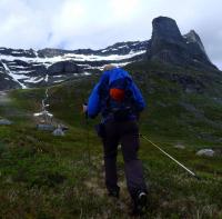 12. Den CR'en av Onkel Jo gir spesielt mening for de som har lest Norway: The Northern Playground av William Cecil Slingsby. Turrapporten finnes åsså på bloggen vår: http://olsendriver.blogspot.no/2013/08/storen-walkabout-3-4august-2013.html HTHT* - Et hull av første rang *hytte til hytte tur Skrevet av: Onkel Jo På hytte til hyttetur: Kjetil, Dag the Dog og jeg Andre: Svært få S&D: Turtagrø - Klubhytten – Styggedalen –Vormeli – Midtmaradalen - Turtagrø Da vi nærmet oss Turtagrø etter to dager på tur, håpet jeg at noen skulle stoppe oss og spørre om vi hadde vært på Storen slik at jeg kunne svare: Nei. Vi har gått rundt. Yr meldte helt koko sprutregn alle relevante steder på lørdagen, men søndagen skulle være ok. Dårlig vær for klyving, men fint vær for å dramatisere en fottur. Vi gikk opp til Klubhytten fredag kveld, tente peisen og tok plass i sittegruppen under oljemaleriet og museumsgjenstandene. Utenfor herjet møkkaværet og nede ved vannet lå et nedblåst, gjennomvått telt. Ved midnatt så vi to karer som prøvde å reoppsette teltet i kuling og regn. De hadde hatt en lang dag på Storen, og vi inviterte dem til å overnatte på Klubhytten. De takket ja. Styggegdalsbreen. Stor vannføring gjorde at vi måtte krysse breen. Neste dag kledde vi oss for sterk vind og 40 mm nedbør (per time. Red Anm). Vi gikk et stykke tilbake mot Turtagrø før vi fulgte en umerket sti over brinken mot Styggedalen og kom tett innpå tre reinsdyr med svære gevir. Litt syd for stien ligger et eldgammelt fangstanlegg med traktemurer, fallgraver og bogasteller. Tre store reinbukker. Den ene haltet. Håper det går bra med den. Elven som renner ut av Styggedalsbreen på nordsiden gikk hvitt, og vi lette etter krysningspunkter flere steder, før vi fant ut at det letteste måtte være å svinge over breen. Den ytre tungen er slak og sprekkløs, men var helt utrolig glatt i regnværet. Det ble litt slap stick komedie der vi stotret oss over uten steggjern. Kraftige byger, mørke skyer, dystre fjellvegger, morenelandskap og glinsende blåis. Det kan være veldig fint å gå på tur i drittvær. Gjertvassdalen. Eller Wolverine Walley om du vil. Den egentlige Styggedalen er et trangt, steinete gjel som ligger øst for Styggedalsbreen. Kulingkastene dro godt i klærne da vi rundet kanten til Gjertvassdalen og kunne se ned i Utladalen. Hytten som ligger like under Keiserpasset har blitt blåst flere hundre meter ned i lien. Den så underlig ut der den lå, tilsynelatende intakt, i en 30 graders helning. Skybrudd som i Thailand. Dagens kruks lå foran oss. Krysningen av en særdeles flomstor Gjertvasselv. Den beste muligheten var å ta langt oppe i botnen under breen, før sideelvene gjør den for vill. Akkurat da vi sto midt ute i elven, i underbuksen, med iskaldt, fossende brevann vann til knærne, kom dagens aller kraftigste regnskyll. Stemningsfullt. Vormeli. Det tropiske hølet midt i Jotunheimen. Ser du Vormelihytta på bildet? En time senere gikk det bratt ned i Utladalshølet til Vormeli. Bregnejungel, blomster, fossesprut, regnskog. Det har bodd folk her, nede i dette gigantiske gjelet, i bunnen av Jotunheimen. Vormeli betyr den varme li. Frodig, men utilgjengelig og langt, langt unna folk. Korteste vei til sivilisasjonen om vinteren var Fortun. 10 timer. Ingen klarte å bo fast her særlig lenge, men det var lenge støler under gårder i Fortun. Slingsby brukte Vormeli som utgangspunkt for førstebestigningen av Storen, og kun han og svært få andre har klart å ta seg ned juvet til Årdal. Det er ikke langt, men svært farlig om vinteren og om sommeren går må du gå langt oppe i dalsidene. Noen velsignede ildsjeler i Vormelis Venner har satt den ene bygningen i stand for enkel og overnatting. Det finnes ikke merkede løyper i området, men tre til dels utydelige stier leder ned i Utladalshølet. Alle er ganske bratte og gir deg en følelse av at Vietkong kan angripe når som helst. Rustik gentleman i rustik hytte. Til venstre: Originalen til barnebokfiguren Dag The Dog. Til høyre: Originalen til tegneseriefiguren Onkel Jo. Legenden Sulheim. God stemning på tur. Morgenstund i tropene. Fargene er ikke justert på bildet. Orkidé. Multe som trenger litteranne mere tid. Opp Midtmaradalen med Sydveggen på Storen midt i mot. På søndag fulgte vi elven nedover mot Årdal til vi kom til Kirkestigen. Her går stien bratt opp mot en gigaklippe med flotte spir. I følge Marco finnes universets feteste teltplass på toppen av denne klippen. Været var det aller beste da vi entret Midtmaradalen. Naturkjenneren Dag the Dog pekte ut vandrefalk, kongeørn på himmelen og et vell av blomster på bakken som jeg vanligvis ignorant tråkker på mens jeg har blikket rettet mot toppene. Midtmaradalen er vidunderlig. Lettgått mellom vakre buldresteiner. Glemte storvegger på venstrehånd, kultklassikeren Midtmaradalsryggen på høyre hånd og Storen rett frem. Mannen og Kjerringa er lavere enn totusenmeter og T-stien er lagt ned, så her er det tomt for folk og desto mer natur. Klarer du gi navn til alle überklassiske veggene, toppene, ryggene, breene og chausseene i dette bildet? Men det var ikke tomt for folk på Bandet. Vi satt å så litt på joikahælvetet opp mot Storen. Folk i rappell bare hundre meter over hytten. Folk spredt utover på de merkeligste steder. Kaos. Vi ruslet ned til Turtagrø og snakket om at vi var svært fornøyd med å være fotturister i dalene fremfor «tindebestigere» på Storen akkurat denne helgen. Kjetil og Dag har bilder. <CR slutt> Under Storen og Slingsbybreen. Jubileumsveggen. Veggen med blant annet ruta Ny Tid. Sjekk den gylne klippen til tross for drittværet.