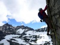 17. BILDE CR fra Olsendriver Føåveggen i Sunndalen anbefales. Fin dag i sol på søndag. På: VPG Rune, Trine, Dag The Dog, Tor Arne og Anne S&D Lørdag: Dekkskift, Litjtoppen Randotur. Litjrenna på Vålåstadhammeren (?) S&D Søndag: Flåveggen via Ryttere i Storm Da fotokameraet har konka blir det bilde CR sett gjennom GoProlinsa. Flåveggen var veldig fin. Svaformen var ganske rusten fåsds. Topos for Flåveggen finner man i klatreføreren Klatring i Sunndal. .