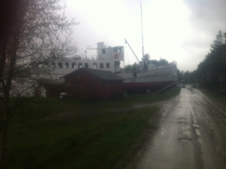 Båten er neppe på sjøen igjen før på slutten av uka, fikk jeg beskjed om i dag. Jeg og to jenter jeg traff på Røvollen fikk transport med en kar fra Jonasvollen, Røa til Synnervika for 200 pr. pers. Ellers kjører også han på Haugen også.