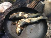 For spesielt interesserte legger jeg ut litt om grunnutrustningen. Obs! Dette er ikke en fullstendig liste: Bergans Helium 55 liter: 1200 gram WM SummerLite sovepose: 525 gram Bamse liggeunderlag: 700 gram Tarp: Helsport fjellduk. Veier rundt 700 gram med hette og armer, kan brukes som poncho. Fikk aldri brukt dette. Tror ikke det er noe særlig å gå i, men kan kanskje funke hvis man skal stå å fiske eller raste litt mens man venter på at været skal bli bedre. + Tau, lastestropp, teltplugger etc. Blir vel omtrent en kilo++ til sammen. En wok/stekepanne som tåler bål. Ukjent vekt. Jetboil alu, veier rundt 300 gr Primus gassboks, 100g Klær: Skalljakke fra Norheim, ukjent vekt. Vanntett, men puster ikke supert. OK så lenge det ikke er alt for varmt. Veldig vanntett etter et års ganske hard bruk. Fjällraven G-1000 bukse 504g. Disse buksene er jo veldig solide og puster bra. Denne komboen fungerer strålende i pjuskregn. Fjällraven G-1000 bukse 504g Mat var seks pakker Real, ti pakker YumYum nudler, ca. 1 kg nøttesjokkis og en halvliter instant havregrøt. Kunne klart meg med litt mindre. I tillegg fiskeutstyr og en masse småstæsj. Kniv, kakao, etc. Savnet en litt mer skikkelig kniv av typen samekniv eller bushcraft-kniv til å kløyve greiner etc. Ville gjort det kjappere å få gjort opp et kaffebål. Dessuten glemte jeg å pakke kaffe. Ikke så viktig å ha de dagene man vandrer, men gull å ha når man tar det mer med ro.