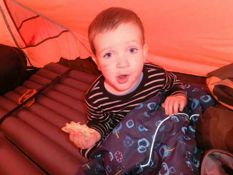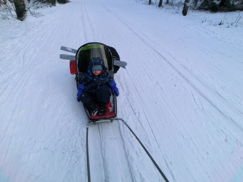 Var veldig skeptisk på den turen her,junior hadde veldig lyst på telt tur helt siden vi kom hjemme igjen fra hyttetur i romjula,hadde sett 120liter norrøna sekken jeg hadde med på hytta og ville på teltur siden (kjent syn som ofter er med på tur) men fant ut vi kan jo alltid prøve og se hvordan det går.Starta og pakke på lørdag og det gikk en del timer da utstyret var over alt. Kom til slutt frem til sogsvann ca 14,hadde fått lånt en fjellpulk av en god nabo og var spent på og se hvordan den her var vs nordpulken som jeg hadde. Ble veldig posetivt overasak den var lett og feste på sekken og veldig god og gå med,men etter kort tid klaget junior på att han var sulten og sliten,han hadde godt noe på ski men ikke spesielt mye likte seg best og sitte i pulken. Da var det ikke så langt fra svartkulp og siden jeg ikke hadde 110% kontroll på alt utstyret tenkte jeg att vi slår opp telt her så er det hverfal ikke langt hjemm hvis det skulle bli noe kaos eller noe som er glemt. Pakka ut teltet og der kom første overaskelse,dama hadde pakka teltet fra sist gang det var hengt til tørking husker jeg sa "bare legg det ned i posen du så lenge det er tørt jeg slår det opp før jeg skal på tur igjen" hun skulle rydde og telte tok mye plass osv,det jeg ikke tenkte på var att det var pakka ned med 100 knuter (følte hverfall slik ut når jeg holdt på) Så starta junior igjen "pappa jeg er sulten" så da ble ikke teltet ferdig slått opp eller, okey sier jeg vi tar litt brødskive (polarbrød) og smøost (skine ost) han svarer da elegant nei pannekaker,prøvd og overtalte men det var uaktuelt,lagt så noen pannekaker og han var glad igjen og hjelpte meg videre med teltet var veldig stas og få lov til og bruke spaden,det var han sin spade som han sa Kom så inn i telte og siden det var lørda hadde jeg tatt me noe godteri og han fikk se litt på brannmansam,det ble nesten 30 grader i telte så var ikke mye klær vi satt i etterhvert vi sovnet rundt 9 begge 2,rundt 11 så våknet han og klaget litt tenkte nå er det vel bare og pakke sammen og reise hjemm,men viste seg att han bare var tørst fikk litt vann og jeg våknet opp rundt 7 og han sov enda,surftet litt og leste litt før han våknet 8 skal si noen sover godt spiste litt frokost,pannekaker og polarbrød med smørost det var stas,gikk så ut og akte lit,utrolig kjekt med slike små rumpe akebrett må jeg si kjøpte det på xxl 10 kr per stk,fant ut att det var greit nå og komme seg hjemm da det var mye som skulle vært gjort hjemme og klokken var jo 11. Skulle rive teltet men da fant jeg ut att han hadde ei bleie som måtte byttes på,varmet opp teltet igjen og fikk byttet på han før vi reiv ned teltet,han hjelpte til med spade og var veldig fornøg. Kom etterhvert nedover og skulle ringe dama får og bli henta,da fant jeg att mobilen var død pga batteri heldghvis hadde jeg med ekstra batteri og fikk ringt,ville vært spennende med alt det utrstyret på t-banenen alt i alt en veldig fin tur på "kjente" omeråder var utrolig moro og gå ned igjen og treffe så mange folk som skulle ut i marka var og veldig moro og få testet ut den selvlaga "planken" til og feste Simmerlighten som fungerte veldig bra,var skiklig kjekt med gass laterne og anbefaler det,gir finn vare (70 wat) og veldig mye lys -