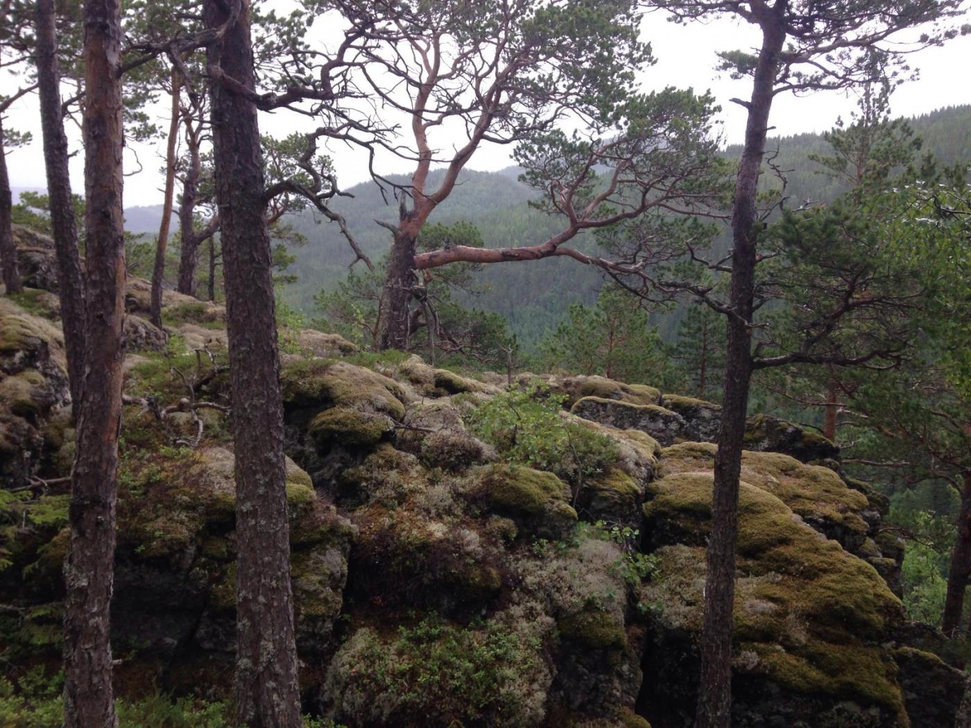 En ettermiddagstur med eldstemann på 12 i etterhvert lett regn, til Steinshåmmåren, 183 moh. En av "5 på topp" i Stjørdal, ordnet av kjentmann.no. Kjøpte heftet i går, og tenkte jeg måtte skvise inn en tur mellom pakkingen, før en 3-ukers ferietur i lavvo alene med 3 unger fra i morgen. Fin tur, ganske bratt og ulendt, men helt overkommelig. Mye furuskog - gir godfølelse for meg som er fra sørlandet og vant til mye furuskog. Tok oss god tid til å studere funn langs stien frem til det begynte å dryppe. Masse lav i skogbunnen, og det ser ut til å bli endel blåbær i år. Beklager uklare bilder - hadde bare mobilen med. Ønsker meg et lite kompaktkamera som tar knall bilder!