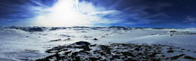 Tok Krossobanen opp fra Rjukan i forgårs og overnatta ca 1km nord for Helberghytta til igår. Ikke mye snø på Rjukan, men det er forsåvidt irrelevant. På platået var det nok av snø. Enkelte avblåste "topper" som var smeltet ned litt, men mer en nok av snø til å gå, og god snø å gå i. I tillegg: Vet at Ousland.no arrangerer tur fra Haukeliseter - Finse fom 18.April, slutten av uke 16(?), så en arrangør med tur som koster 10 000,- pr deltaker regner jeg med har tatt forbehold om at det er nok snø. Her er bilde tatt 3-4 km sør for Helberghytta i forgårs: Bildet er tatt ved en såkalt "topp", men skal svært mye til at det er smeltet nok snø til at det blir problemer med å gå om et par uker vil jeg si.