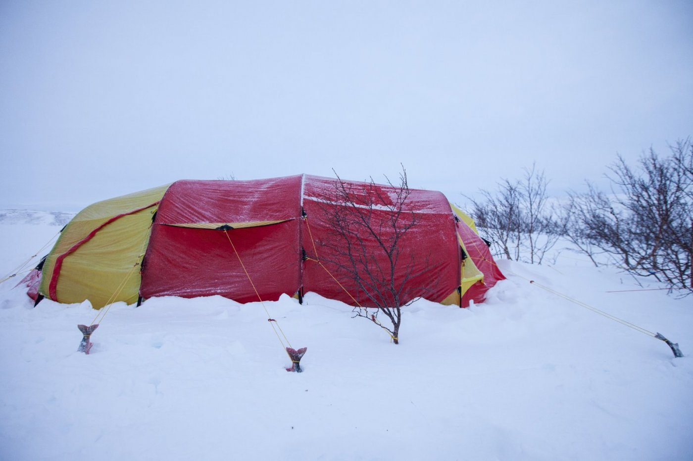 Jeg setter opp der det er dypest mulig snø fordi jeg ønsker en dyp kuldegrop. Derfor har jeg med en brøytestikke jeg kan måle snødybde med. Denne fungerer også som lang teltplugg mot vinden. Vi tråkker gjerne snøen mer kompakt med ski eller truger først. Bonusen med velge dyp snø er som regel at den legger seg der det i gjennomsnitt har vært minst vind... Jeg bruker ikke noe under teltet, men har ofte med en isolert jervenduk som brukes som ekstra gulv. Eller et stort, tynt skumunderlag som er like stort som gulvet. 3 grunner til at jeg ikke bruker granbar under teltet: 1. Det er knapt trær der vi oftest ferdes 2. Jeg tenker at det ikke blir så sporløst om vi skulle samle masse granbar og legge igjen på teltplassen hver gang 3. Jeg tenker at det ikke er så heldig for teltbunnen heller... Noe mer detaljer finner du i denne turrapporten:- 35 svar