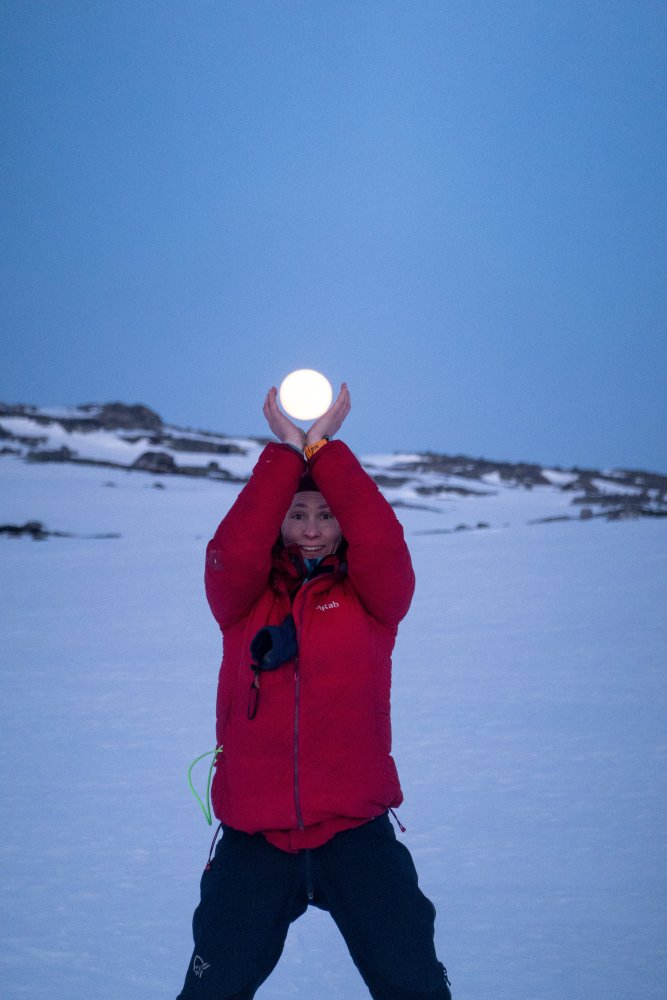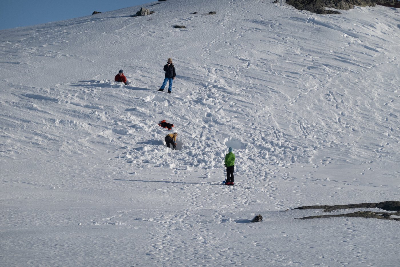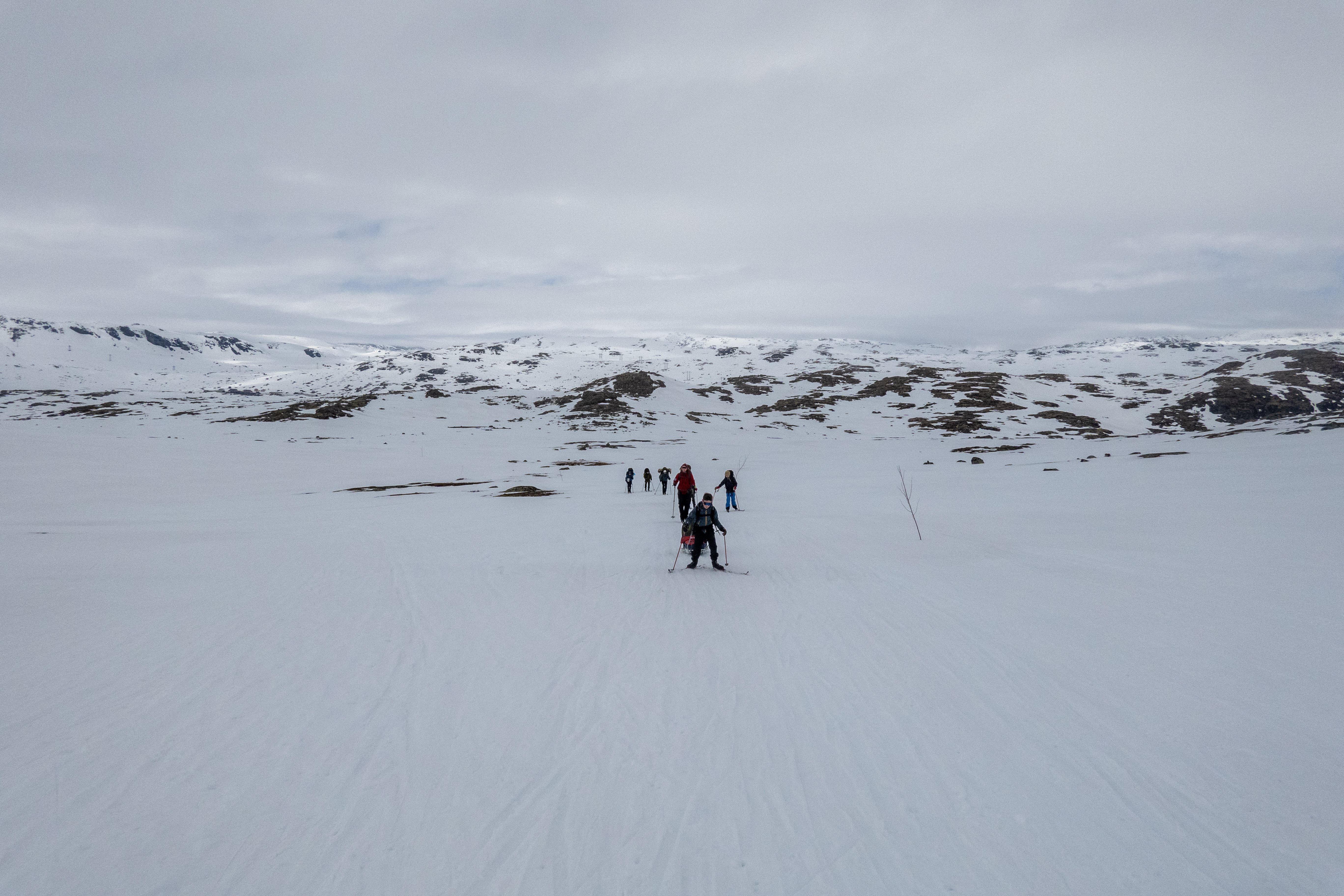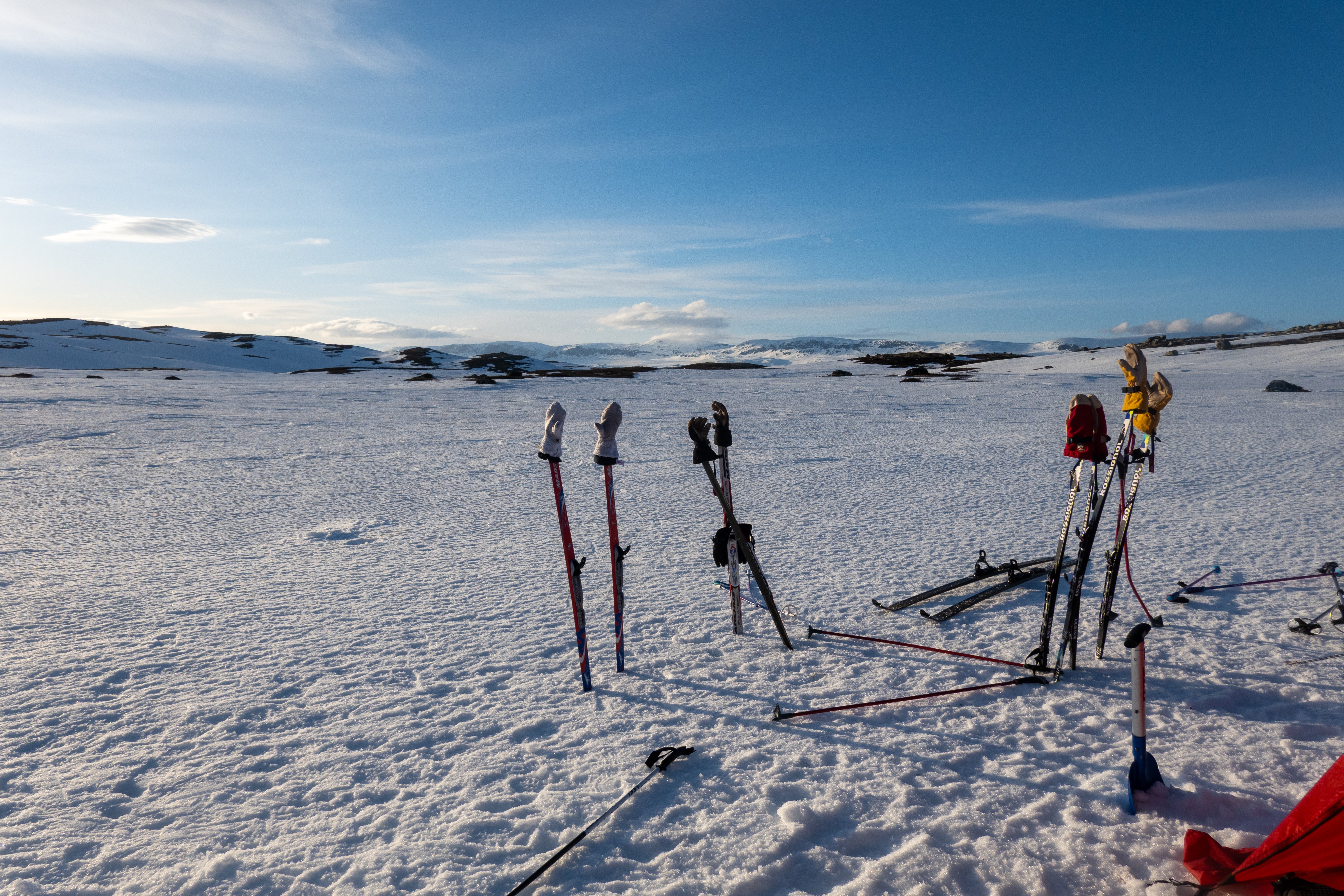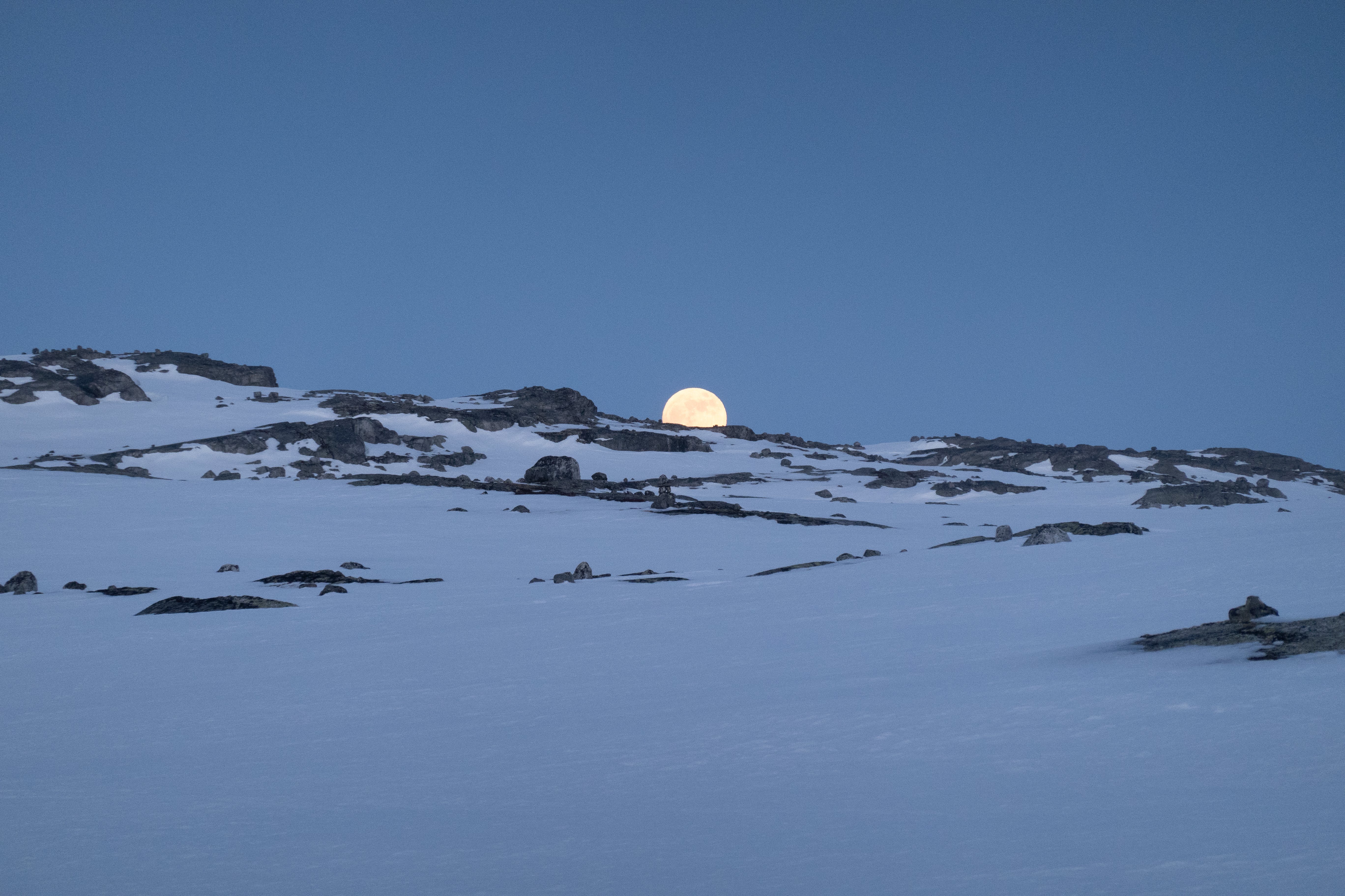 Vinteren 24/25 kan vel de fleste enes om at ikke skriver seg inn i historiebøkene som den beste og utviklingen mot påske tilsa at tur på hytta ville bli mindre spennende. Selvfølgelig kan vi kose oss på hytta uten snø, men planene om å ta med barn og hunder på toppturer i nærområdet og lek i snøen, det så litt mørkt ut. Diverse alternativer ble diskutert, teltleir i jotunheimen feks, men det var ikke så tiltalende for de på 4 og 7 hvis resten skulle på randoturer. Mor i huset som, i alle fall tidvis, er ambisiøs optimist forslo å ta toget til Finse og gå noen dager med telt og full pakke. Far var som vanlig litt skeptisk, det var tross alt 6 barn i alderen 4-13 år som skulle være med og ikke alle er superivrige til å gå langt på ski. I fare for å bli stemplet som den alltid kjipe måtte undertegnede bare bite det i seg og være med på å planlegge tur. Planen ble å kjøre til Ustaoset, ta toget til Finse og gå tilbake. Og hvis dere lurer på hvorfor vi kjører til Ustaoset og ikke bare tar toget fra Oslo, prøv å kom dere til Oslo S og tilbake med 3 pulker, 6 barn og 2 hunder. 4-åringen måtte ha med pulk og vi trengte 2 transportpulker for å få med oss alt. Planen var at våre 2 Sibirske huskyer skulle trekke en fjellpulken 168 alene, men dette hadde vi ikke prøvd før så barnepulken ble rigget med dragfester bak for å ha en liten transportpulk hengende på slep, sånn i backup. Lørdag 12. April Avreise Fetsund kl 0600 med bil og henger for å nå toget 12:08 fra Ustaoset. Vi hadde beregnet god tid, men var litt usikre på parkeringsmuligheter. Google hadde gitt oss indikasjoner på at det var parkeringsmuligheter på stasjonen, men det stemte ikke. Bagasje og unger ble lesset av på stasjonen før vi etter litt rundspørring fikk leie en parkering til 200kr dagen. Jaja det fikk heller være. Toget var stappfullt med pulker og utstyr, vi var vist ikke de eneste som skulle starte fra Finse denne palmelørdagen. Det gikk vist av 150 personer, noe flere en vi foretrekker å starte en tur med, og langt flere en de 2 som gikk av toget sammen med fruen en onsdag 4 uker tidligere. Etter opptelling på perrongen for å være sikre på at alt og alle var kommet av toget var det bare å spenne skiene og skli forbi Finsehytta og svinge i retning Krækkja. Varmegrader og slush gjorde føret litt trått, men sirkuset var i gang. Det var tidvis litt misnøye og klaging når vi startet på stigningene, ungene var vist mest gira på gaming og avslapping i påsken, men det ga seg fort. Faktisk var interessen stor for å trekke pulk, tvillingene på 13 og brødrene på 11 og 9 konkurrerte nærmest om å trekke pulk opp bakkene, og det med smørefrie/felle-ski av ymse slitte kvaliteter. Hundene løste også oppgaven trekking av pulk fint, selv om de ikke forstår helt det med jevnt og passe tempo, det er full spiker eller full stop p. Været skiftet litt med overskyet og sol, tidvis kunne vi skimte Hardangerjøkulen opp på vår høyre side. Etter 9km ble det camp ved Brattefonnvatnet og skydekket lettet og gjorde at vi kunne spise middag ute i strålende sol. Det ble lek og morro ute og rundt teltet. Etter at ungene hadde lagt seg insisterte fruen på at vi måtte vente til fullmåneoppgangen. Det ble ganske magisk. Søndag 13. april Det var en del minusgrader i løp av natten, men ikke verre enn at de voksne klarte seg fint med 3 sesong pose, ungene hadde fått vinterposene. Etter frokost ledet fruen raskt og effektivt riving av leir. En Artic bedding fikk alle liggeunderlag tømt for luft, og en sovepose. På den måten slapp vi i det minste å rulle og pakke 7-8 underlag, men måtte fortsatt blåse opp. Nattefrosten ga litt raskere før og alle ivret i vei. Motivasjonen for noen av barna var egentlig at vi skulle gå alle milene helt frem første dagen, slik av vi kunne dra hjem. Egentlig liker de godt å være på tur så litt rart. Uansett, vi var alle litt spent på monsterbakken som mamma hadde dratt pulk opp noen uker før, og denne monsterbakken var motivasjon i seg selv. Og til monsterbakken kom vi til slutt, etter at undertegnede vist nok med viten og vilje hadde sent hunder og pulk etter mamma for en stygg takling. Jajaj, man får tåle noen gloser etter slike uhell. Når monsterbakken kom skulle alle gutta vise at de var menn, her skulle det helst dras alene, men de forsto raskt at det var bare å samarbeide. De imponerte foreldre og andre skuelystne stort med innsatsen. Også Lillesøster på 4 fikk noen km på ski denne dagen. Etter en 11-12km kom vi oss frem til Krækkja der det ble vaffel, de burde jobbe litt med kapasiteten på vaffelsteking. Ventetiden ble lang når vi skulle ha 8 vafler. Interessant hvordan historien om sirkuset vårt på tur ble gjenfortalt på engelsk i peisestua før vaflene var ferdig. Teltleir nr 2 ble på en odde rett bortenfor Krækkja. Drittværet som egentlig var meldt tidligere på dagen begynte så smått å sige inn. Vi var glade for at vi ikke fikk regn og vind midt på dagen. Mandag 14. april. Igjen hadde vi fint skareføre og kunne suse avgårde over Store Krækkja og Ørteren før vi krysset RV7 ved Lægreidstølen. Her var det fullstendig galematias, biler parkert over alt, kø, folk, hunder… Vi startet videre mot Tuva, men 4 åringen var kald og sulten så det ble å søke ly bak første løa, frem med primus, varmeflaske, mat og Kakao før alle igjen var klare for fight. Løypa innover mot Tuva var i overkant befolket for vår smak og det var ikke lett å få hundene til å gå dit vi ville når det var så mange Settere å leke med på alle kanter. Ble fort bedre når vi krysset Nordover en mer direkte rute mot Ustaoset. Nok en gang ble Mor og Far overlatt til en lett sekk og måtte nøye forvalte hvem som skulle få lov til å trekke pulk. Mest stas var det å trekke lillesøster på 4, selv om dette nok lett var den tyngste pulken, Det ble en ganske tidlig leir, til noen sin fortvilelse. De ville jo tilbake. 