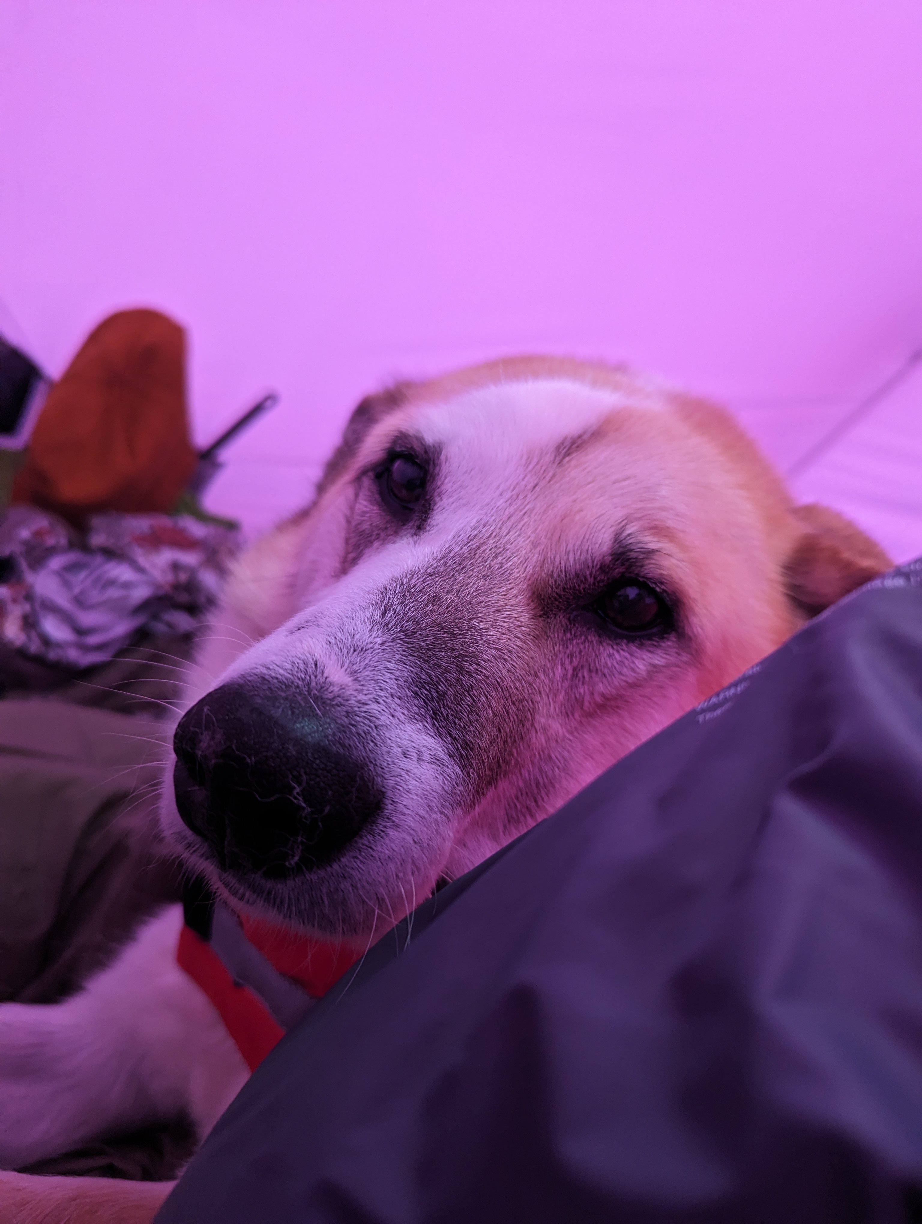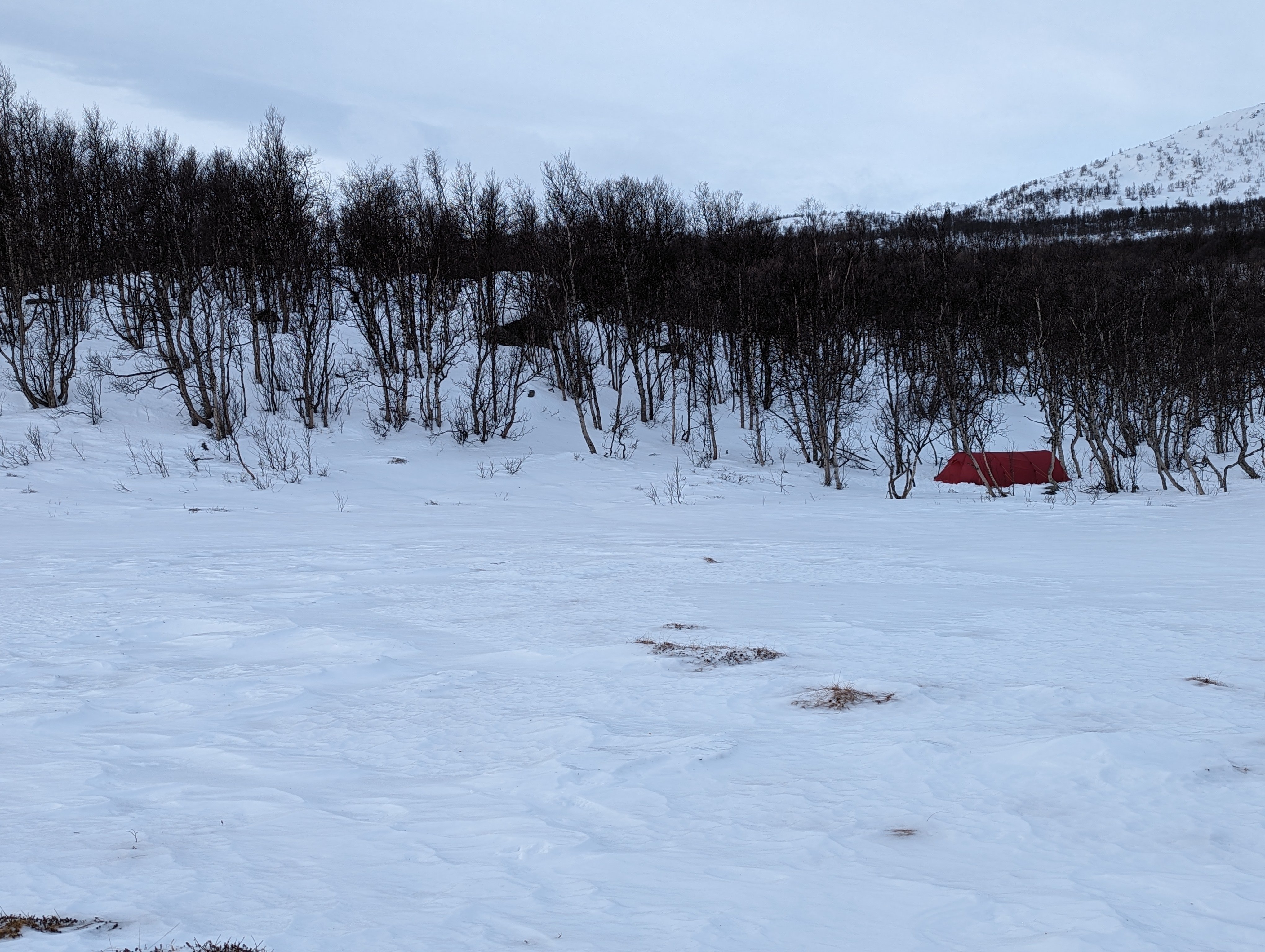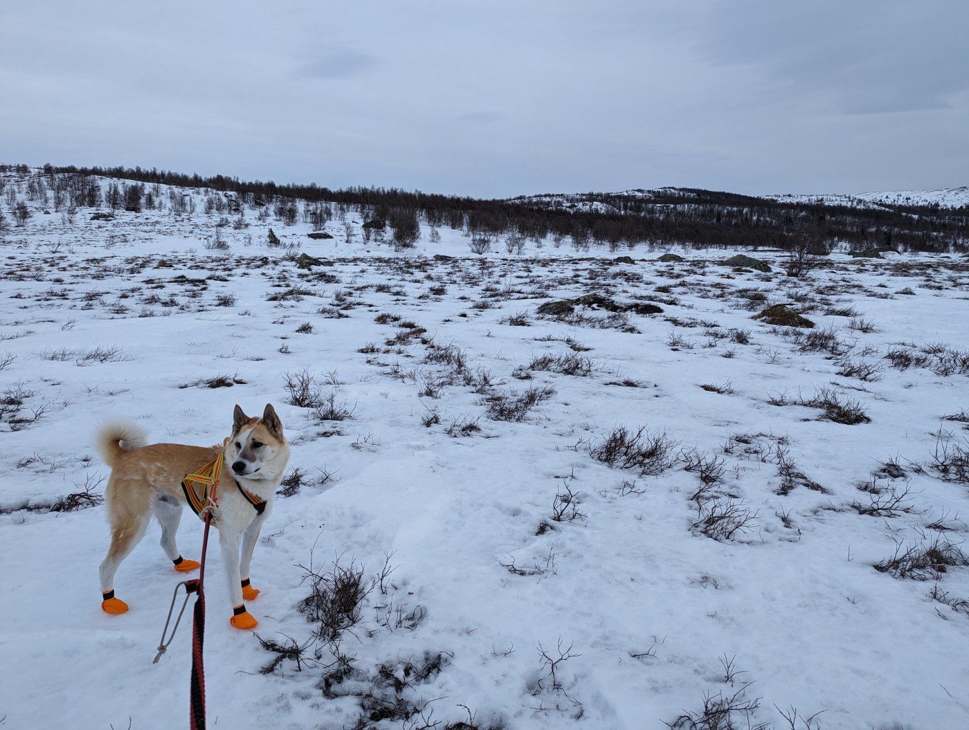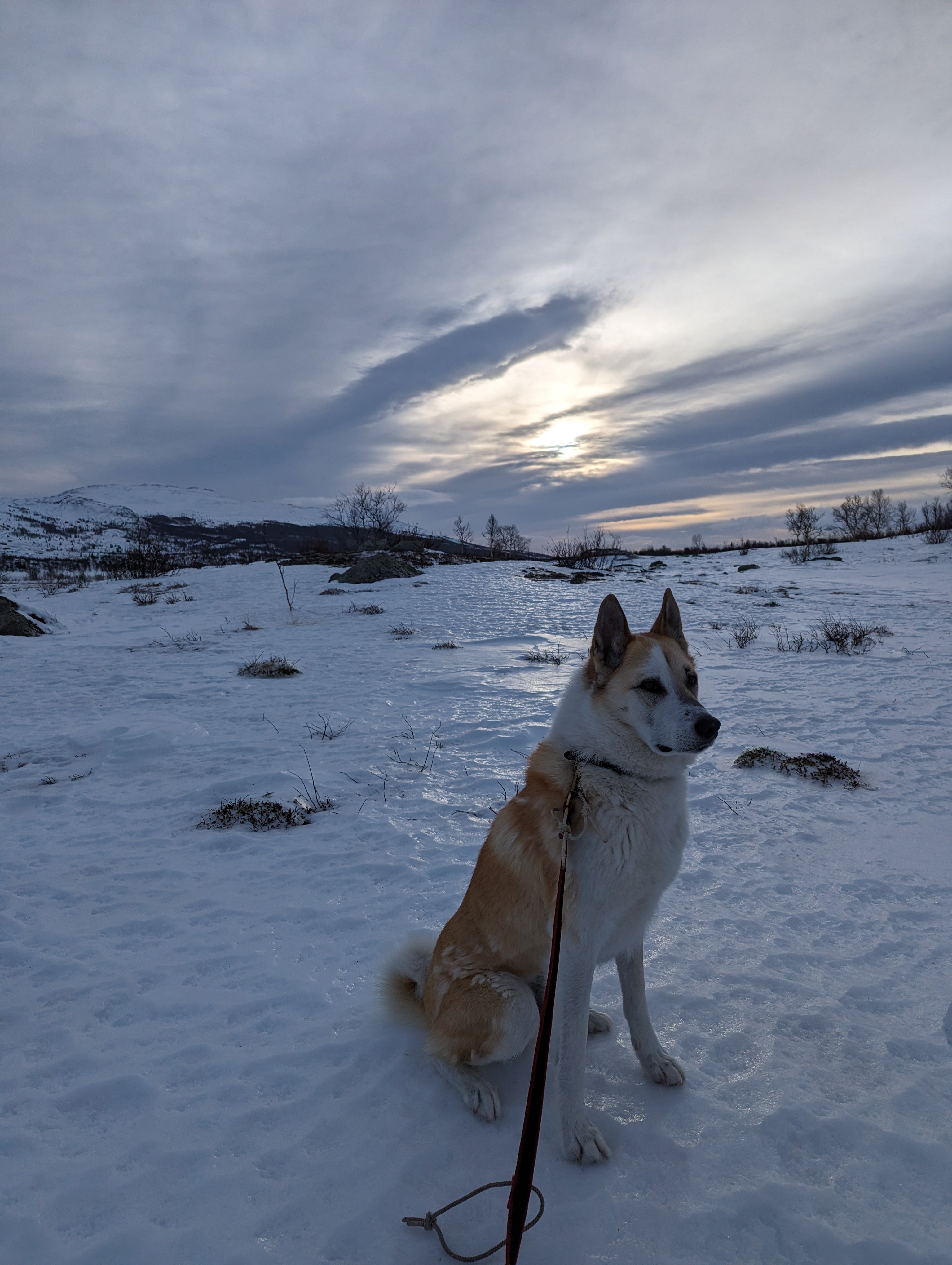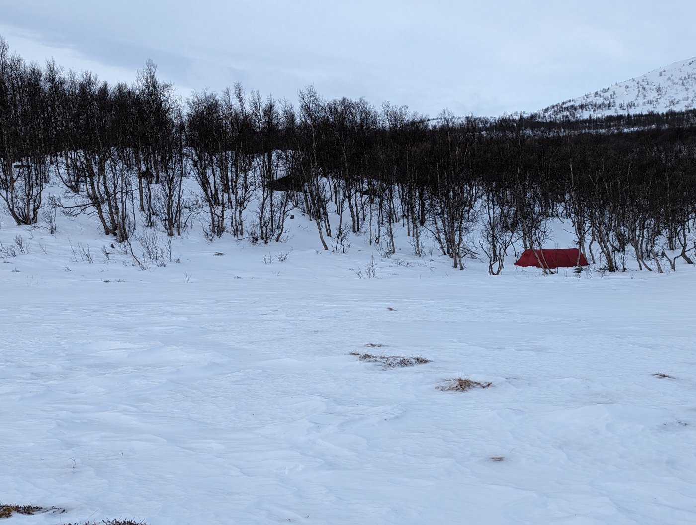 Jeg hadde planlagt at bikkja og jeg skulle på en liten telttur fra lørdag til søndag i "bakgården". "Bakgården" vil si Vestre Slidre statsallmenning, og jeg tok utgangspunkt i å starte turen fra Kvislasyndin. Når det nærmet seg helgen ble værutsiktene dårligere og dårligere for lørdagen med plussgrader, stiv kuling med storm i kastene, og etterhvert regn. Jeg så på Yr.no at frem til tolv ville været være nokså greit, så jeg planla å få dratt tidlig slik at alt var på plass før det verste været skulle starte. Jeg hadde også store planer om å få pilket litt disse dagene. Men sånn gikk det da altså ikke. Det startet med at jeg ikke fikk pakket og ordnet ting før på lørdag, så avgangen ble 11.30 i stedet for. På vei opp på fjellet måtte jeg ligge bak brøyteren siden det føyka så voldsomt over veien. Når jeg endelig fikk parkert, pakket ut og gjort klar pulk og hund, og skulle til å koble på taudraget, så var det ikke noe taudrag der, det var jo hjemme koblet på dekkene. Ja, ja, da var det inn med bikkja og alt utstyret, kjøre hjem og hente taudraget. Heldigvis er det ikke lengre tur enn maks 20 minutter. Ca. 13.30 var jeg endelig klar for å begynne å gå, men da hadde vinden tatt seg opp betraktelig (jeg fikk senere vite at noen hadde målt høyeste vind i området til å være 30 m/s.), så det ble en røff tur ned til dit jeg hadde tenkt å slå leir med mye vind og storm i kastene, pulk som gikk rundt flere ganger, vind som nesten veltet meg, men vi kom da oss ned og fant en nokså lun plass å slå opp teltet. I tillegg til mye vind måtte jo selvfølgelig glidelåsen på min Arcteryx SV Alpha gå i stykker for andre gang, noe som forsåvidt ikke passet så bra syntes jeg. Kvaliteten på YKK glidelåser har jeg forresten dårlig erfaring med. Før jeg kjøpte denne Arcteryx jakka, så hadde jeg en Norrøna skalljakke som jeg også måtte bytte glidelås på to ganger. Den tredje gangen ga jeg den opp, og håpet at Arcteryx ville være bedre, men neida. Når jeg slo opp teltet, begynte det å regne så både dunjakke, isolasjonsbuksa og skallklærne ble klissblaute, men etterhvert var teltet oppe og sikret så da fikk vi endelig kommet oss inn. Da var jeg både sliten, kald og sulten, og veldig klar for middag. Etter å ha skiftet klær skulle jeg sette igang primusen for å kunne koke vann og etterhvert få litt varme i teltet, men selvfølgelig så var brenneren lekk og jeg klarte ikke å få den tett (det lekker mellom pumpa og o-ringen og spesielt når det blir trykk på den), så da måtte den utgå. Heldigvis hadde jeg fortsatt varmt vann i termosen så jeg fikk da ordnet både middag og en kopp kakao, men frokosten skulle det bli verre med da jeg var avhengig av å få kokt vann for å kunne lage frokost. Frokosten ble derfor noen biter sjokolade og litt tørket kjøtt. Etter å ha kost meg med sjokolade og podcast med Randulf og Bengt-Are, så var det tid for kvelden. Etter en relativt god natts søvn med lite vind, så våknet vi til en nokså lun, men overskyet dag. Desverre ble det ikke noe isfiske på meg. Jeg så det var meldt dårligere vær utover dagen og jeg måtte komme meg hjem å få i meg noe skikkelig mat. Turen hjem var veldig lite dramatisk og egentlig bare fin. Snøføret på fjellet varierte veldig fra nesten ingenting, til isbelagt skare og snødybde på over meteren. PXL_20240127_132144903.mp4
