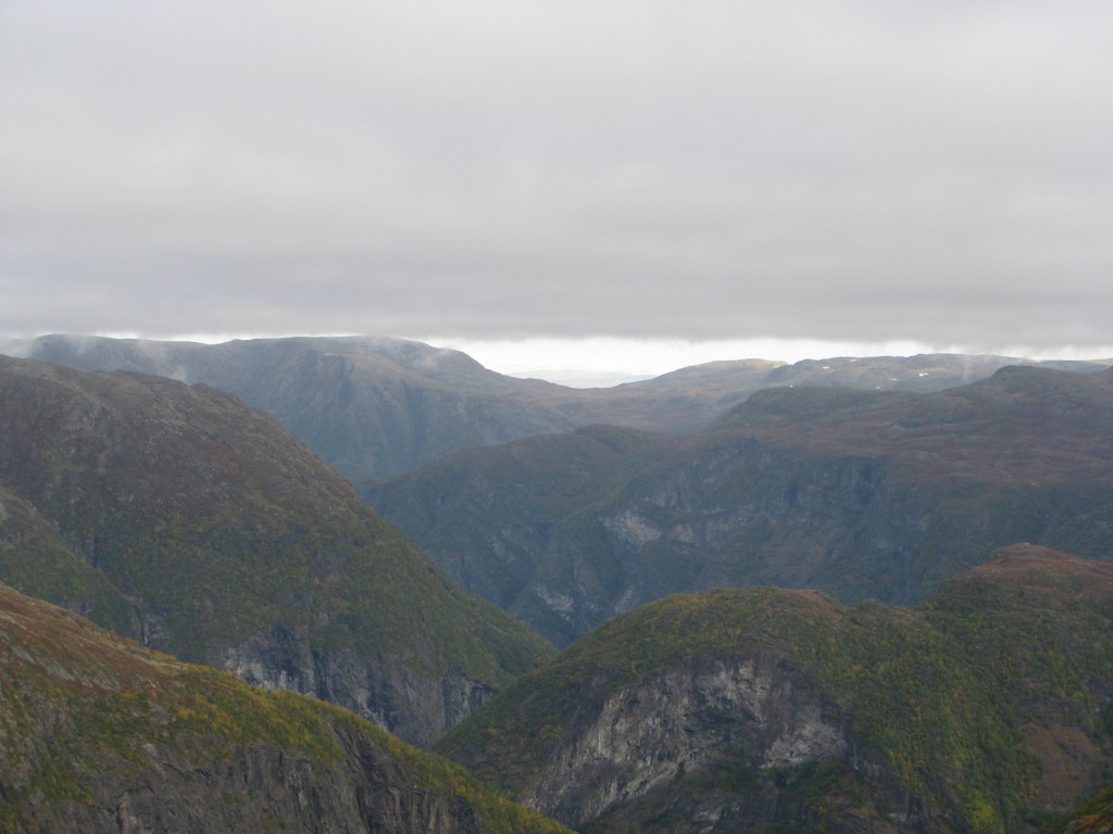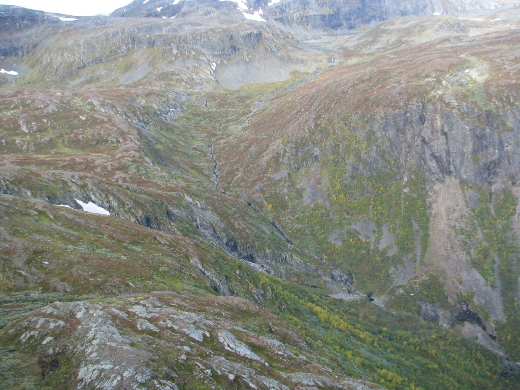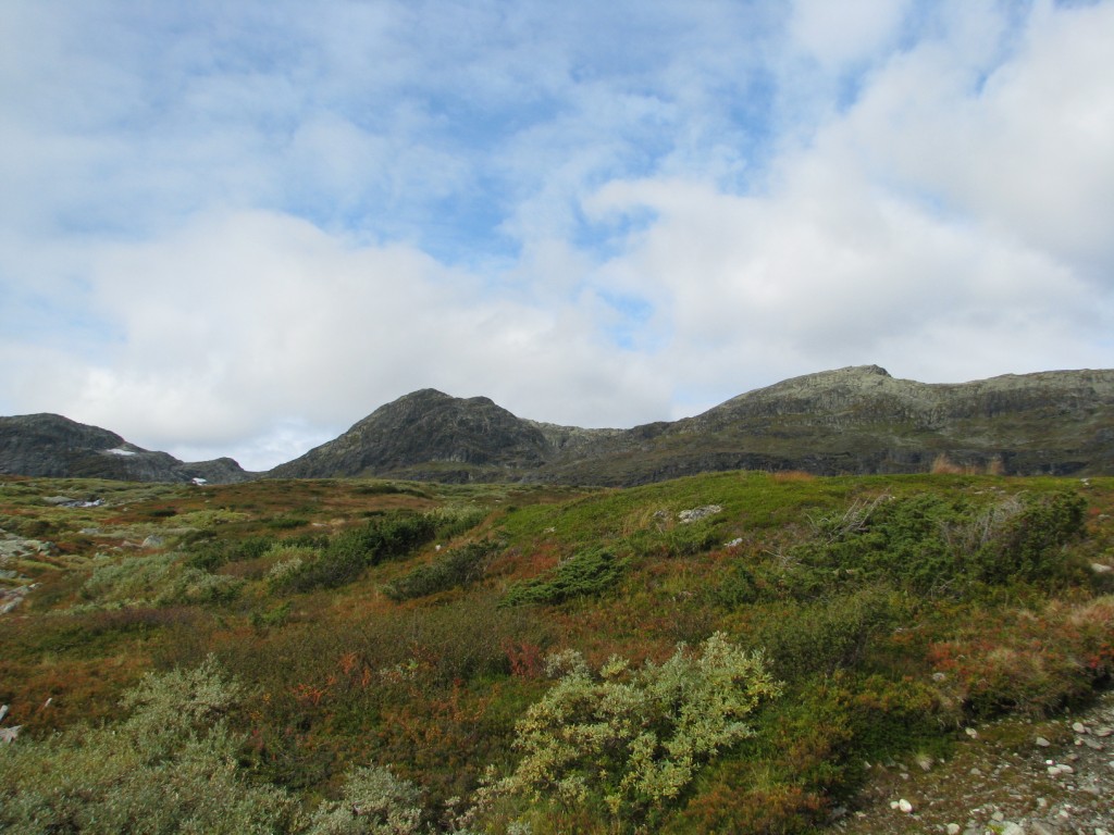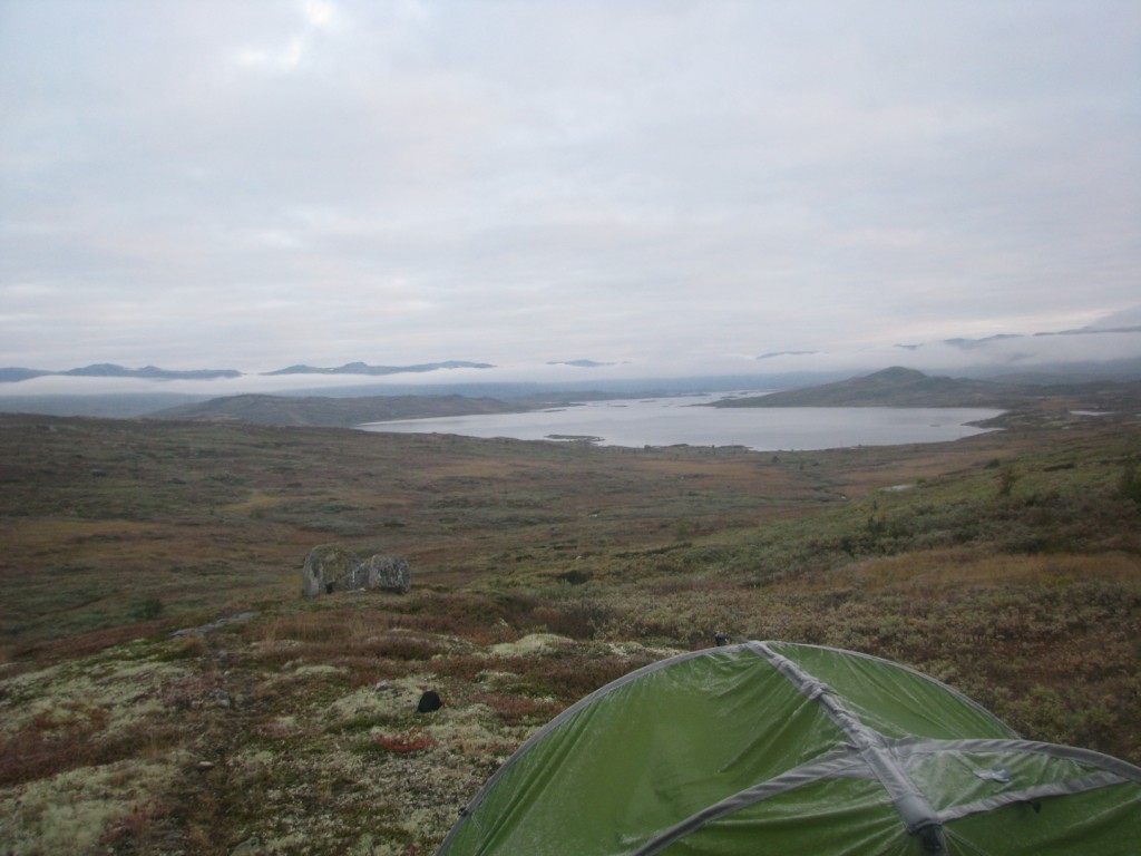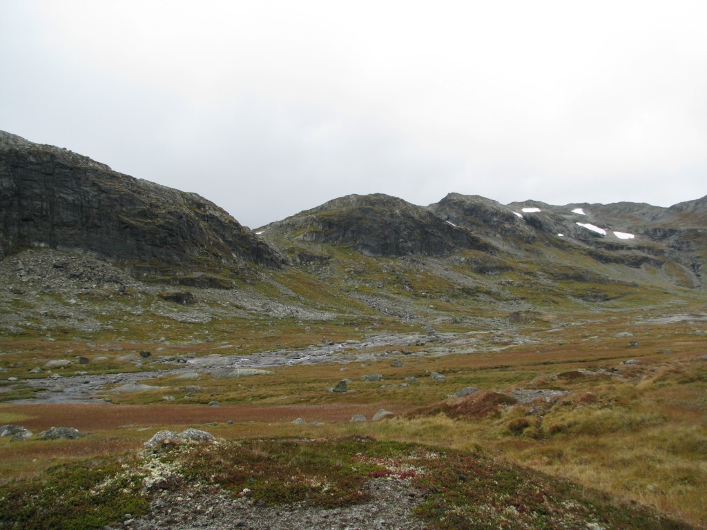 Egentlig skulle jeg gått denne turen med to forskjellige kompiser i fjor sommer og i år, men de ble av diverse grunner avlyst begge gangene. Dermed bestemte jeg meg for å pakke sekken og å ta med bikkja for å gå turen alene. Utgangspunktet var hytta vi har på fjellet i Ål, for så å ta seg gjennom Skarvheimen til Lærdal. Værvarselet for uka var gode. Det var stort sett meldt opphold og bra vær, men som alle vet så kan det fort endre seg til fjells. Onsdagen startet med å finjustere sekken, sjekke at alt utstyret var på plass, for så å få i seg en ålreit frokost. Været var ålreit, og skulle etterhvert vise seg å bli veldig bra. Jeg startet fra hytta kl. 10, og slo opp teltet ved Olsennvatn rundt kl. 17. En sjutimers gåtur i et terreng som startet med skog, for så å ende opp på vidda. Natt til torsdag var det minusgrader, men soveposen holdt varmen. En helt blå himmel dagen før var nå forvandlet til en grå himmel med en god del tåke som lå spesielt over Reinskarvet. Denne dagen var planen å ta seg til Iungsdalshytta, midt i hjertet av Skarvheimen. Jeg gikk til Djup, et stort vann som jeg skulle følge helt til hytta. Å gå grusveien vest for Djup virket kjedelig, men enklest. Tåken forsvant etterhvert, og sola tittet frem i perioder. Jeg kom frem til turisthytta rundt fem, og tilbrakte natta der. Fredag var det meldt litt regn tidlig på dagen, men etterhvert skulle det bli opphold. Dette skulle dog vise seg å ikke stemme. Jeg skulle gå innover Fødalen for så gå over fjellet til Kvevatnet. Dagen startet bra, og Fødalen er en vakker dal med bratte fjell og en fin elv. Etterhvert bestemte jeg meg for å gå inn i en sidedal over fjellet. Her var det ikke annet en stein, stein og stein, og så kom så klart tåka. Jeg kunne ikke se mer enn rundt 100 meter foran meg. Steinura tok aldri slutt, så jeg ble etterhvert litt stressa når det ikke var mulighet for å slå opp teltet noe sted. Etter fire timer med hopping fra stein til stein, kom jeg etterhvert fram, lettet over å ha kommet frem før det ble mørkt. Jeg fikk slått opp teltet, spist litt mat og lagt meg for å sove rundt kl. 20. Lørdag skulle jeg følge grusveien helt ned til Lærdal. Det hele startet bra klokken halv åtte om morran, men jeg klarte på en utrolig måte å trokke over mens jeg gikk på grusveien. Dermed hadde jeg flaks som fikk sitte på med en lastebilsjåfør som kjørte opp matrialer til en hytta som skulle bygges. Uansett var det en fin tur, så her følger noen bilder.
