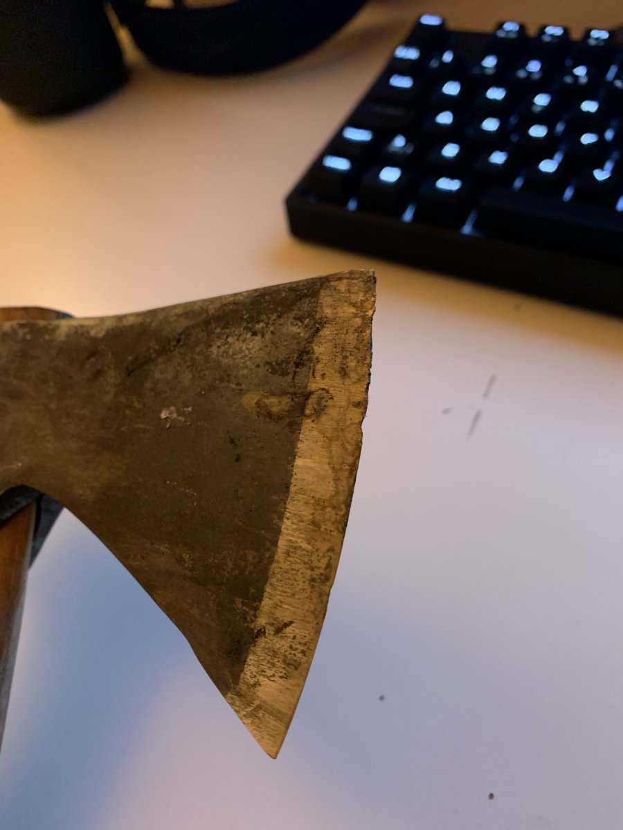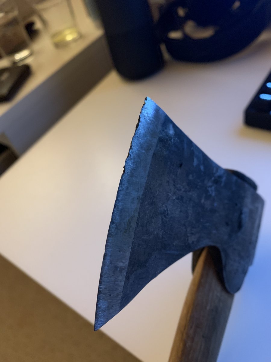 Heisann! Var ute en helg å kløyva litt med øksa. Har fått stygge hakk på den etter det. Mistenker på grunn av at jeg kløyva gjennom isen på bakken, og der under var det trolig grus. Det var mørkt, så jeg så ikke og har bare en teori. Øksa la jeg også igjen hos kompisen, mulig han også har brukt den. Uansett, er det noen her som vet hvor jeg kan få den fiksa? Jeg holder til Hamar, men har bil og kan/villig til å kjøre maks 2 timer :P