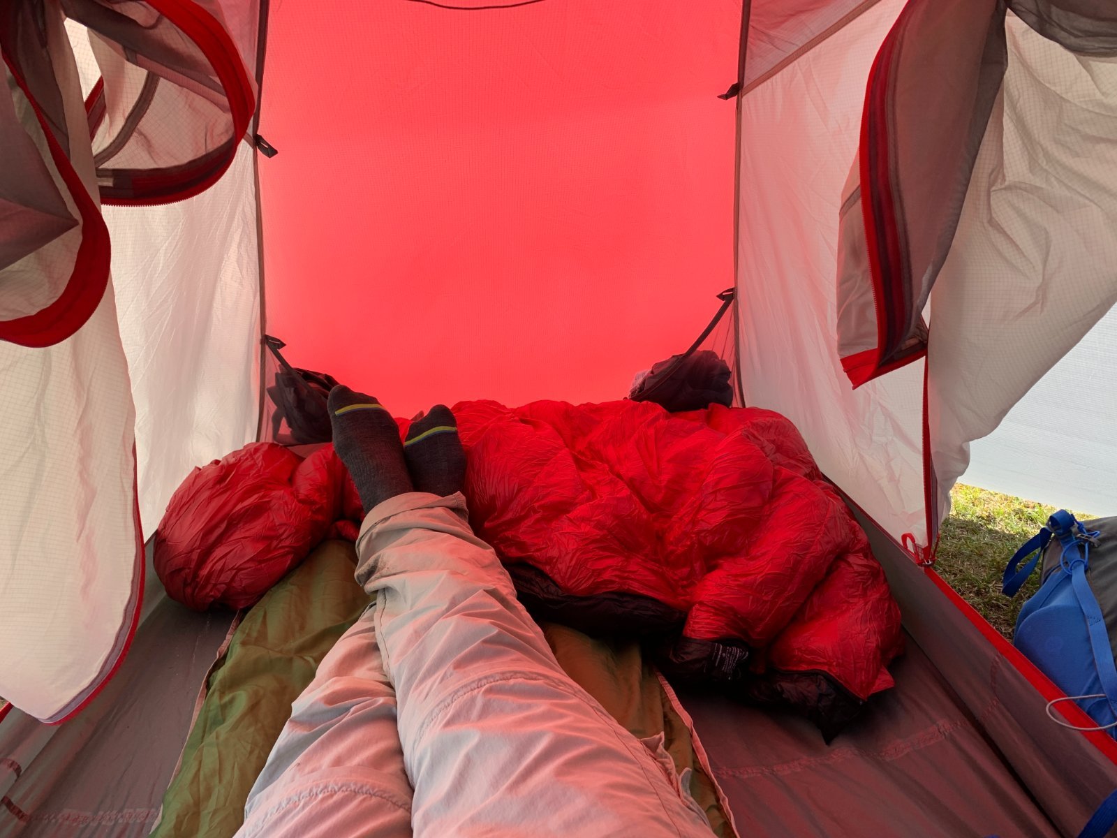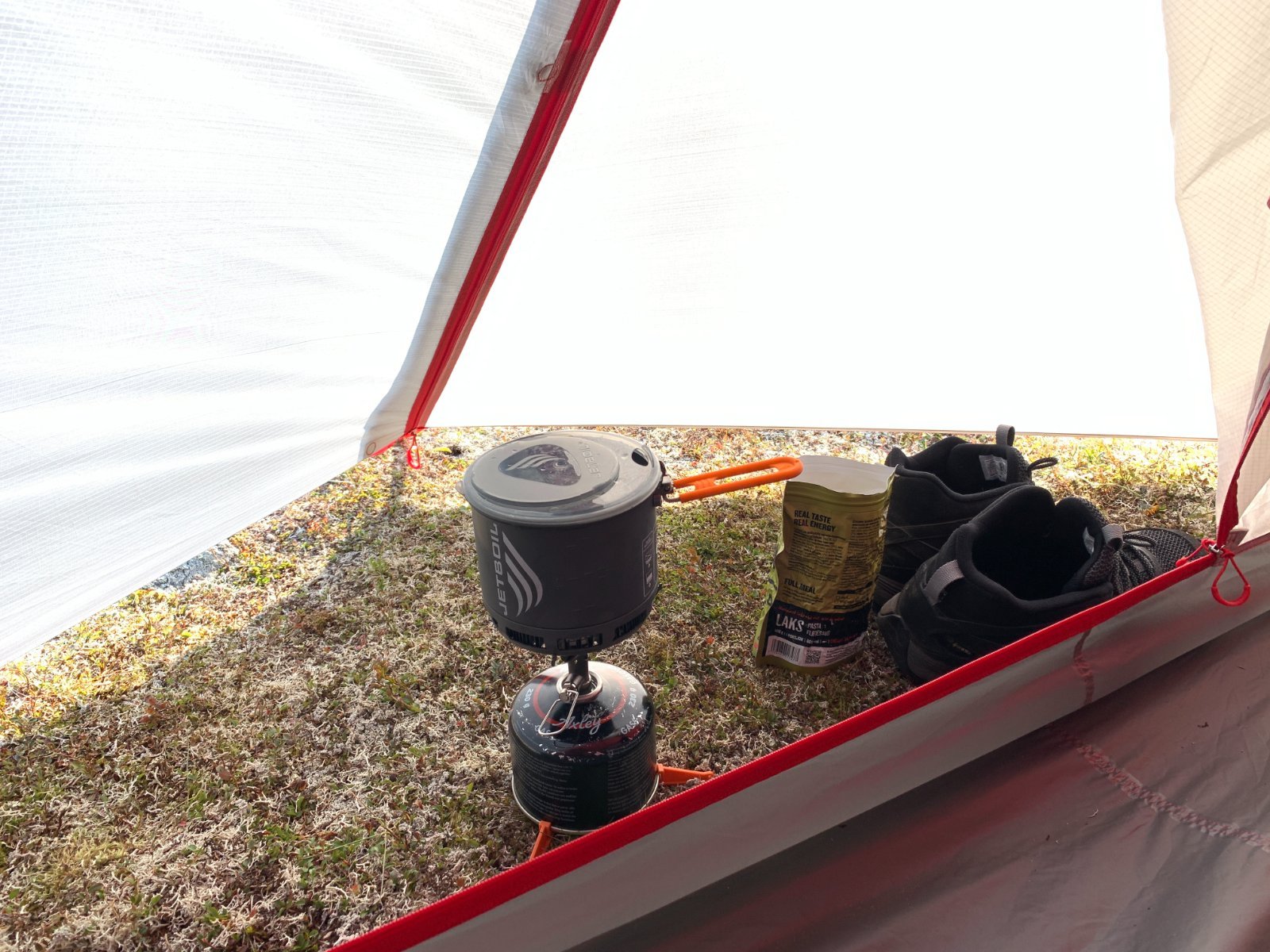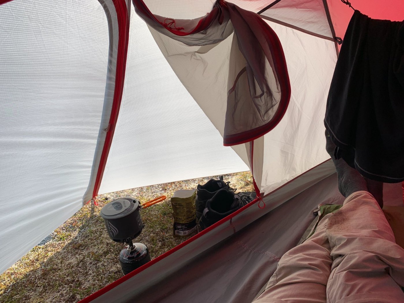 En liten rapport etter 3 netter i mitt nye Big Agnes Copper Spur HV2 Expedtion. Turen gikk på Hardangervidda, fra Haugastøl til Mogen. Må si jeg var litt spent på et amerikansk 3-sesongers med løs ytterduk. Har et Staika fra før so for meg blir referansen for et 2-manns fjelltelt. Med en god del vind de 3 første dagene, anslagsvis i området opp til nominelt 8-9-10 ms, ble det grei test på vindegenskaper og jeg har vel fått bekreftet at valget av Expedition utgaven var det riktige - for meg. Forskjellen mellom Expedition og non-expedition utgavene (foruten en vektforskjell på ca 1 kg) ligger i at Expedition bruker hel duk i innertelt, har kraftigere stenger, kraftigere duk osv. I tillegg er altså innerteltet i Expedition "hel ved" og ikke kun mesh. På Expedition kan du heller ikke bruke yttertelsdøren som "Baldakin". Det blir litt vektforskjeller mellom disse versjonene, Expedition til venstre. Mitt eksemplar veier inn på akkurat 2.4kg: Det skulle fort vise seg at akkurat tett innertelt var lurt - med ventilasjonspanelene helt åpne trakk det merkbart når det blåste som mest. Med litt justering av åpningene ble det etterhvert riktig så lunt og fint inne i teltet. Argumentet om at "det er greit å ha god sovepose, for det trekker mye i innerteltet" (klarer ikke å finne igjen den kommentaren fra en annen tråd) ble viktig for mitt valg av modell. Teltet takler vind forbløffende bra! Litt positivt overrasket - konservativ som jeg er, har jeg nok vært noe skeptisk til "rakkelverket" av et stangskjelett, men innså ikke at "edderkoppen" med stangkryss i midten faktisk utgjør to relativt avstivede trekanter, med den stivheten det innebærer, kontra tradisjonelle buer som krysser. Innerteltets innfesting, med klips over stengene, bidrar også til avstivningen. Resultatet er at teltet leer seg knapt i vindkasta, ihvertfall i de styrkene jeg opplevde disse dagene. Oppsett i vind gikk greit: jeg plugget ned innertelt først, med fotenden opp mot vinden (hodeenden er den halvdelen av innerteltet som innerteltsdørene åpner for). Teltet har grå og røde koder for fot- og hodeende. Sett opp stangskjellettet og tre de på plass i maljene sine. Hekt på klips til innertelt og fest tverrstanga til slutt. Så kneppes de grå klipsa på ytterteltet i fotenden fast. Hold duken samlet og fest borrelåsene som sitter under hvert bardunfeste rundt stengene. Dette er viktig, ihvertfall i vind - du forankrer bardunen til stanga på denne måten, slik at bardunen ikke bare er festet i ytterteltsduken. Fortsett "medvinds" til du har kneppet fast duken i de røde klipsene. Stram så opp ytterduken i hvert av de fire klips-festene. Deretter barduner. Av en eller annen uforståelig grunn har BA valgt å sende med 10 plugger, riktignok av god kvalitet, mens du egentlig trenger 12. Merkelig sted å spare penger - det kan kanskje diskuteres om du egentlig trenger de siste 2 - for utspenning midt på endeveggene, men allikevel... Jeg valgte å ta med Hillebergpluggene mine - i hovedsak fordi de er noe lettere. Som det skulle framgå av bilder er det grei plass - til 1. Hvordan noen ser for seg at dette skal være et 2-manns telt er litt uklart for meg. Det finnes ikke mindre enn 12 +1 små og store lommer i innerteltet. +1 er dekslet for lufteluka rett over hodeposisjon -hvis den er lukket, dobler den fint som lomme, men hvis luka er åpen, forsvinner den muligheten. Kjempedigg med så mange lommer! Her har Hilleberg noe å lære! I tillegg finnes det hemper for tørkesnorer "overalt". Sømkvaliteter og generell finish er bra. Innerhøyden er ok, men ikke mer. litt lavt til å stå på kne på underlaget og ta av og på klær, men det går. Har ikke fått testet teltet i regnvær, så jeg skal ikke si så mye om hvordan det vil arte seg, men jeg er kanskje noe overrasket over mengden kondens på innsiden av yttertelt på morgenen når jeg skal leggge sammen teltet. På en teltkonstruksjon av denne arten, med åpne skjørt hele veien rundt, og med masse vind og luftbevegelse, hadde jeg forventet mye mindre av denslags. Innerteltet var helt tørt alle dagene. Den løse ytterduken har jo også den fordelen at jeg ka ta av duken og riste den nesten tørr før jeg pakker den ned. det er litt verre med Staikaen - det kan gjøres, men det blir mer fomlete... Ellers er det grei plass for Jetboil'en - ingen angst for å komme for nær telduken. Lite og ingen effekt av oppvarming i teltet fra matlaging, antar den varmen bare er for kråka. Jeg hadde nok ikke stastet på dette teltet på tidspunkter hvor oppvarming ble viktig - da ville jeg hatt noe med duk helt ned til bakken, tror jeg. Alt i alt har dette teltet vært i overkant av hva jeg ventet - veldig godt fornøyd! På morgenkvisten ved Lågaros Ved Ørteren Grei plass for å fyre opp en liten Jetboil Tomannstelt? Neppe! Sittehøyde med et chairkit er ok Ved Lågaros