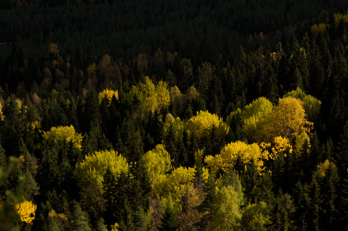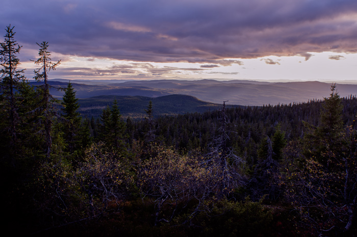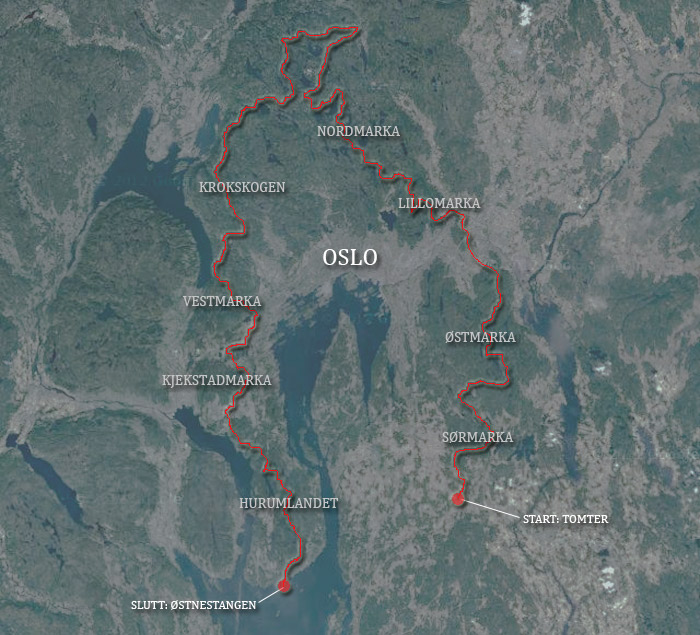 Høst. Regn, kulde og mørke. Man kan bli deprimert av mindre. Så hvordan overvinne høstdepresjonen? Ved å dra ut, selvfølgelig. Fra 10. september til 7. oktober gikk jeg fra Movatn i Nordmarka, på grensa mellom Oslo og Akershus, til Vermundsjøen på Finnskogen. Ruta passerte gjennom Romeriksåsene og skoger i Nannestad og Hurdal, før jeg gikk forbi Mjøsa og fortsatte over sørlige Hedmark til grensetraktene mot Sverige. Det ble en laaaang marsj, med kun en hviledag (uten flytting av leir) på fire uker. Målet med turen var å utforske flere skogsområder som jeg fra tidligere har hatt lite kjennskap til. I ettertid er jeg positivt overrasket over perlene disse skjuler. Særlig Nannestadskogene var kulere og mer villmarkspreget enn jeg hadde trodd. Finnskogen, hvor turen avsluttet, er riktignok tettvokst og hardt kulturpåvirket, men også der finnes det virkelige naturperler verdt mer enn ett besøk. Delmålene var ellers å opprettholde en jevn ro og båleim fra turstart til slutt. Det gikk ganske greit. Turen er del av et større prosjekt bestående av seks langturer fra Oslo. Alle distanser ble gått til fots. Jeg var stort sett alene, men hadde velkomment besøk i noen dager. Og her er noen fotos (Du finner bilder med bildetekster her: http://manepe.no/oslo/foto/nar-morket-kommer/ )