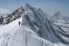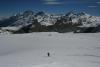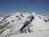 Bilder og kart her: http://peakbook.org/tour/17008/Jomfrutur+over+4k.html Natten før tilbragte vi i bilen, plassert i parkeringshuset i Täsch. Ganske kjekt, med stort areal for å pakke ut turting samt toalett innen kort gangavstand. Vi tok oss litt vel god tid på morgenen og satt oss ikke på shuttle-toget til Zermatt før rundt kl. 08.30. Med tanke på at planen i dag var å gå Breithorntraversen (inkludert klatring opp østeggen på midttoppen) burde vi egentlig startet mye tidligere (første tog går allerede 06.00 og kabelbane 07.00). Vel oppe i Zermatt, en vakker alpelandsby uten forurensende farkoster, gikk vi bort til kabelbanen som går opp til Klein Matterhorn på 3883 moh. Jeg hadde tatt denne banen en gang tidligere for flere år siden, så dette vekte gode minner. Øyvind og jeg var helt i ekstase da vi kom over skyene og fikk øye på topper som Dufourspitze, Liskamm, Breithorn og sist men ikke minst Matterhorn! Ingen tvil om at sistnevnte var det største blikkfanget, for et fjell! Planen var at turen til Breithorn skulle være en del av akklimatiseringen for Matterhorn, men bare for å ha sagt det så ble det ingen Matterhorn-tur på grunn av kaldt vær og permanent nysnø på fjellet. We`ll be back! Vel oppe på Klein Matterhorn hadde vi ingen tid å miste om vi skulle rekke Breithorntraversen. Vi gjorde det vi ikke skulle gjort, å gå ut i altfor høyt tempo over breen bort til Breithornpass. Dette fikk vi svi for senere med kraftig hodepine og oppkast. Ved Breithornpass bandt vi oss inn i tau og ruslet videre i fin snøsti sørøstover. Tåka kom og gikk, veldig skiftende vær. Ganske kjølig også når sola ikke tittet fram. Like før vi begynte oppstigningen til østeggen møtte vi på et følge på tre som advarte oss om å ikke gå eggen nå. Grunnen var at vi aldri i verden kom til å rekke heisen ned igjen, et guidet følge hadde brukt to timer og kommet en drøy fjerdedel på eggen. Heisen ned gikk kl. 16.30, kun 5 timer til. Eggen var veldig isete i dag grunnet stor nedbør dagen før, derfor ville det blitt en tidkrevende affære. Vi lyttet til følget og droppet eggen, i stedet gikk vi heller rett opp sørflanken mellom Breithorntoppene. Midt oppi flanken var det et italiensk følge som plutselig kom på glid, og hele bunsjen fikk seg en lang sklitur. Like før skaret mellom toppene fikk jeg plutselig skikkelig bankende hodepine. Den var så kraftig at jeg vurderte å droppe midttoppen, men Øyvind insisterte på å gå bort dit så da kunne ikke jeg være noe dårligere og hang meg med. La fra oss utstyret i skaret og gikk bort på midttoppen. Derfra så hovedtoppen på Breithorn stilig ut med sin smale topprygg. Opp til hovedtoppen var det tungt de siste metrene på grunn av hodepina som begge to hadde fått, ble ikke lenge på toppen før vi ruslet ned til Breithornpass. Den siste brattbakken satte vi oss på rumpa og skle kontrollert ned med isøksene parat. Her ble det tid til en matpause sammen med en stor folkemengde. Plutselig ble jeg skikkelig kvalm og bestemte meg for å gå rett bort til Klein Matterhorn. Etter noen meter kom første spykula, så en til og en til. Alt skulle tømmes. Øyvind så ikke hva som skjedde, men merket at stemningen blant folkemengden hadde endret seg og et eller annet skjedde. Han fikk seg en god latter da han så den ene spyklysa etter den andre og meg sjanglende nedover. Der og da tenkte jeg: «aldri mer høye topper», men heldigvis ble jeg fort bedre ved å sove litt på heisen ned igjen til Zermatt. På nedturen ble derimot Øyvind dårligere, antakelig en ettervirkning av høydesjuka. Vi feiret våre første 4000-metringer på en restaurant i Zermatt! Neste dag var det meldt dårlig vær, så vi tok toget ned til bilen og kjørte til Visp. Fant oss et gratis sted å sove ved et steinbrudd hvor det lå et gjerde vi kunne tørke klærne fra regnturen dagen før. Ble dog «vekket» av en halvsur arbeider neste dag som ba oss flytte oss.