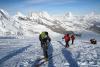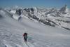 Årets Alpetur var lagt til første halvdel av april, noe som skulle vise seg å være et svært vellykka trekk. På en tur for to år siden var også de høyeste toppene i Monte Rosa-massivet på grensa mellom Sveits og Italia målet. Vi ble da kraftig innesnødd på Schönbielhutte de første dagene, slik at vi måtte ”nøye” oss med heisbaserte dagsturer til Breithorn og Castor fra Zermatt. Da brikkene falt på plass for en ny tur i år, fant vi ut at Zermatt var et greit utgangspunkt, da vi ville ha god nytte av logistikkmessige erfaringer fra sist. Vi hadde dessuten mye ugjort i Monte Rosa. Med billige Norwegian-billetter Gardermoen-Geneve og ca. 4 timer i tog er reisa grei. Første og siste natt var bestilt på Zermatt Jugendherberge, noe som vi hadde gode erfaringer med fra sist. Overnatting, middag og frokost av bra kvalitet til under 400 Nkr pr. pers/natt. Værklaff Etter en stabil og tørr vinter, var været litt mer skiftende den siste perioden før vi dro. Langtidsvarselet tyda imidlertid bra, og det skulle bare forsterke seg. Det hadde klarna opp den dagen vi ankom Zermatt og kort fortalt viste det seg og bli lettskya eller klart vær under hele turen, med unntak av en dag. Den var forresten ikke så verst den heller…. Monte Rosa Hütte Vi valgte og legge de første dagene til Neue Monte Rosa Hütte (2883 m.o.h.). Hytta er verdt besøk i seg selv, og selv med bortimot full hytte, var flyten i aktivitetene svært god. Et teknologisk og arkitektonisk kunststykke etter min oppfatning. De er selvforsynt med strøm, og har også innlagt vann (ikke drikkevann). Hytta er veldig populær, men online-reservasjon gjør det enkelt å følge med på belegget og eventuelle avbestillinger. Dag 1 og 2; akklimatisering Ut i fra snøforhold (lite snø under 2000 meter utenom preparerte traseer) valgte vi å gå til hytta fra gondolbanens toppstasjon på Kleine Matterhorn (3883 m.o.h). Derifra rant vi i preparerte traseer, før vi tok ned untere Theodulgletscher, til den møter den relativt flate Gornergletscher på om lag 2400 m.o.h. Herifra går det i slak stigning inn breen, og opp en bratt kneik til hytta. Neste dag gikk vi en tur til Jägerhorn (3970 m.o.h). Overraskende krevende toppegg gjorde at vi ikke nådde helt til topps Dag 3 Drømmen om Dufourspitze Det er et eller annet tiltrekkende med denne toppen, enten det er navnet, høyden (4634) eller den alpine karakteren. Gjerne er det vel en kombinasjon av disse. Etter at jeg begynte å gjøre meg kjent med Alpene, har det vokst seg drøm om å besøke toppen av dette fjellet. Under klar stjernehimmel starta vi fra hytta kl. 05.30. Det var en stor opplevelse å følge overgangen fra natt til dag mens vi sakte vant høydemetere. I denne perioden brukte så godt som alle ruta via Silbersattel (skaret mot Nordend). Herifra var det drøye 100 høydemetere på faste tau opp is-/snø-/klipperenne til toppen. Klar luft, lite vind og fin temperatur gjorde dagen til en stor opplevelse. For min del merka jeg høyden godt utover dagen, slik at returen blei noe tyngre enn 1700 meter unnabakke skulle tilsi. Men vi rakk da middagen. Dag 4 Hviledag Vi bevilga oss en hviledag på hytta, etter en lang tur dagen før. Dag 5 Til Italia Alpin start igjen. Vi gikk opp Grenzgletscher under Liskamms mektige østvegg. Ved Lisjoch (4250) møtte vi “horder” av italienere på søndagstur i tynnlufta. Vi nøyde oss med en avstikker til Ludwigshöhe (4341) før vi rant ned til hytta Capanna Gnifetti (3647) på italiensk side av Monte Rosa. Dag 6 Toppsamling Nydelig vær og vi tok oss en runde på Piramide Vincent (4215) – Vindstille på toppen, Corno Nero (4321) – Spiss, morsom topp og Parrotspitze (4432) – Flott snøkam. Det var mandag, og mindre, men fortsatt en del trafikk på toppene. Deretter tok vi ei ny natt på Gnifetti. Hytta har en helt annen karakter en Monte Rosa Hütte, men var absolutt verdt et besøk. God service. Dag 7 Skiftende vær Etter en vindfull natt satte vi kursen mot Sveits igjen, samme vei som vi hadde kommet. Skikkelige vindkast opp brefallet i retning Lisjoch, som vi ankom i tett skodde. Det var ikke langt mellom solgløtta, så vi fikk oss en tur oppom Signalkuppe (4554), med europas høyest beliggende overnattingsted. Tiltagende tåke, og mye vind gjorde at vi droppa Zumsteinspitze (4563) denne gangen. Deretter lang nedkjøring ned Grenzgletscher til Monte Rosa Hütte. Først denne dagen kjente jeg god effekt av akklimatiseringa. Dag 8 Omvei til Zermatt Klart vær og kaldt. Vind på toppene. Nedkjøringa fra Gornergletscher til Furi var bortimot snøfri, og den snøfrie stien fra breen fram til Rotenboden frista heller ikke. Derfor gikk vi østover om Cima di Jazzi (3803), før vi returnerte ned Findelgletscher til heisstasjonen Gant. Derifra i gondol opp til Blauherd, og langs preparerte traseer nesten ned til sentrum av Zermatt. Ei lang nedkjøring på om lag 2500 høydemeter. Deretter blei det dusj, middag og overnatting på ungdomsherberget, før returen hjem neste dag. En tur som absolutt gav mersmak