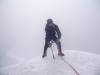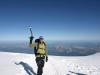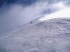 Rapport med bilder og kart her: http://peakbook.org/tour/17256/Til+topps+p%C3%A5+Vest-Europas+tak.html Så til slutt, etter å ha måttet droppe alternativ (1) Mont Blanc via en tredagerstravers om Gonella refugi og (2) via Three Monts Traverse fra Aiguille du Midi ble jeg og Øyvind til slutt stående igjen med siste mulighet; Mont Blanc via Goûter ridge (normalruta). På kvelden den 25. juli tok vi tramwayen fra Saint-Gervais-les-Bains og opp til Le Nid d`Aigle. Vi følte at det var et eller annet som ikke stemte siden vi ikke så spor av folkemengden som skulle til Mont Blanc i St.-Gervais. I ettertid ser jeg at de fleste tar heisen opp fra Les Houches fremfor å starte i St-Gervais som vi gjorde. Turen opp med tramwayen tar en snau time. Vel framme fulgte vi stien opp mot Refuge de la Tête Rousse. Møtte en del folk som var på vei ned igjen, kjedelig for enkelte som hørte togfløyta gikk av like før de var framme på stasjonen. Vi gikk ganske raskt oppover og møtte etter hvert på nysnøen som gjorde stien temmelig glatt, på kanten til at det var bedre å gå med stegjern her. På hytta hadde vi håpet at det skulle være mulig å fylle på camelbakene, men der tok vi feil. Ingen kraner å finne så vi kjøpte en 5 literskanne til 15 euro, var jo verd det fremfor å smelte snø med brenneren syntes vi. På flaten like bak hytta la vi oss til rette i våre to bivuakker sammen med en mengde andre telt. Plutselig gikk det av et enormt snøskred i nordflanken på Aiguille de Bionnassay. Det er det største skredet jeg noensinne har sett! En påminnelse om at skredfaren nok hadde vært stor om vi skulle gått traversen fra Col du Midi. Etter litt kveldsmat la vi oss til å sove og klokka ble stilt til 01.00, blir nok ikke mye søvn dette... Da klokka ringte var det både stjerner og måne på himmelen. Perfekt vær! Ingen lys var å se i bakken opp mot Goûter-hytta, skulle vi bli de første startende da? Vi fikk på oss stegjern, sele, isøks og sekk og la i vei oppover. Idet vi startet kom en armada av andre hodelykter etter oss, vi lot dem gå foran og i starten, men etter hvert ble vi utålmodige og sprang forbi i tilfelle de utløste noen steiner på oss. Etter noen hundre meter måtte vi over den beryktede Grand Colouir, en objektiv farlig renne der det stadig vekk kommer steinsprang ovenfra. Det finnes ikke tall på hvor mange dødsulykker som har forekommet her... Heldigvis var vi heldige med at det var temmelig kaldt og en del snø i renna, så vi følte oss ikke særlig utrygge. Jeg gruet meg heller til turen ned denne skråningen på vei tilbake da folkemengdene lenger oppe kunne finne på å løse ut stein... Etter å ha krysset renna går resten av ruta opp langs en rygg. Flere partier bød på tildels eksponerte klyvepassasjer, men her var det montert vaiere man kunne hekte seg innpå om man ville. 700 høydemeter lenger oppe var vi omsider framme ved Aiguille du Midi, og her fikk vi konstatert at vi IKKE var første lag på vei mot toppen. Foran oss så vi et fakkeltog av hodelykter på vei opp mot Dôme du Goûter, et spesielt syn! Gåstaven min begynte å fuske etter at jeg hadde tatt den sammen, så jeg valgte til slutt å legge den igjen ved Goûter-hytta. Øyvind var solidarisk og lånte bort den ene staven sin til meg, noe knærne mine satte pris på! Nå var det egentlig bare å gå i jevn fart oppover. Vi valgte å ikke ta på tauet, men oss om det... Oppe på Dôme du Goûter fikk vi øye på majesteten selv; Mont Blanc! Nå kriblet det etter å komme til topps. Dessverre kom det inn flere skysystemer etter hvert som det begynte å lysne, og vips hadde Mont Blanc tatt på seg hatten. Irriterende å ikke få se den sagnomsuste utsikten på vei opp langs Bosses ridge. Bakken opp fra Vallot-bivuakken føltes endeløs i den tåka som var. Enkelte partier var så bratte og smale at isøks hadde vært kjekt. Bena føltes blytunge ut, vannet frøs og vinden var isnende kald. Viktig å dekke til ansiktet for å unngå frostskader! Vi gikk og gikk og omsider, etter 5t 15min fra Tête Rousse nådde vi toppen kl. 07.00. Herlig! Planen var å få med seg den italienske nasjonstoppen på Mont Blanc de Courmayeur, men grunnet tunge bein og kjipt vær droppet vi det og gikk heller ned igjen. Det gikk fort ned til Vallot-bivuakken og vi så mange slitne fjes på vei opp. Jeg tok en tur på toalettet på Vallot-bivuakken, og det er det verste stedet jeg har gjort fra meg på! Dritt, søppel og dopapir florerte overalt. Dog stod det et skilt utenfor at dette toalettet er det ingen som har ansvar for å rengjøre... Vi fortsatte ned mot Gôuter-hytta, og nå var været noe bedre. Fikk fin utsikt herfra! I bakken ned mot Tête Rousse gikk vi bare så fort vi kunne ned for å unngå armadaen som kom etter oss. Stor forsiktighet ble vist samtidig som at effektiviteten var høy. Da jeg til slutt skulle krysse Grand Colouir kom det fra intet tre steiner rasende ned som prosjektiler ovenfra. Jeg skvatt til, stoppet, så opp og sprang over. Puh, det gikk bra! Kan tenke meg at det er skummelt her i varme seinsomre. Sommeren 2003 var faktisk Mont Blanc så og si ubestigelig fra alle kanter på grunn av enorm rasfare i Grand Colouir og uforserlige bresprekker langs de andre rutene. Vi tok over en times pause ved bivuakken, nå hadde vi brukt 8t 30min etter at vi startet i natt. Så spiste vi og drakk litt før vi orket å pakke sammen utstyret og rusle ned igjen til tramwayen. Sov som en stein på togturen ned til bilen, vel vitende om at denne alpeturen hadde blitt en stor suksess! Turdata (innmarsj): 1t 40min 775 hm Turdata (toppdagen): 10t 25min (8t 30min t/r Tête Rousse) 2000 hm