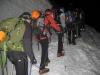 Rapport med bilder og kart: http://peakbook.org/tour/21499/Magisk+tur+til+Gro%C3%9Fglockner.html Forord I sommer kontaktet Nils Hermann meg i anledning en konferanse han skulle delta på i Salzburg i september. Han spurte om jeg ville bli med ned for en langhelg og bestige Grossglockner (3798), Østerrikes høyeste fjell. Først var jeg skeptisk siden dette var helgen like etter jobbstart, og det ville være flaut å be om fri for en langhelg like etter en 5 mnd ferie. Men etter å ha sett litt på bilder fra fjellet ble jeg mer og mer tent på å ta turen likevel, jeg signaliserte at jeg var interessert og etter å ha blitt noenlunde belest vedrørende turen og bestemt rute var vi til slutt fem mann som skulle på tur til «the black mountain». Flyreise til München og biltur til Glocknerhaus Stod opp grytidlig på fredagen for å rekke flyet som gikk fra Gardermoen til München 07.40. Møtte Øyvind, Morten og Arne på flyplassen og praten gikk lett hele flyturen ned til Tyskland. Nils Hermann hadde tatt et fly kvelden før og skulle møte oss når vi ankom. Vel framme var det bare å finne leiebilen vi hadde bestilt og få minutter senere lå vi i godt over hundre på autobahnen med nesa rettet mot de østerrikske alper. Bil-GPSen var ikke helt oppdatert så vi holdt på å ta noen tullete snarveier i ny og ne. Stoppet undervegs for å spise en saftig middag på en tysk veikro samt handle litt brød og pålegg til turen. Terrenget langs bilveien ble sakte men sikkert mer og mer dramatisk jo lenger inn i Alpene vi kom. Langs med veien var det også en del dyreliv til Arne og Mortens store begeistring. De er utrolig observante og har et falkeblikk når det kommer til fugletitting! Vi var glad for at vi hadde beregnet oss god tid, for plutselig havnet vi midt oppi VM i traktorkjøring. Måtte passere flere hundre tøffete traktorer, noe som tok sin tid. Rakk heldigvis bommen til Großglockner Hochalpenstraße som nattestengte allerede 16.30. Været var suverent i dag og vi fikk god sikt mot toppen vårt fra bilvinduet, dæven for noen fjell som finnes her nede! Siden normalruta via breen Hofmannskees ifølge hyttevakta på Erzherzog-Johann-Hütte var uframkommelig pga bresprekker valgte vi å gå ruta via Salmhütte og overnatte på denne. Parkerte ved innsjøen nedenfor Glocknerhaus og begynte å gå kl. 17.15. Innmarsj til Salmhütte Turen til Salmhütte gikk langs en god sti (typisk alpestandard) over en demning før det bar opp en seig motbakke på snaut 500 høydemeter. Nils og Øyvind var veldig spente i forkant av denne turen. Nils hadde omtrent ikke trent i hele sommer på grunn av en kneskade og en vond ankel og Øyvind var spent på hvordan ryggen ville takle turen etter prolapsen han pådro seg i Afrika. Det ble tid til en god pause på toppen av bakken før vi fortsatte i skråningen inn dalen mot Salmhütte. Veldig fint landskap. I grunn minner toppene her inne mye om Jotunheimen på grunn av bergart og formasjon, bare i en mer massiv utgave. Etter hvert fikk vi øye på hytta og da var det ikke lange biten igjen. Nils var en periode litt eplekjekk og mente at vi bare kunne fortsette til Erzherzog-Johann-Hütte, men etter hvert innså han at det var greit å stoppe mens leken var god. Inne på hytta var stemningen god og vi ble servert nydelig mat; Nuddelsuppe, en slags kjøttpudding med poteter og frisk salat og til dessert fikk vi fruktsalat. Slo av en prat med en annen kar som også skulle opp til toppen neste dag. Det ble ingen sen kveld på oss til Arnes store skuffelse, han hadde håpet på et lystig lag til langt ut på natta. Men vi skulle opp allerede kl. 03.00 og søvn er viktig før en slik tur. Personlig sov jeg som en stein denne natta, men hørte i ettertid at det var noen som sleit med både snorkelyder og spørsmål om astma... Toppstøt i magisk vær Da mobilvekkerklokka ringte med kvinnestemmen; «på tide å stå opp, klokken er 03.00» hadde vi ikke mye lyst til å stå opp. Men sekken var ferdigpakka og frokosten stod framme til oss. Ute var det stjerneklart og måneskinn, det hjalp på motivasjonen til å ikke lukke øynene på nytt. Frokosten var ikke mye å skryte av med tørre brødskiver, lunket tevann og kjedelig pålegg, men vi fikk nå maten i oss, skal ikke være for kresen. Vi så silhuetten av Grossglockner i måneskinnet og vi rakk å ta noen bilder med stor blenderåpning og lang lukkertid før vi begynte å marsjere litt over 04.00. Det var ingen problem å følge stien før vi kom til en liten isbre (dekt med mye løs stein). Her forsvant den bort i intet. Brukte lang tid på å lete. Jeg valgte å følge breen opp et stykke og prøve å klyve meg opp noen sva til sadelen over breen. Plutselig så jeg at stien gikk opp svastupene, men langs noen tau og boltede trinn lengst mot høyre, jeg prøvde å klyve meg bortover dit, men det var bratt, løst og negative tak hele veien. Til slutt hadde jeg klatret så langt at det var like farlig å snu som å klatre seg lenger oppover veggen. Det ble en farefull og skummel solering oppover med hjertet i halsen. Øyvind ropte at jeg ikke måtte ta noen unødvendige sjanser, men jeg visste at jeg ikke hadde andre valg enn å fortsette. Godt å komme opp på trygg grunn og kunne puste lettet ut. Nå hadde det så smått begynt å lysne og vi kunne snart se de første solstrålene treffe toppen med hytta 300 høydemeter under. Først måtte vi over en isbre før vi kom på fast grunn. Det var minusgrader og isete så stegjern var helt nødvendig. Soloppgangen vi opplevde på vei opp var virkelig magisk. Kontrastene og fargene var helt spesielle, kanskje på grunn av de mørke skyene som nærmet seg faretruende fra øst. Plutselig før vi visste ordet av det begynte det å snø og sakte men sikkert var toppen forsvunnet i tåka. Forferdelig surt, vi hadde håpet at værfronten ikke skulle ankomme før minst fire timer senere, men vi levde i troen på at det er von i eit hengande snøre. Tok oss en god ma